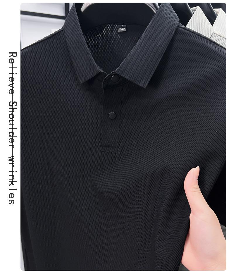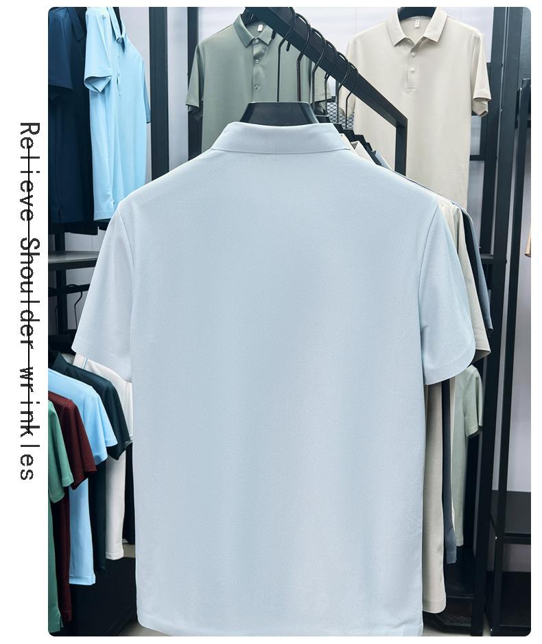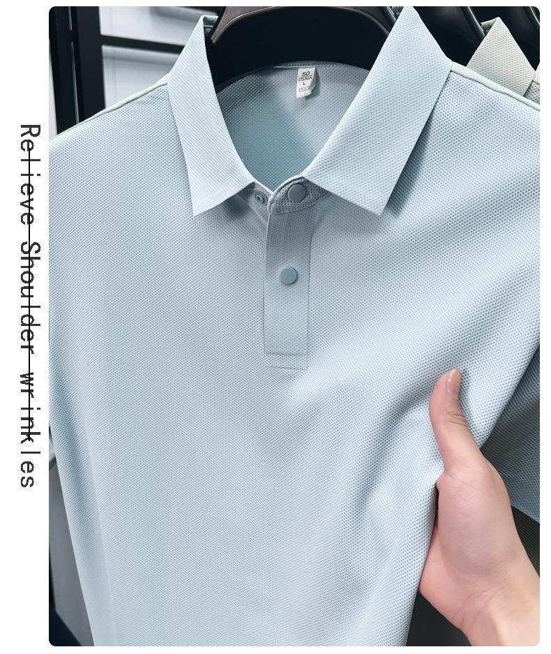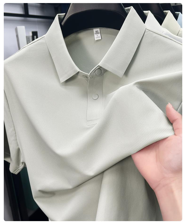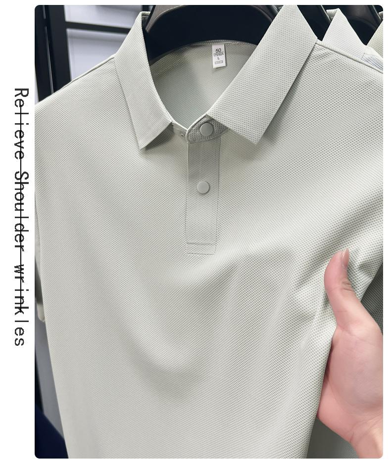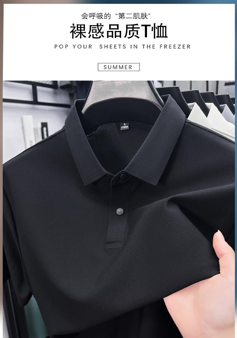 Polo de Manga Corta Antibacterial 7A sin Marcas de Seda de Hielo para Hombre Verano Fresco Color Sólido Cuello de Solapa Camiseta para Hombre de Papá de Mediana Edad