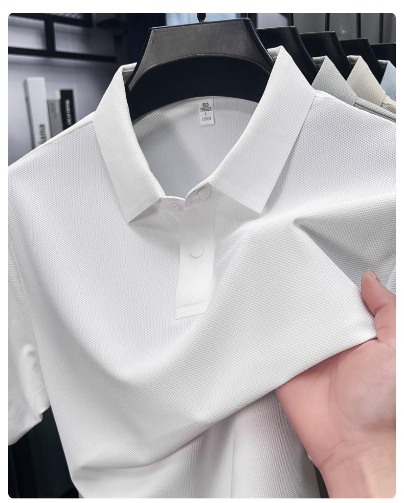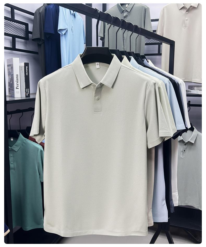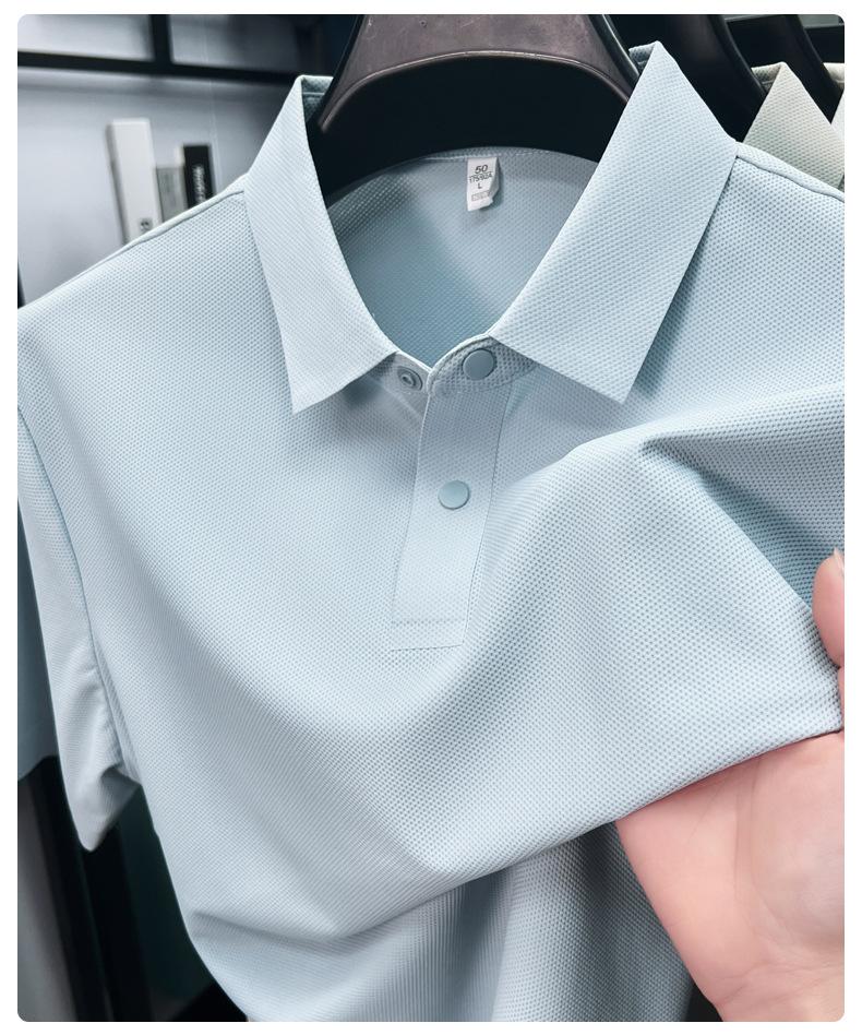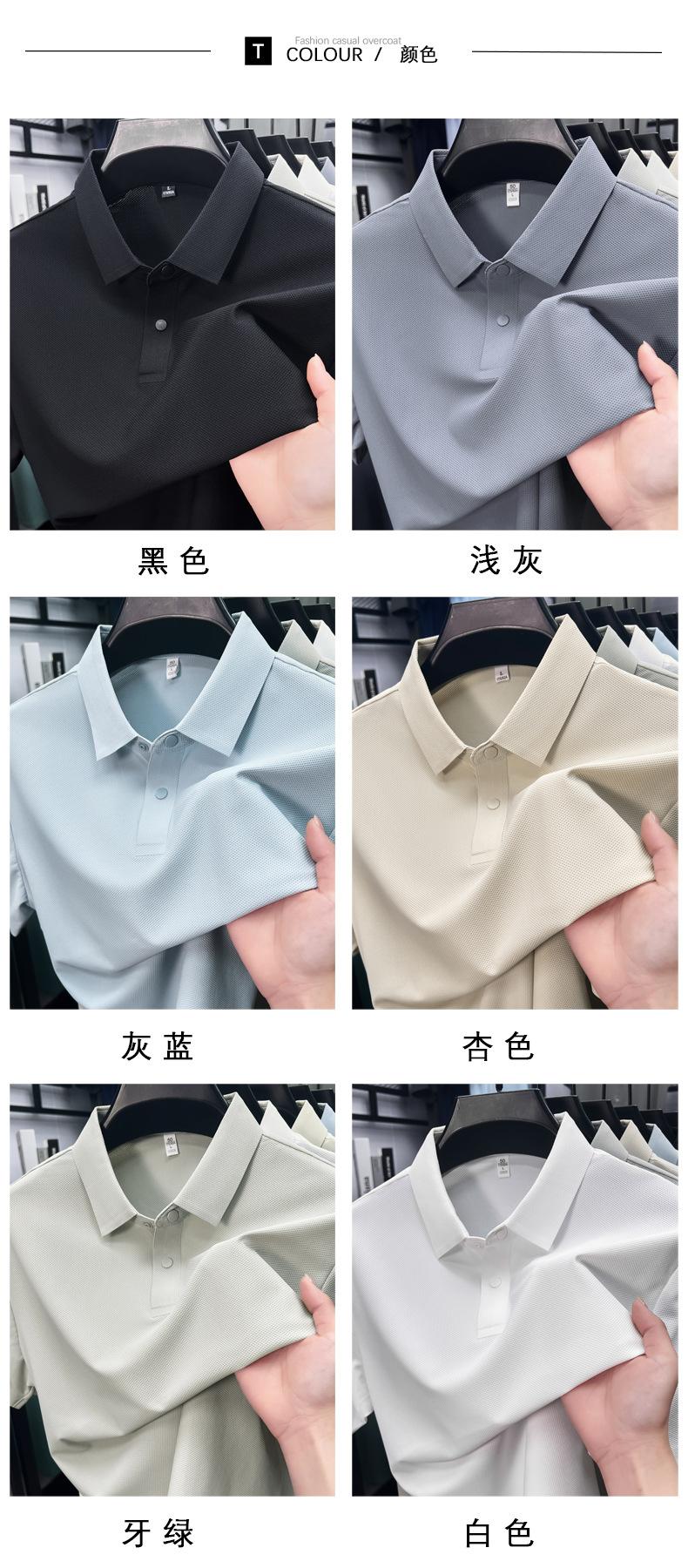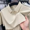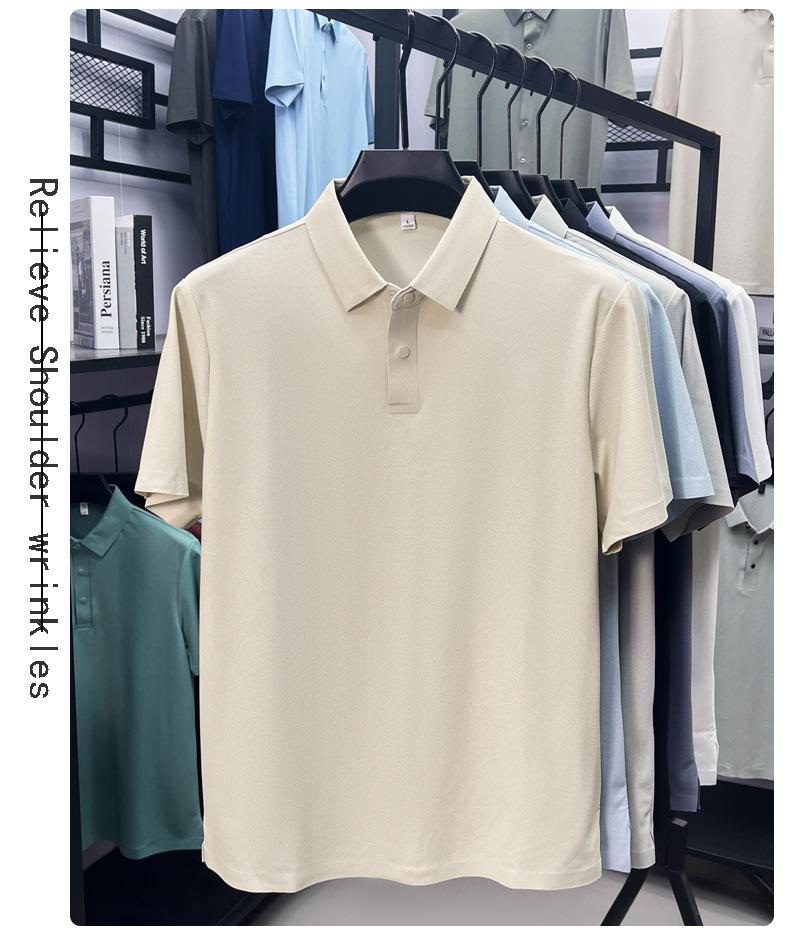 Polo de Manga Corta Antibacterial 7A sin Marcas de Seda de Hielo para Hombre Verano Fresco Color Sólido Cuello de Solapa Camiseta para Hombre de Papá de Mediana Edad