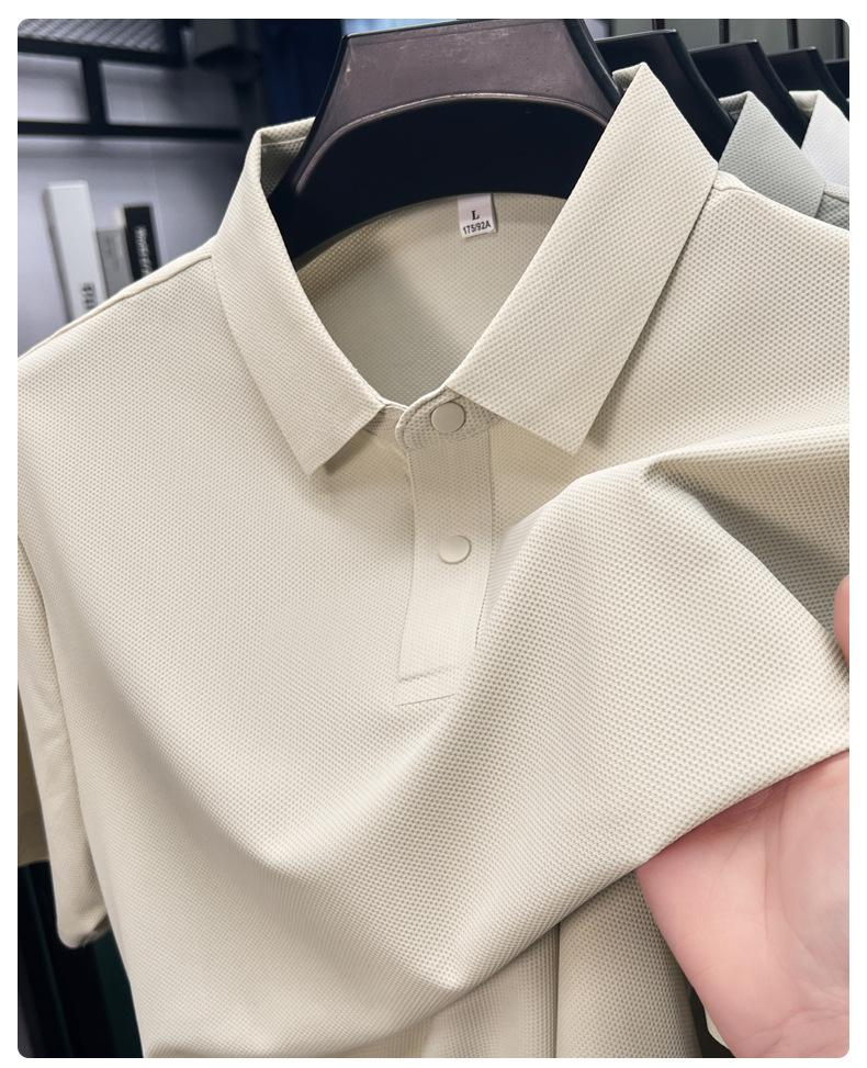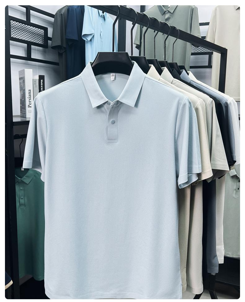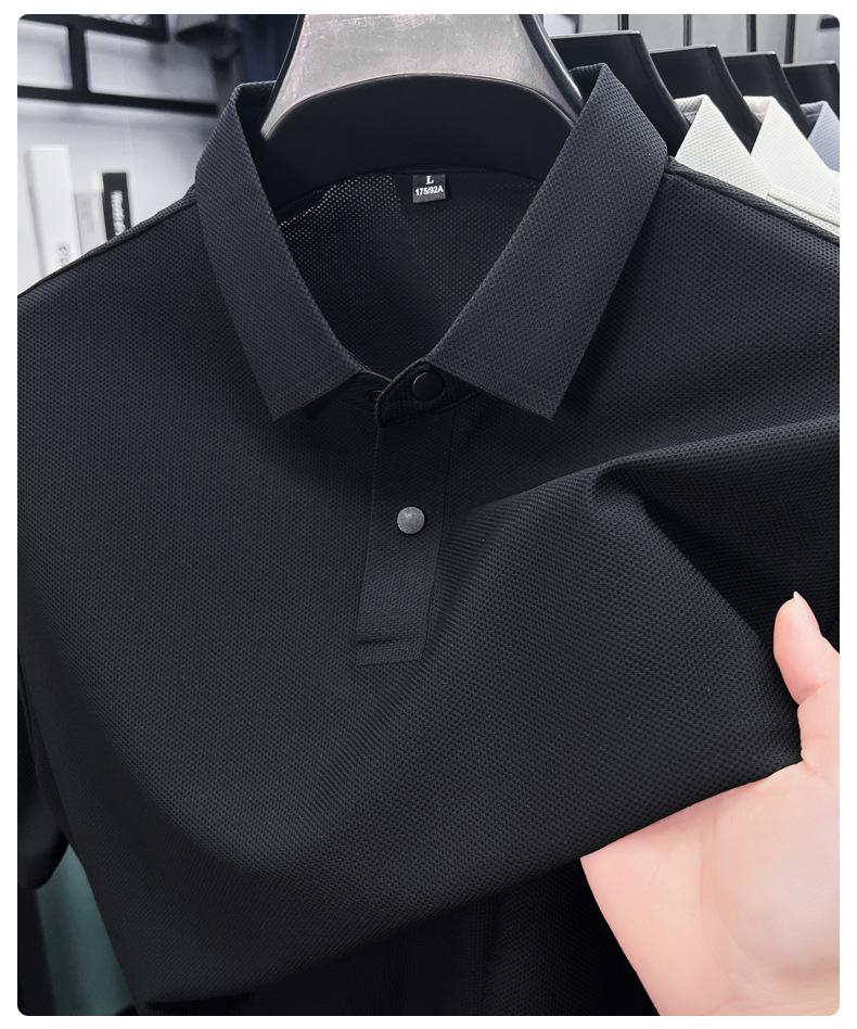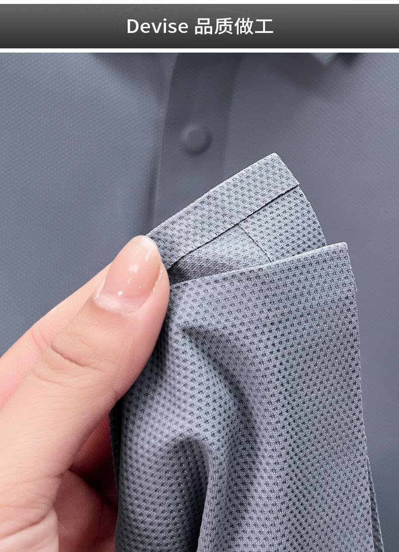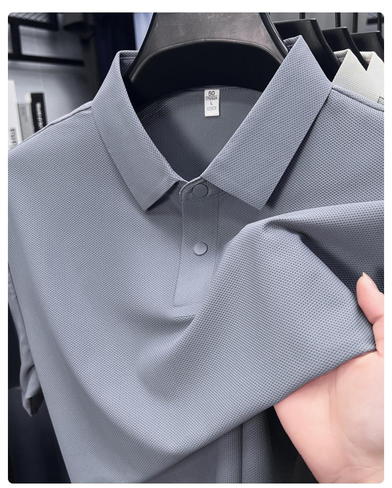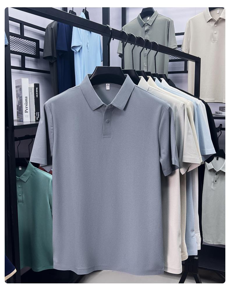 Polo de Manga Corta Antibacterial 7A sin Marcas de Seda de Hielo para Hombre Verano Fresco Color Sólido Cuello de Solapa Camiseta para Hombre de Papá de Mediana Edad