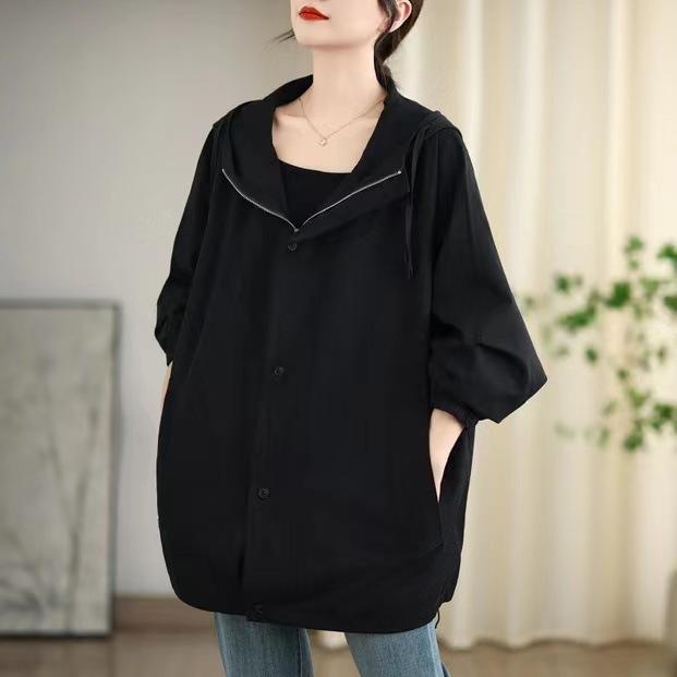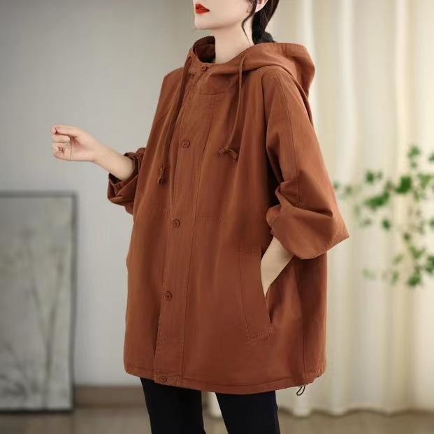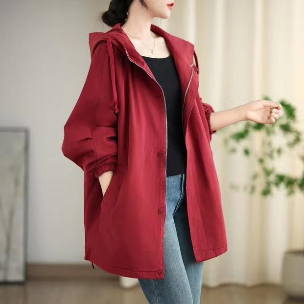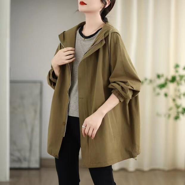 Chaqueta de Otoño 2024 para Mujer Holgada Casual Coreana de Manga Larga Cortavientos Versión Grande Chaqueta con Capucha Top Cárdigan