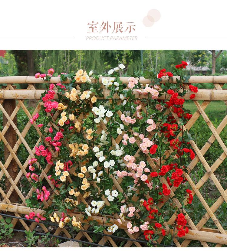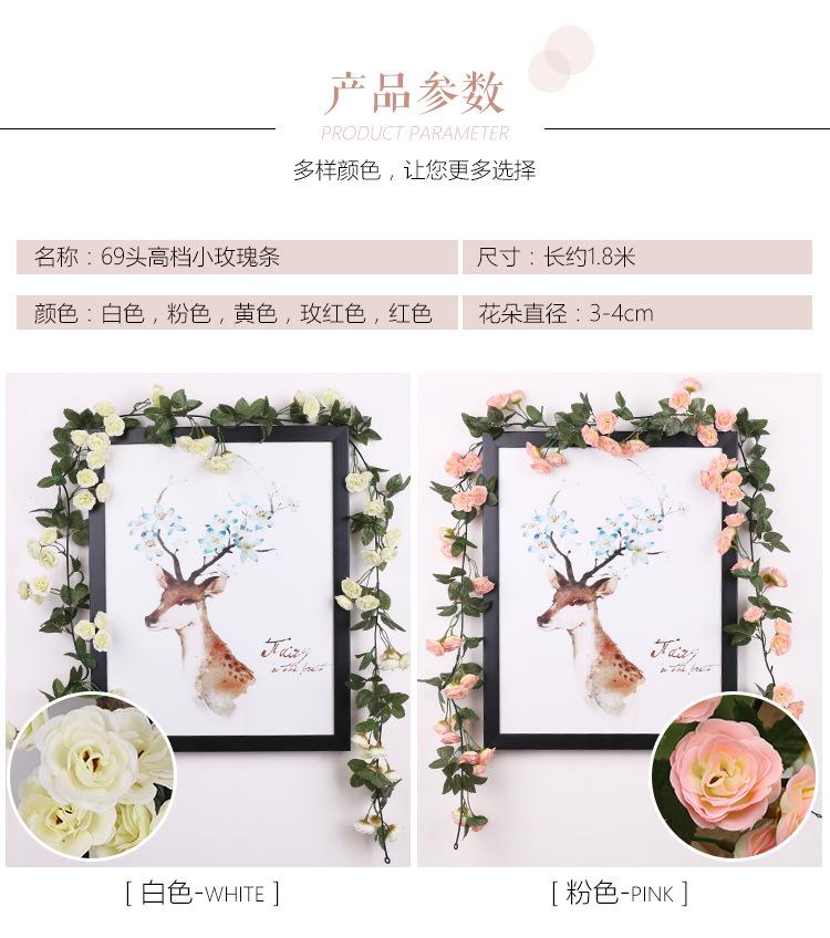 Simulación Guirnalda de Flores de Rosa Colgante de Pared Guirnalda de Flores Falsas 69 Cabezas Rosa Flor de Seda de Plástico Decoración de Tubería de Agua Planta de Vid