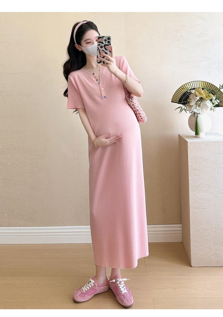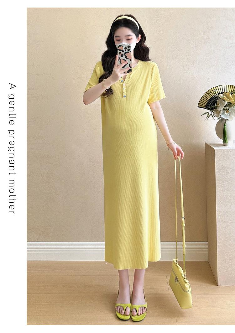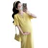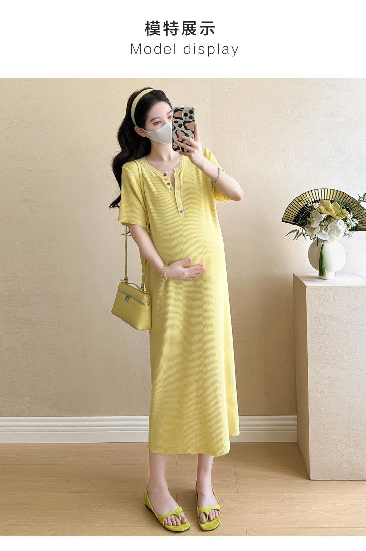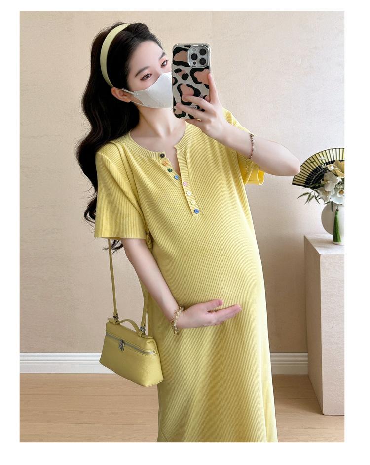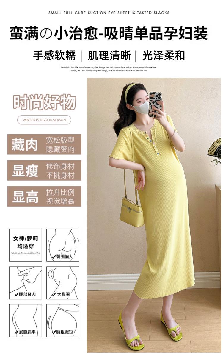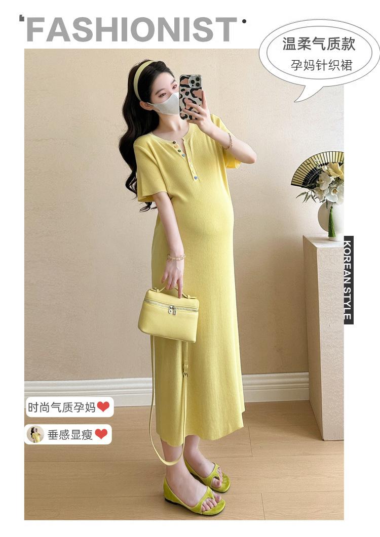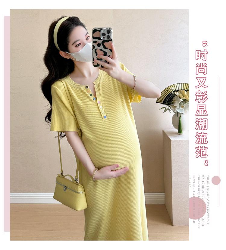 Ropa de Maternidad 2025 Verano Nuevo Estilo Coreano Tejido Ropa Dopamínica Suelto Talla Grande Vestido de Maternidad