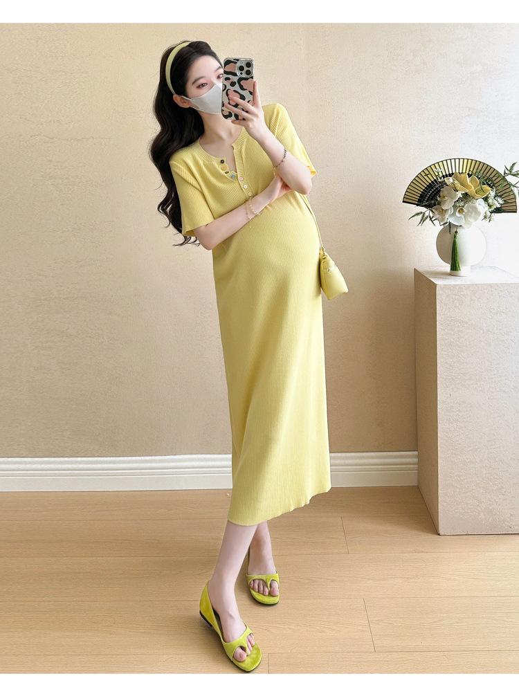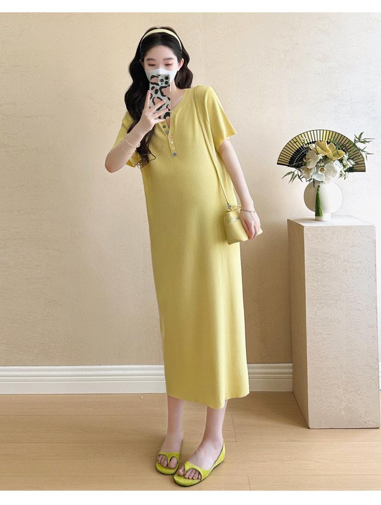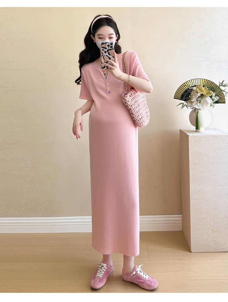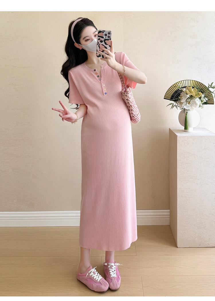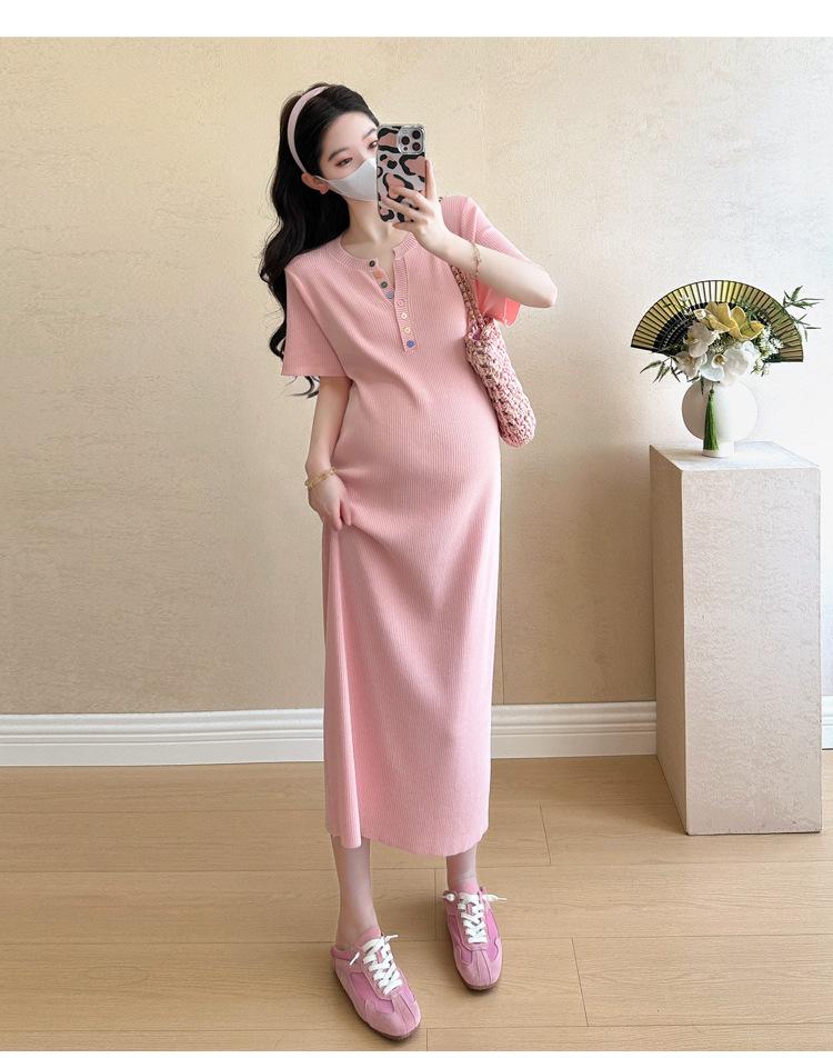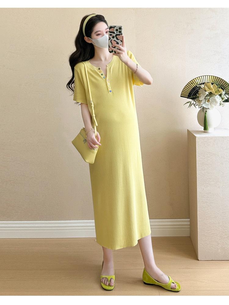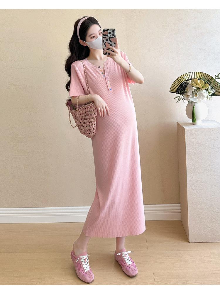 Ropa de Maternidad 2025 Verano Nuevo Estilo Coreano Tejido Ropa Dopamínica Suelto Talla Grande Vestido de Maternidad