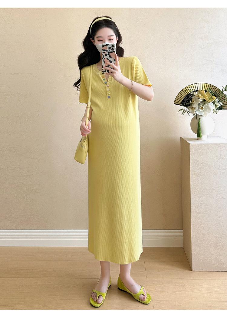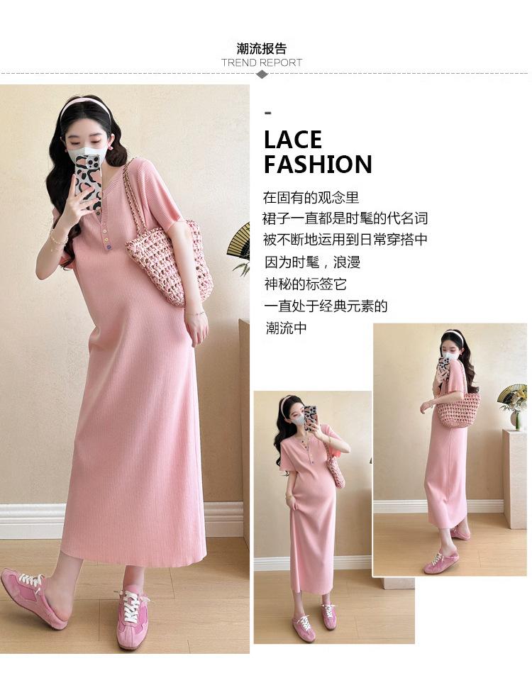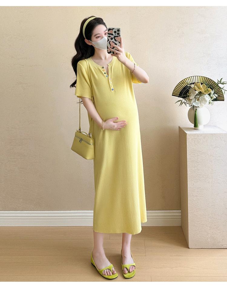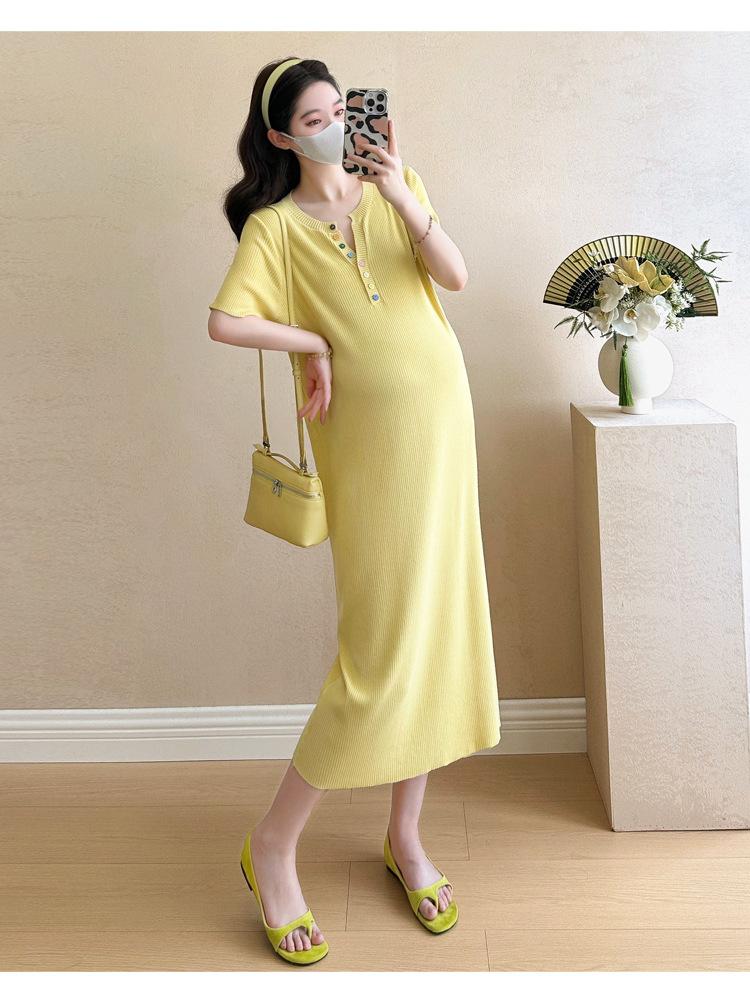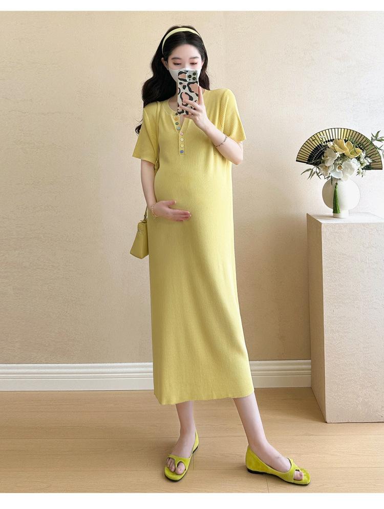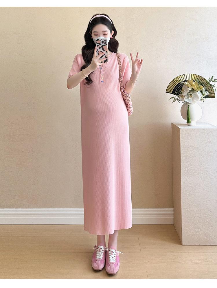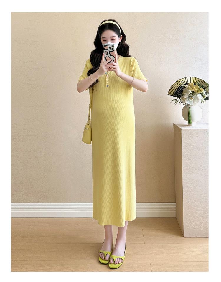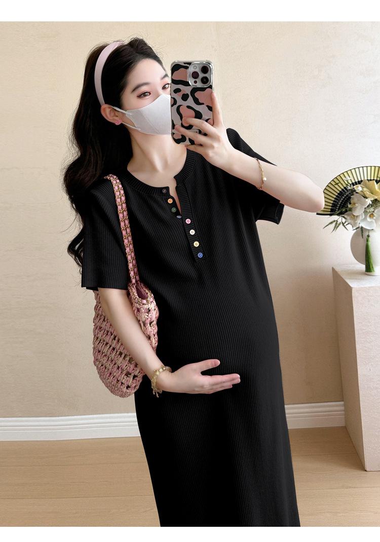 Ropa de Maternidad 2025 Verano Nuevo Estilo Coreano Tejido Ropa Dopamínica Suelto Talla Grande Vestido de Maternidad
