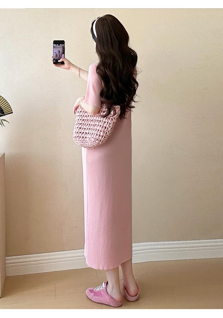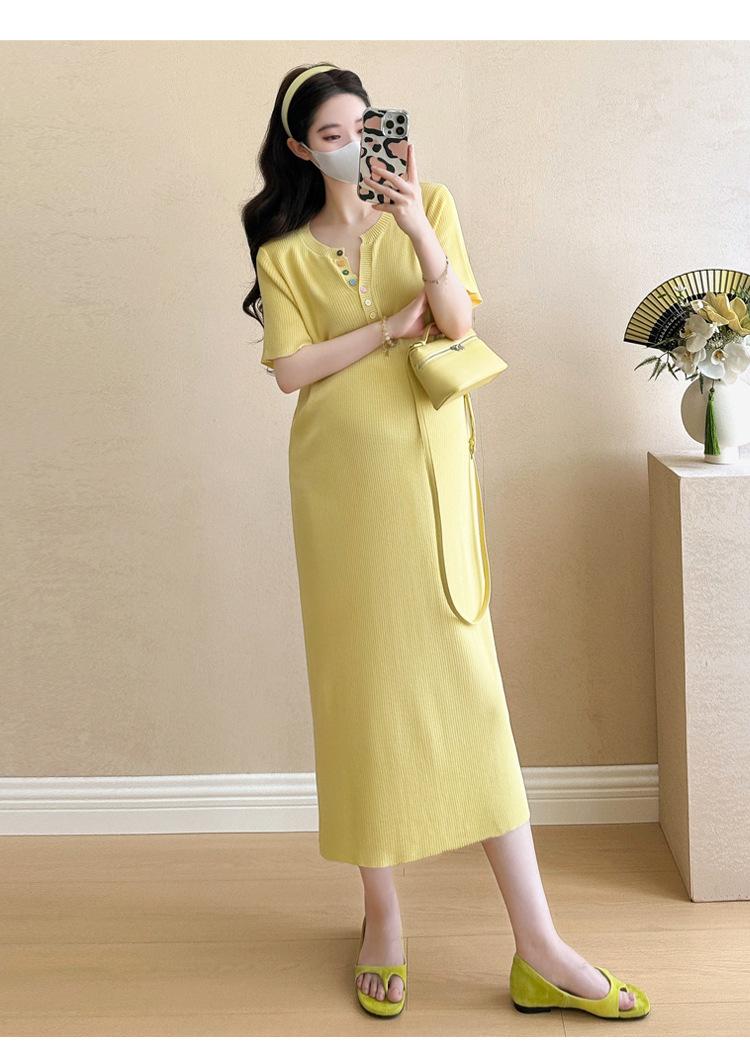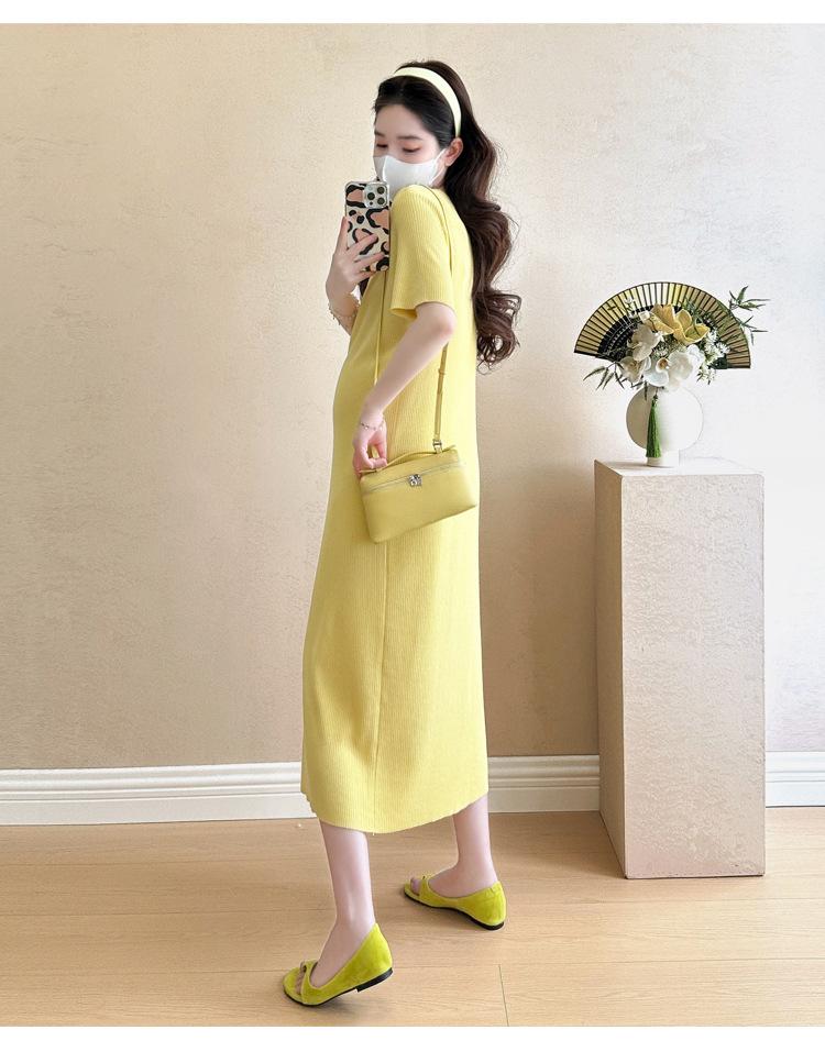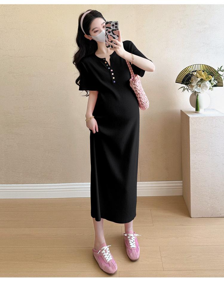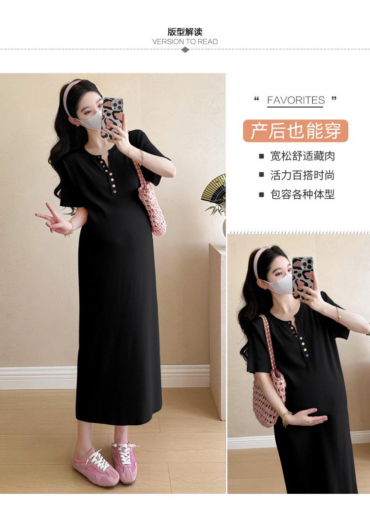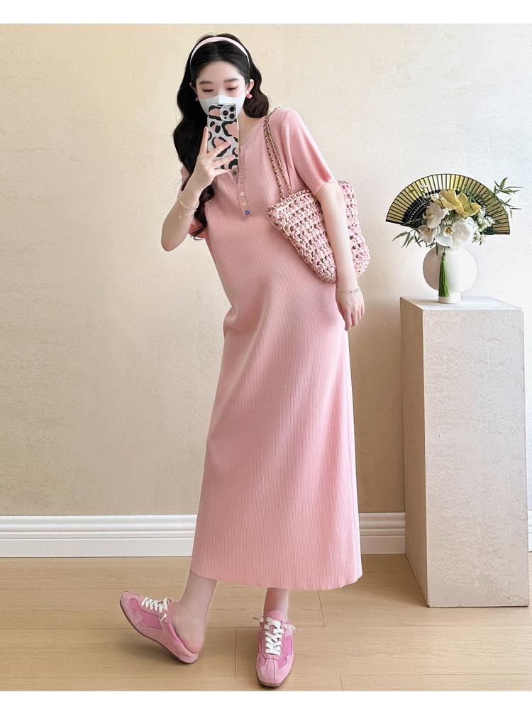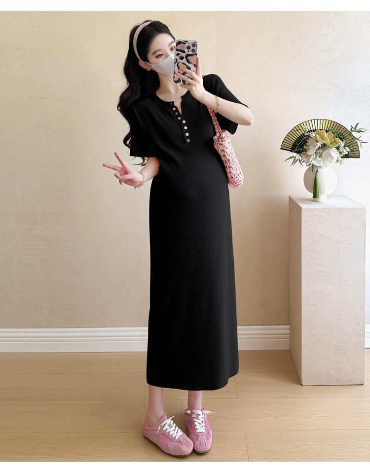 Ropa de Maternidad 2025 Verano Nuevo Estilo Coreano Tejido Ropa Dopamínica Suelto Talla Grande Vestido de Maternidad