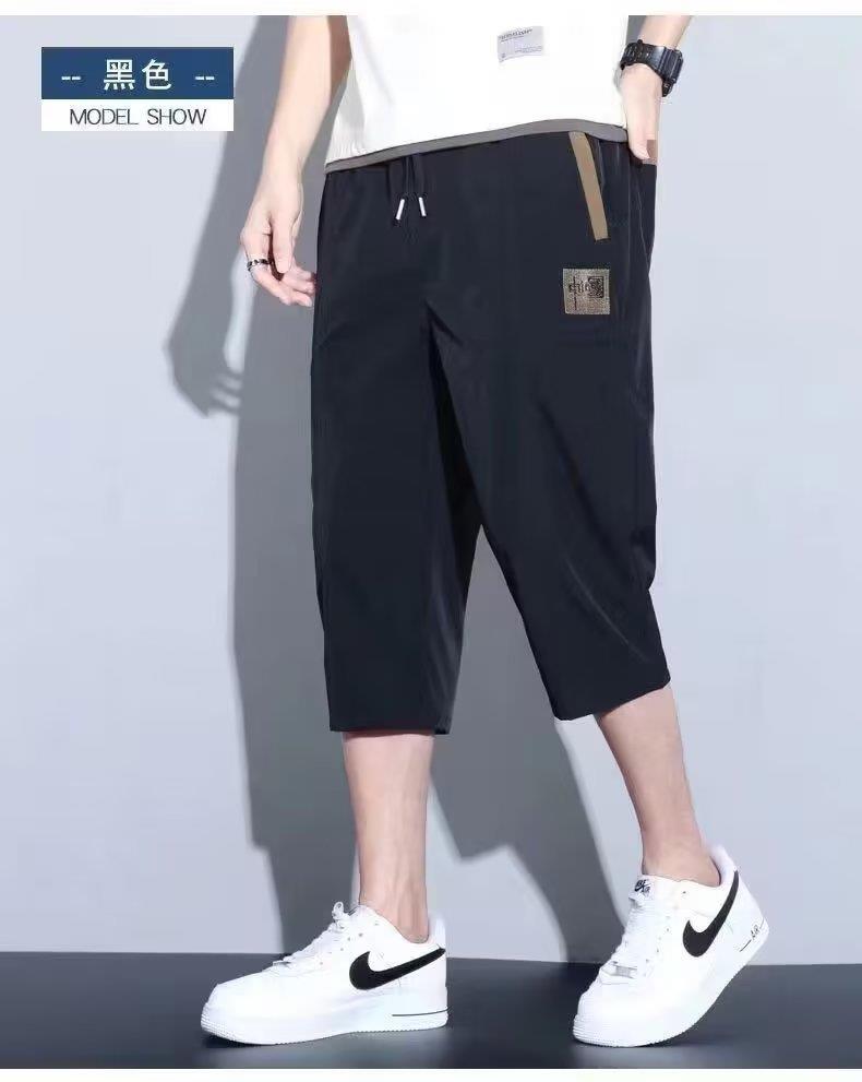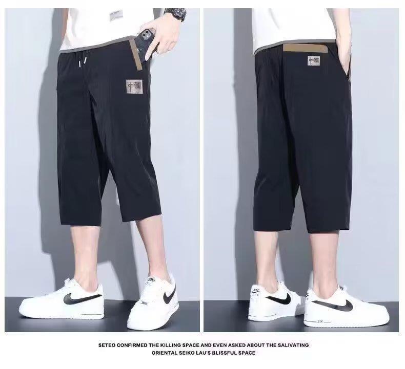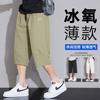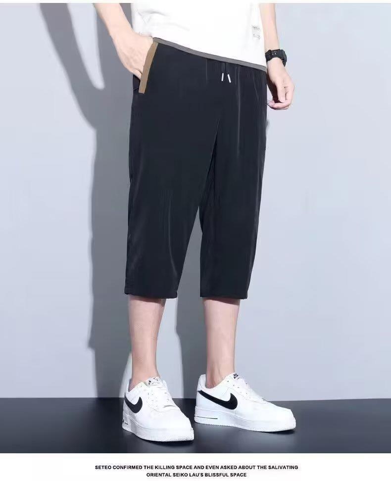 Pantalones Cortos Rectos Holgados Delgados de Seda de Hielo de Verano para Hombre, Moda Casual para Combinar con Todo, Pantalones Medios, Pantalones Capri, Pantalones Deportivos