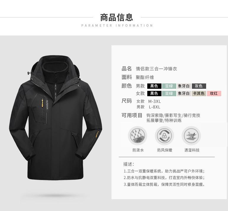 Logotipo fábrica chaqueta exterior para hombre tres en uno forro polar para mujer impermeable a prueba de frío cálido overol
