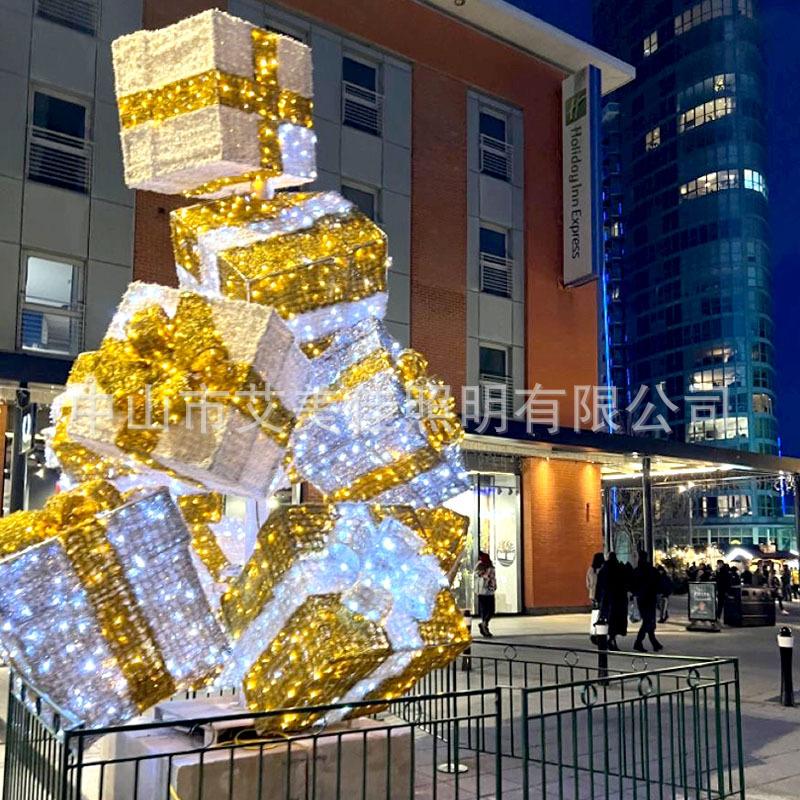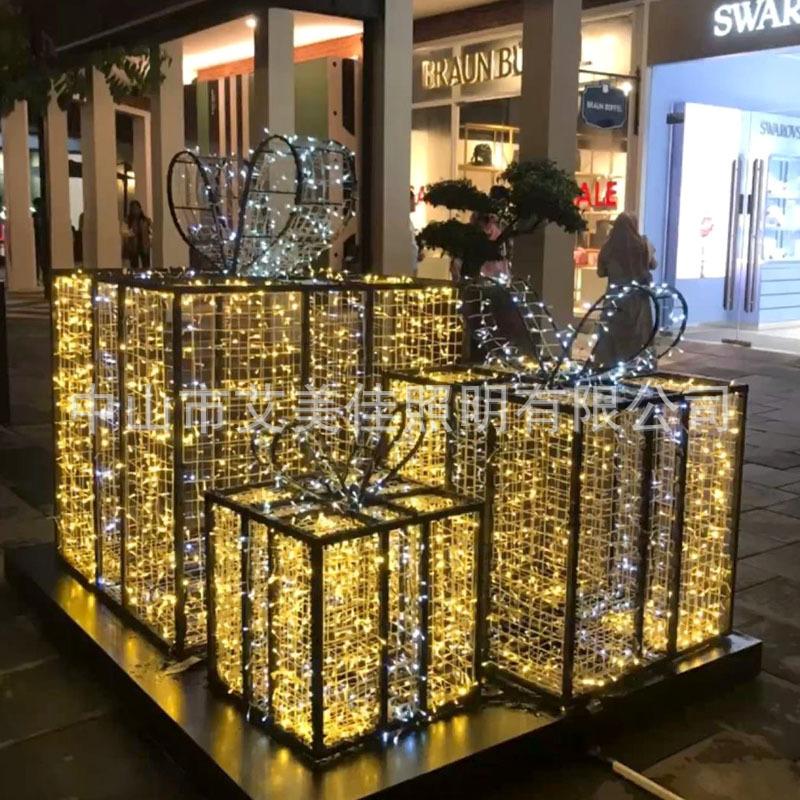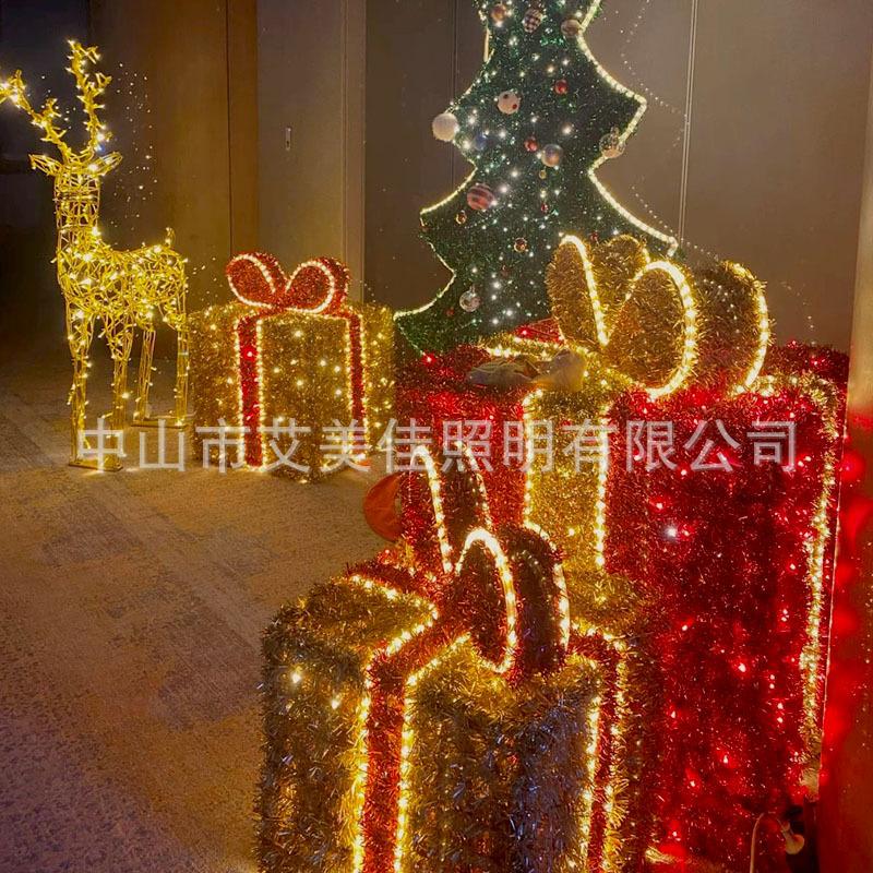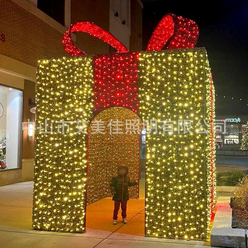 Luces Decorativas Led Luminosas para Fiestas Navidad Coloridas Luces con Forma de Caja de Regalo de Hierba Iluminación para Plaza de Parque al Aire Libre