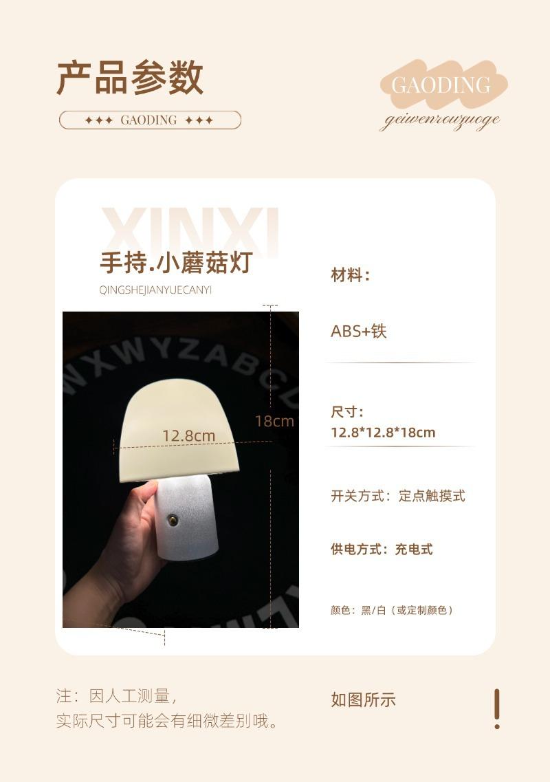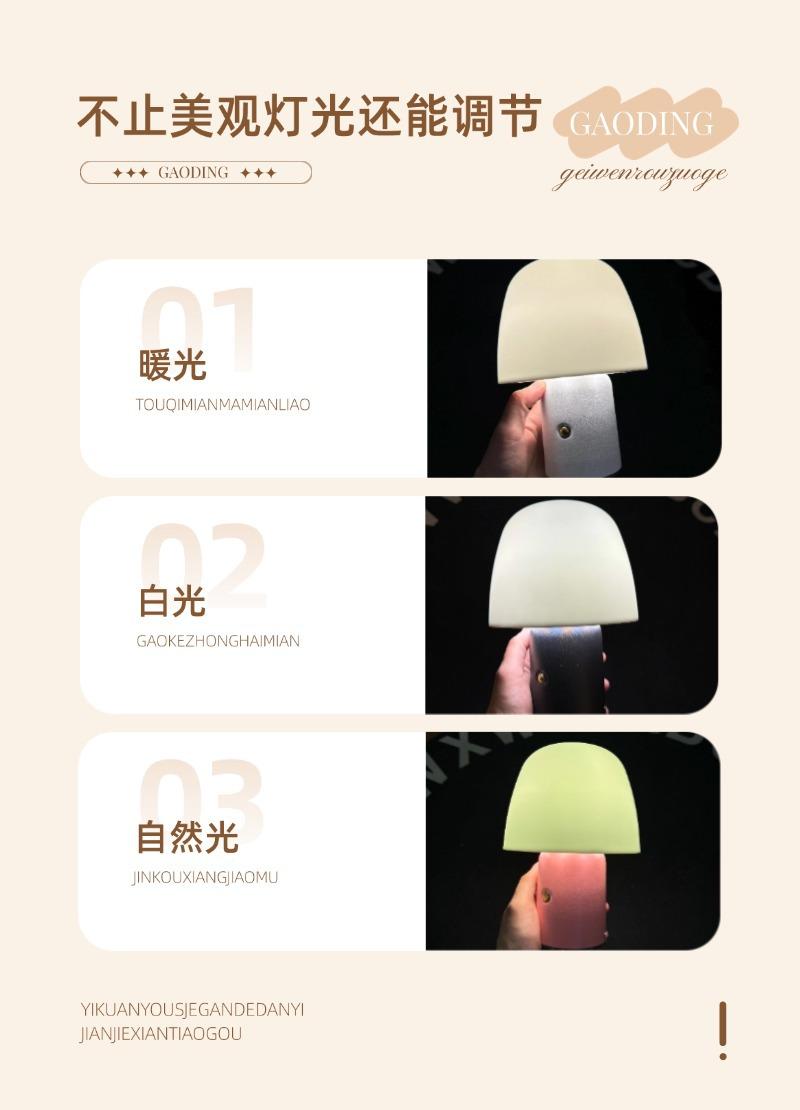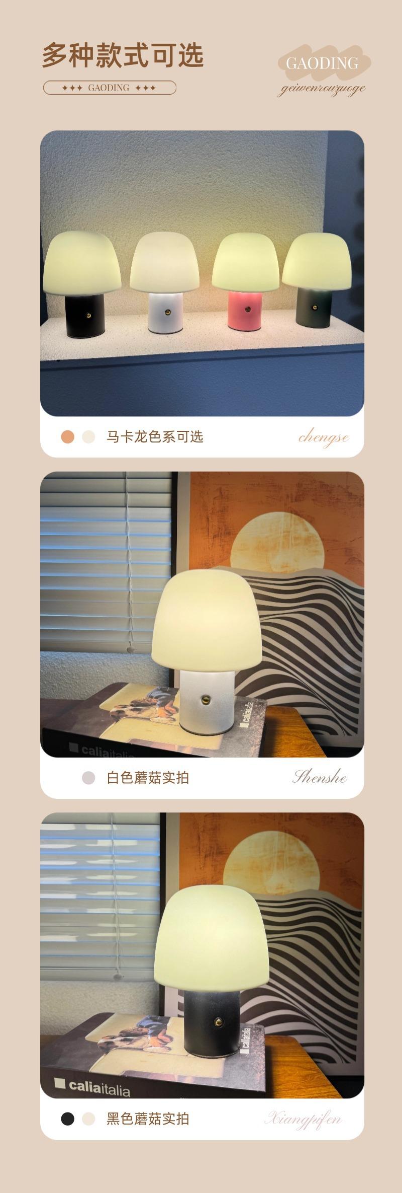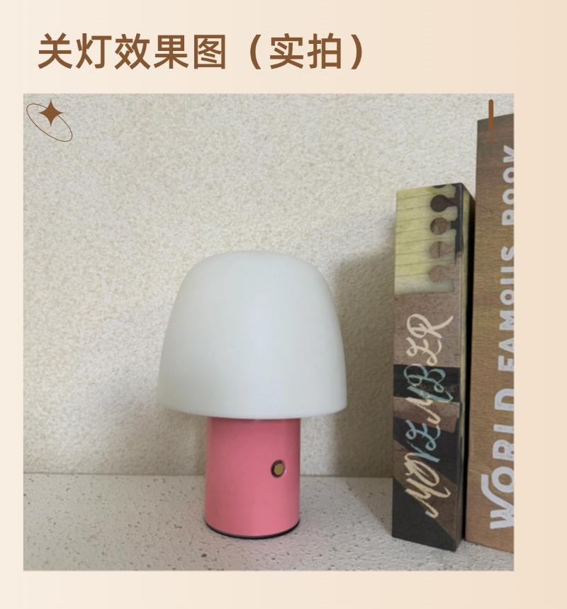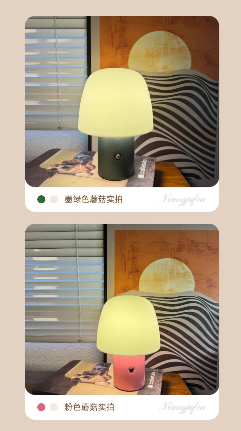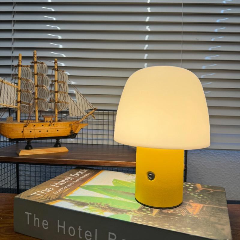 Lámpara de Mesa de Escritorio Inalámbrica LED Personalizada con Forma de Hongo para Dormitorio, Bar, Restaurante, Luz Nocturna Ambiental Recargable por USB con Brillo Ajustable