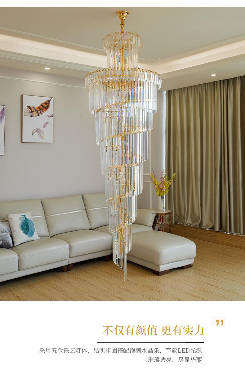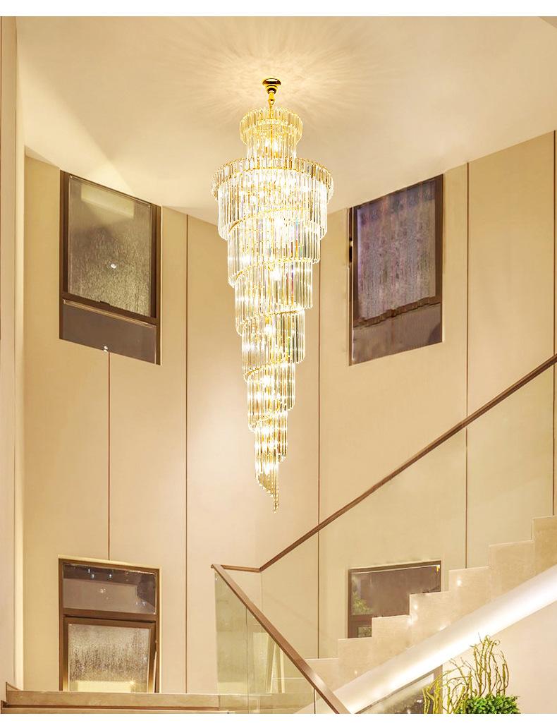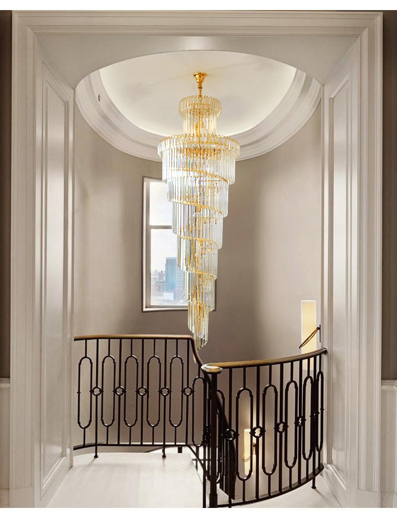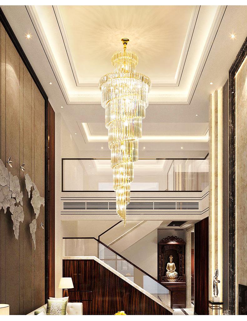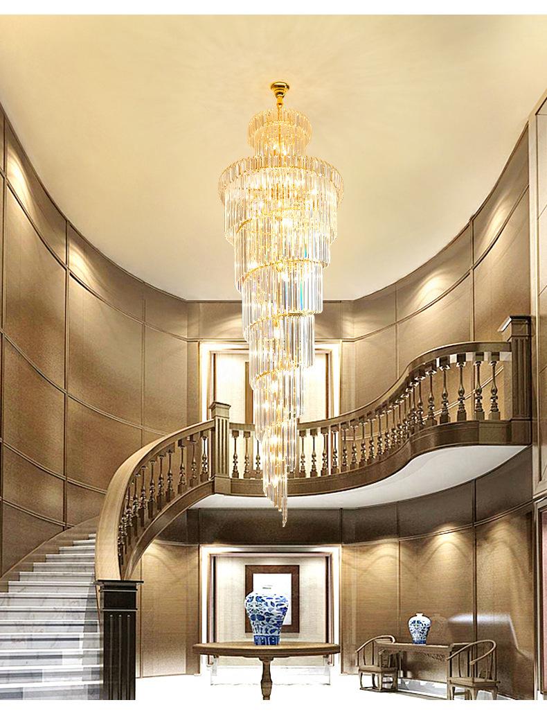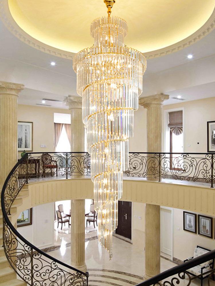 Lámpara de araña de escalera, lámpara de araña larga, edificio dúplex, proyecto de vestíbulo de hotel giratorio, sala de estar de villa, luz hueca, lámpara de cristal de lujo