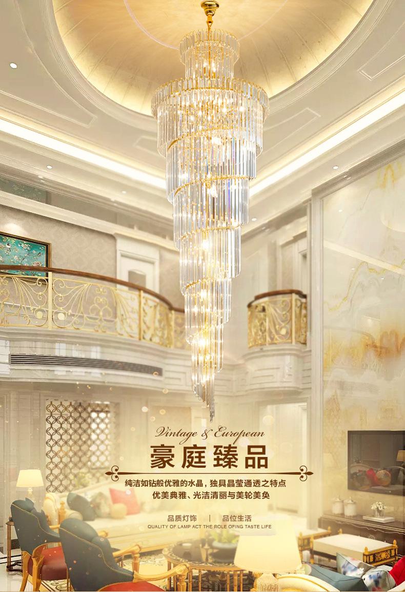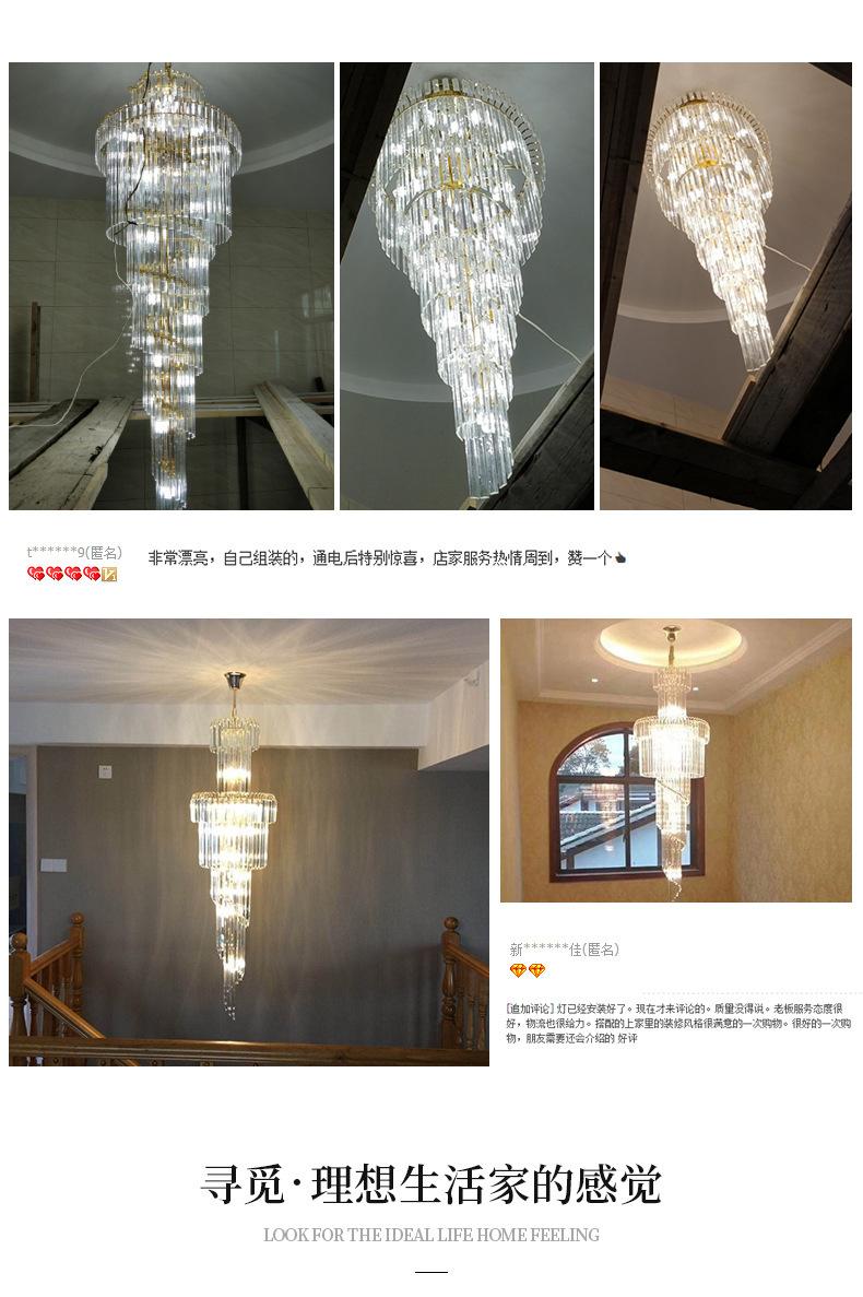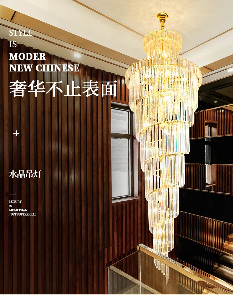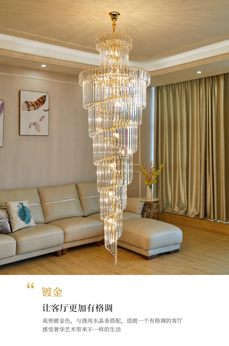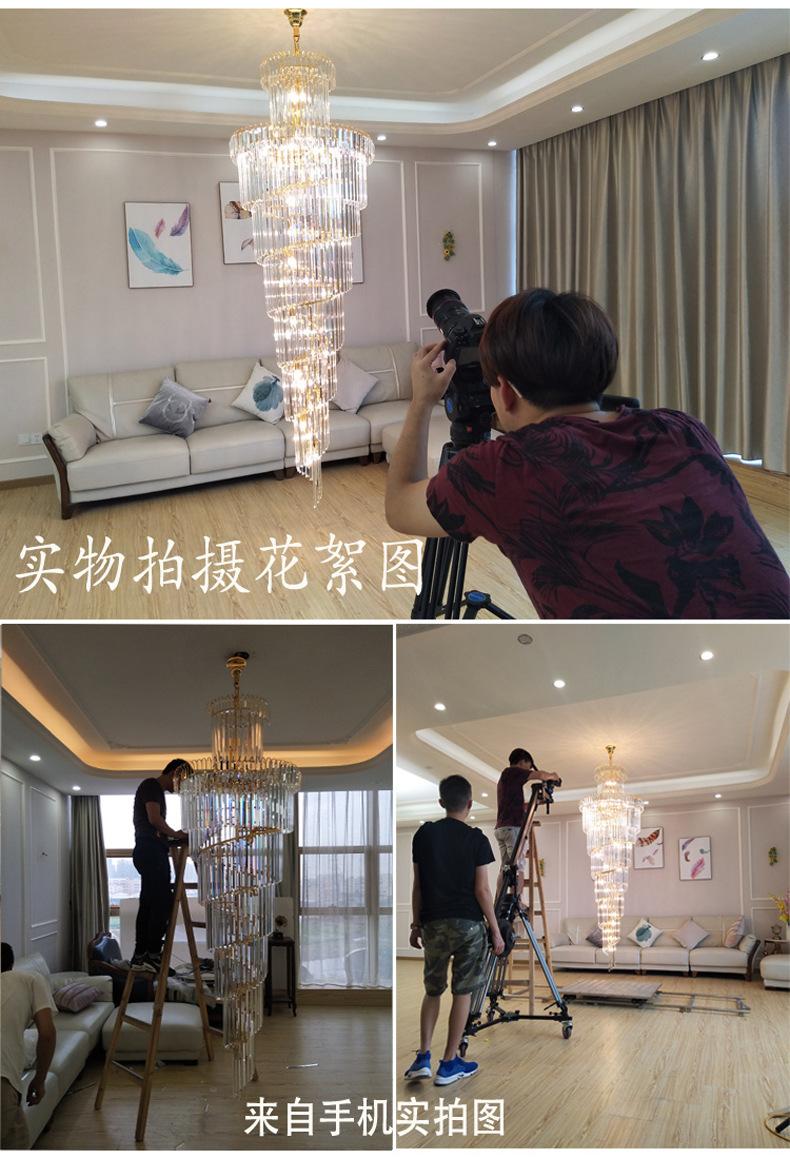 Lámpara de araña de escalera, lámpara de araña larga, edificio dúplex, proyecto de vestíbulo de hotel giratorio, sala de estar de villa, luz hueca, lámpara de cristal de lujo