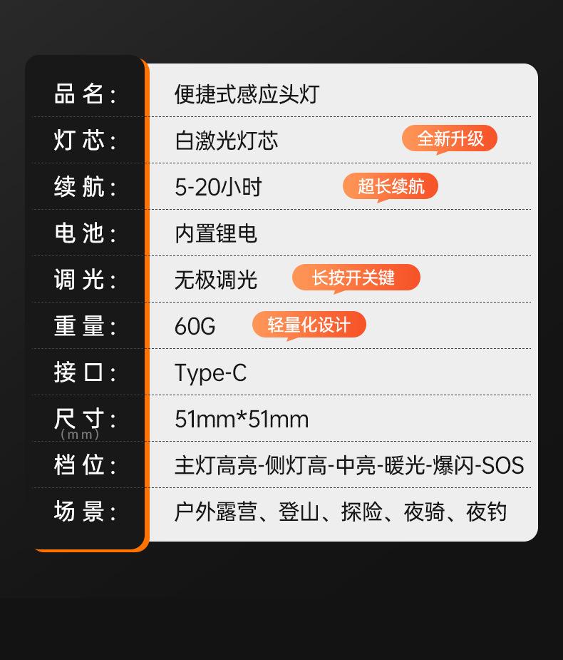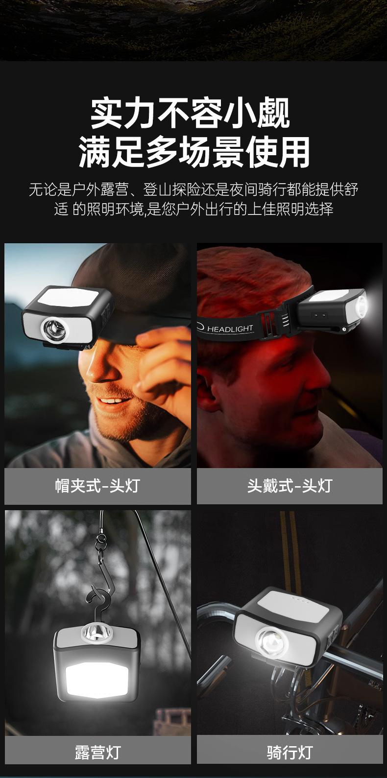 Gorra con clip para exteriores Linterna frontal de camping Inducción Lámpara de pesca nocturna Linterna frontal de pesca Linterna frontal recargable Impermeable Resaltado Rojo Luz de emergencia