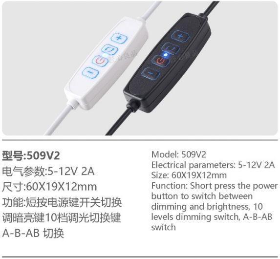 Línea de Interruptor de Cuatro Botones USB de 5V Personalizada Luz de Espejo LED Faro Luz de Fotografía Luz de Relleno Luz de Belleza Pintura de Luz Solar Atenuador