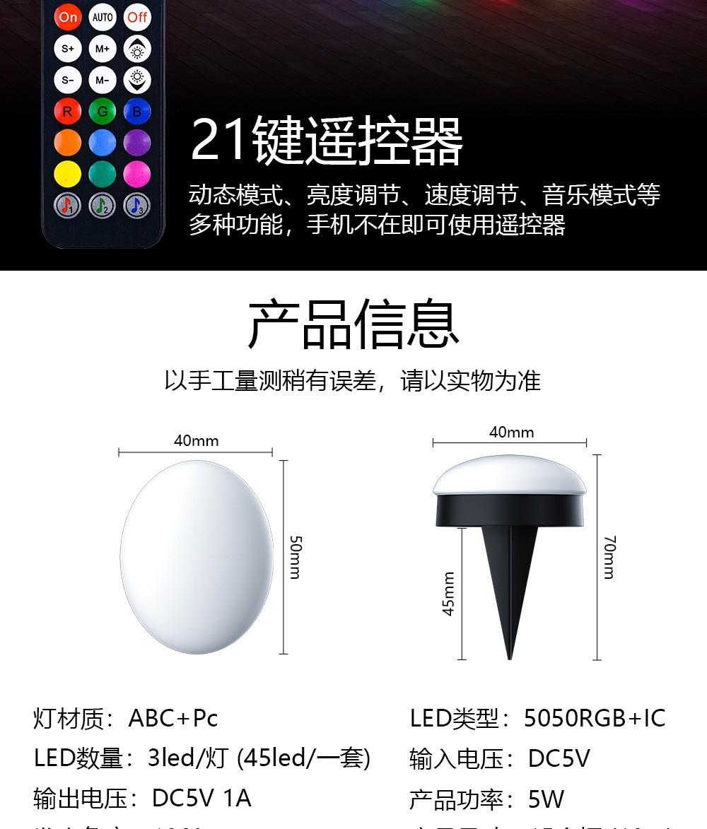 Lámpara de Césped Rgb Impermeable para Exterior Transfronteriza Led Jardín Lámpara de Suelo DIY Inteligente Bluetooth Exterior Patio Lámpara de Césped