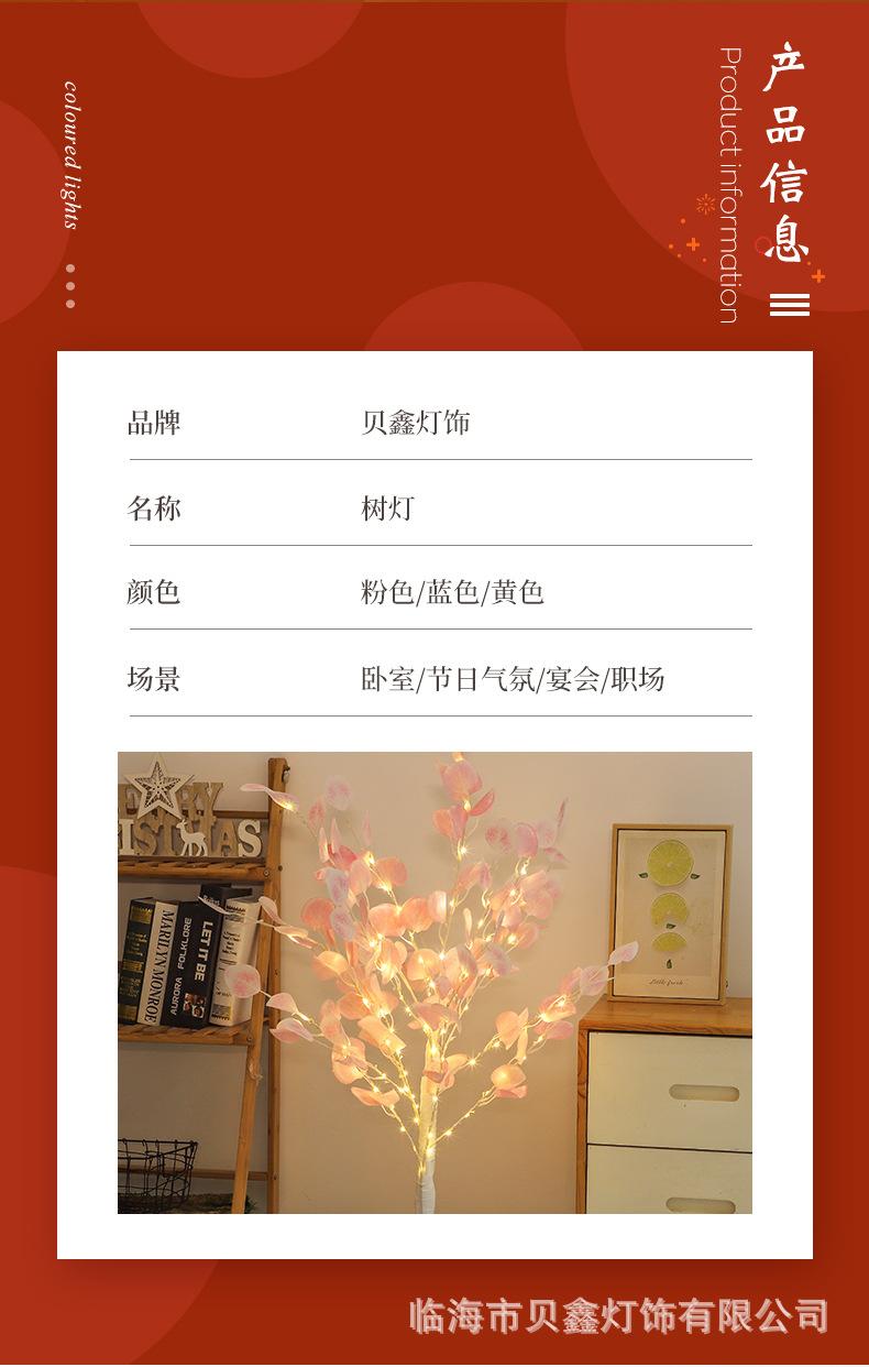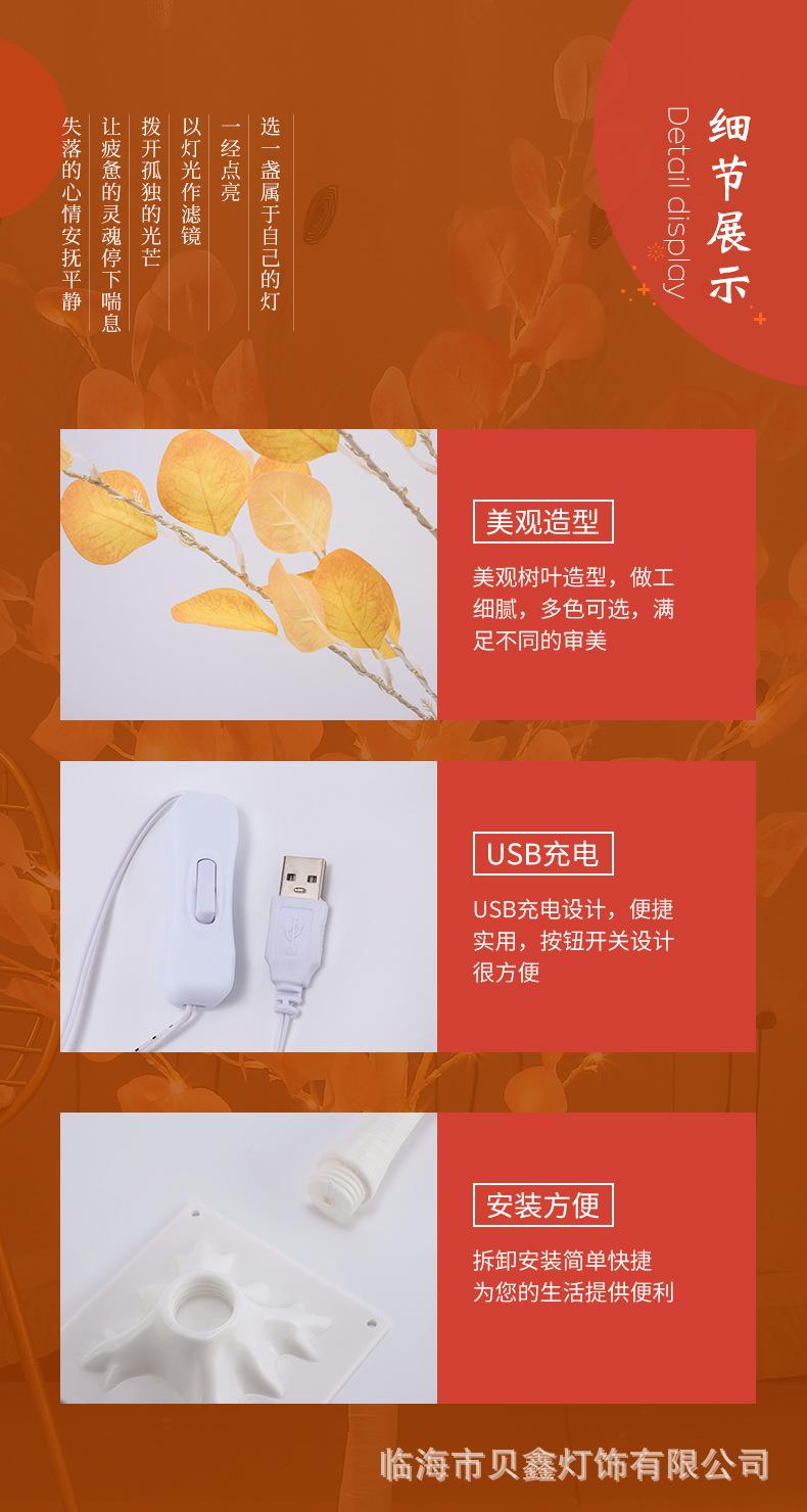 Nuevo suministro directo de fábrica Lámpara LED de alambre de cobre con forma de hoja de manzana, luz de árbol, luz colorida, decoración interior para habitación de hotel ins