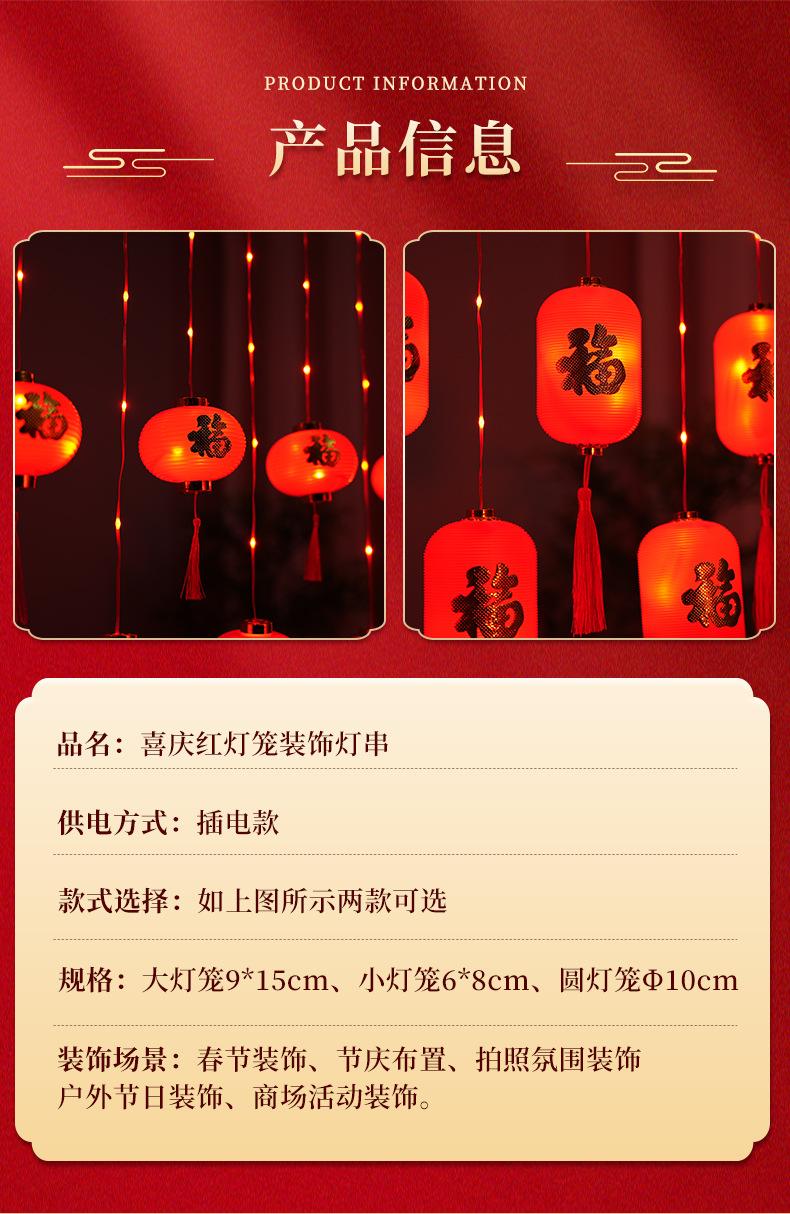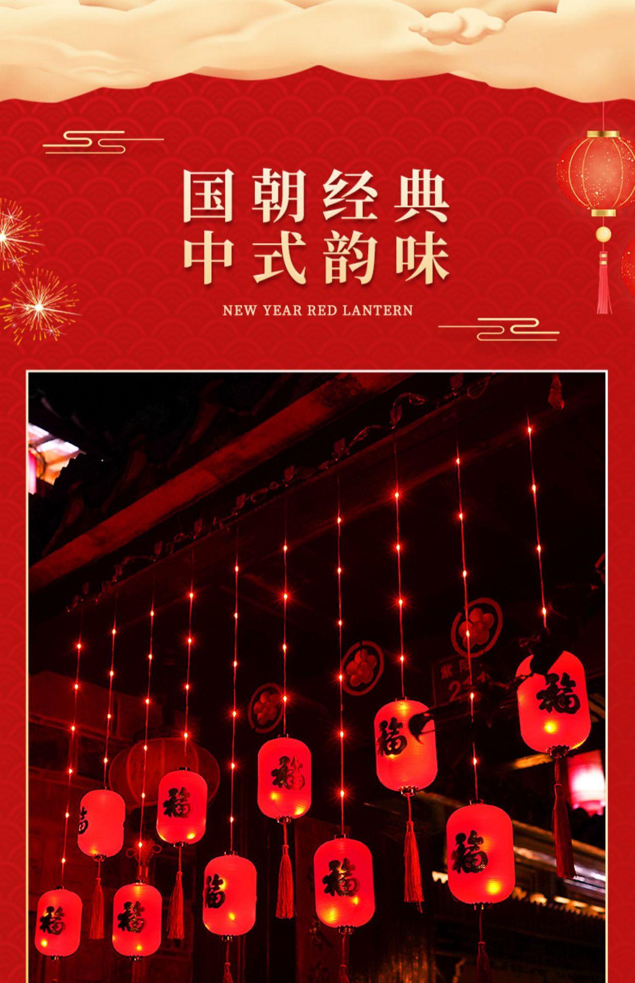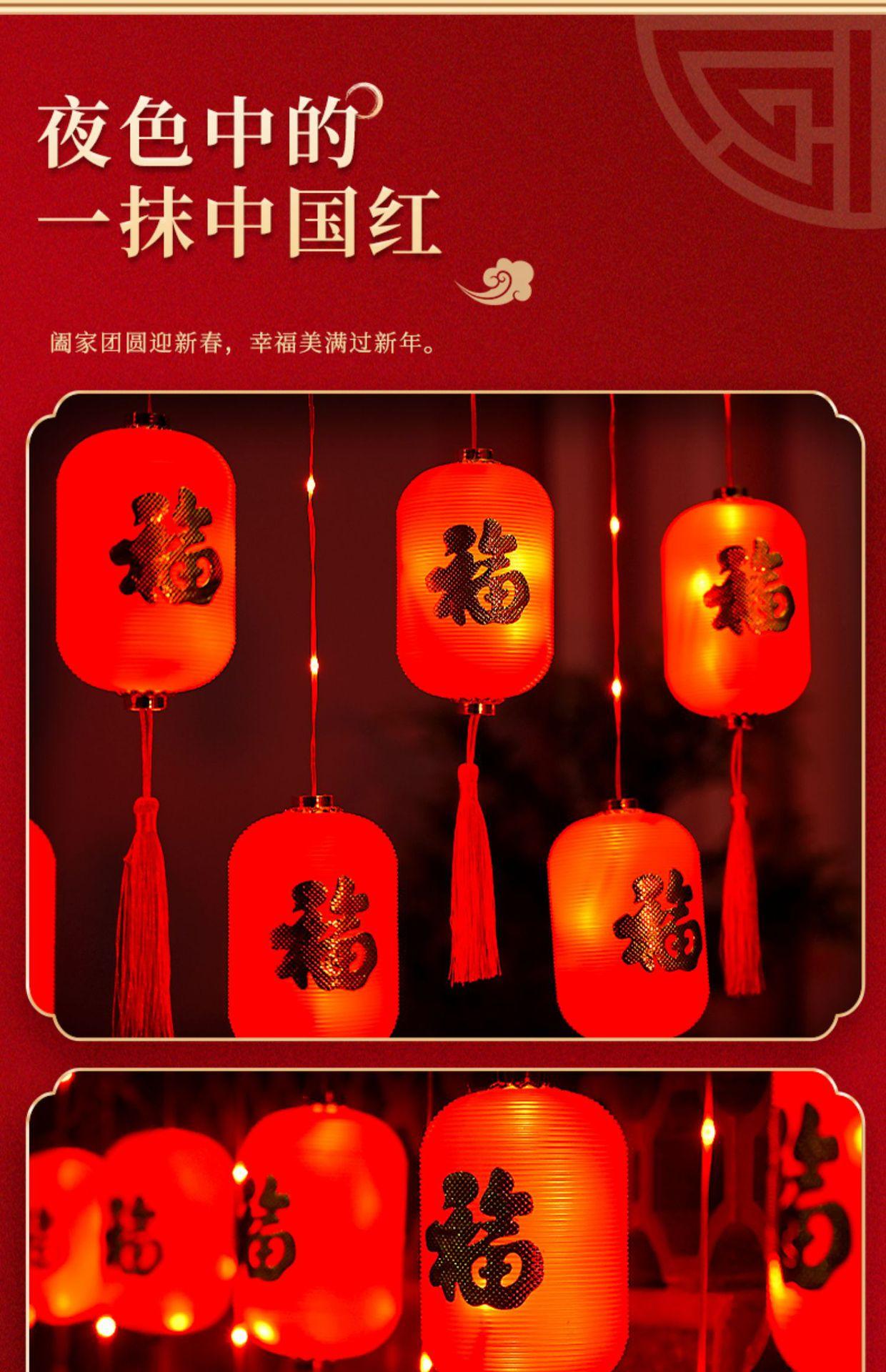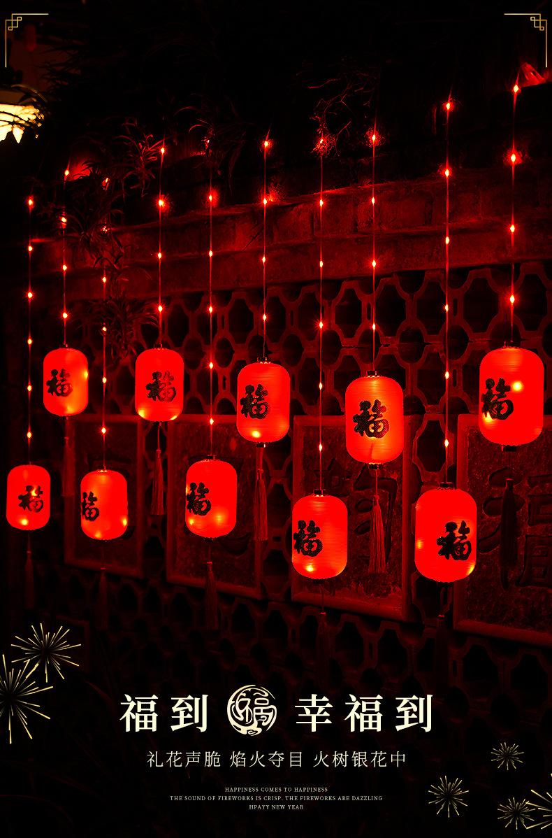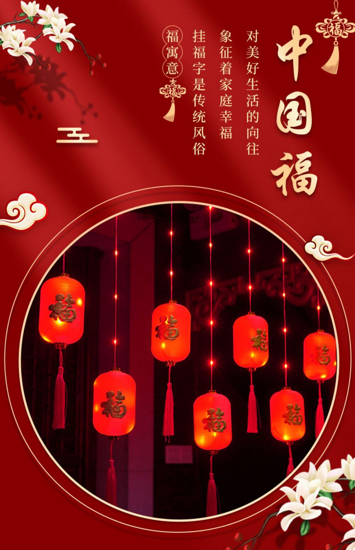 Feliz Año Nuevo, Guirnalda de Luces de Linternas Rojas con Caracteres de Bendición, Decoración de Balcón para el Festival de Primavera, Luces LED, Luces de Ambiente de Año Nuevo para Exterior, Luces Intermitentes