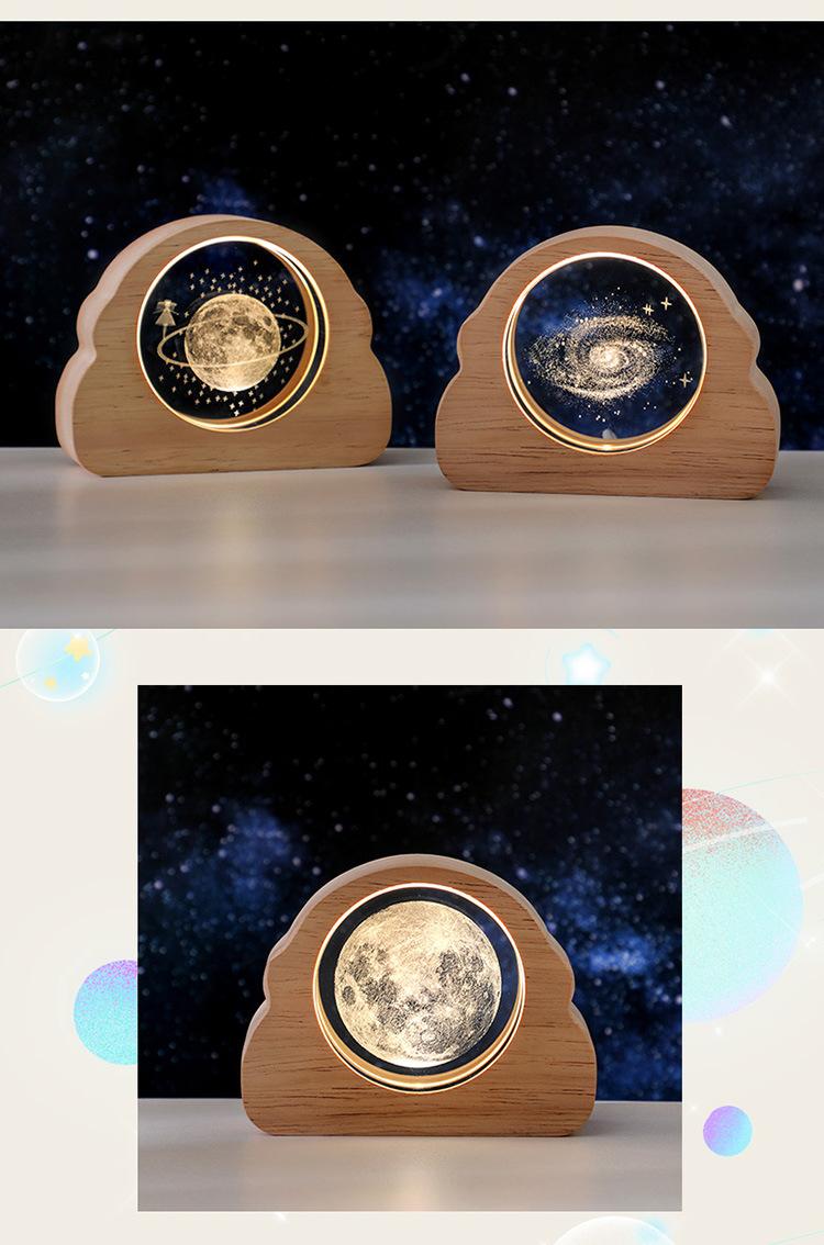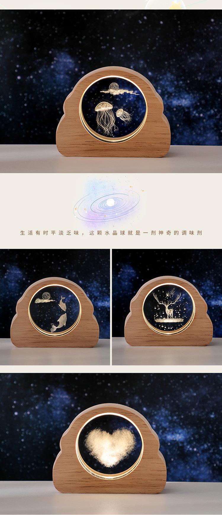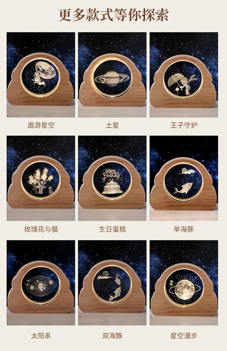 Luz Nocturna de Cristal Luminoso Tallado 3D Cielo Estrellado Transfronterizo Adornos de Decoración de Escritorio Luz LED Regalo Creativo de Cumpleaños