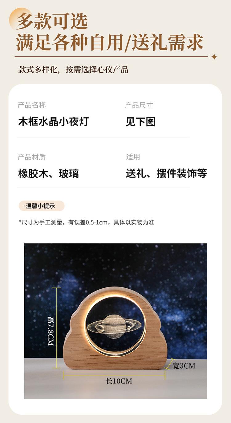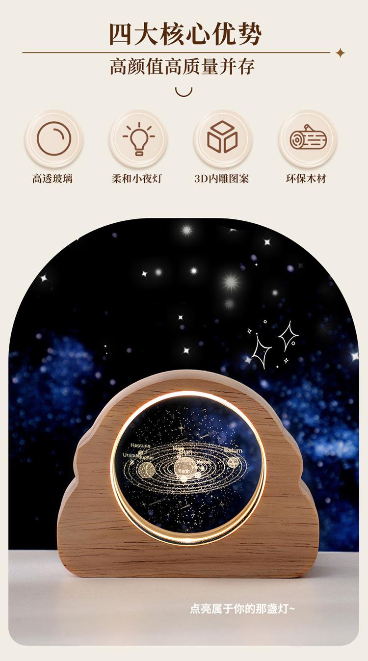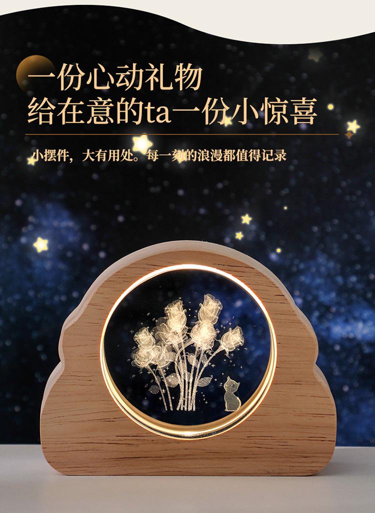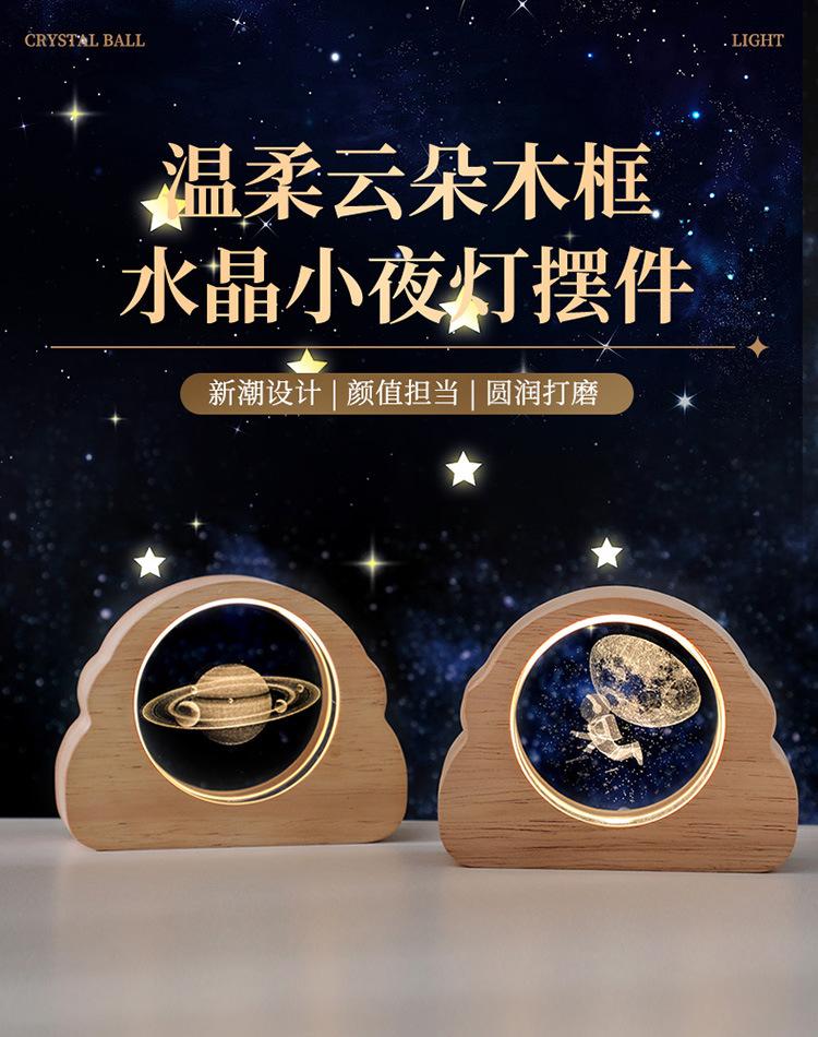 Luz Nocturna de Cristal Luminoso Tallado 3D Cielo Estrellado Transfronterizo Adornos de Decoración de Escritorio Luz LED Regalo Creativo de Cumpleaños