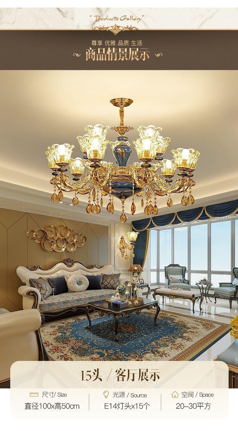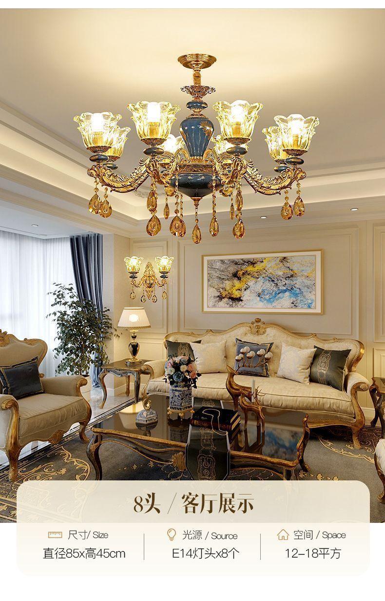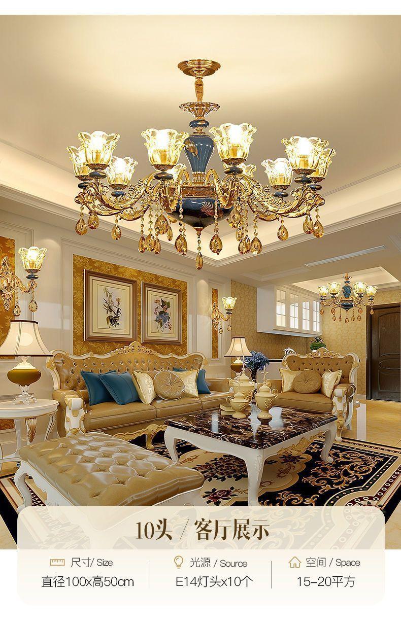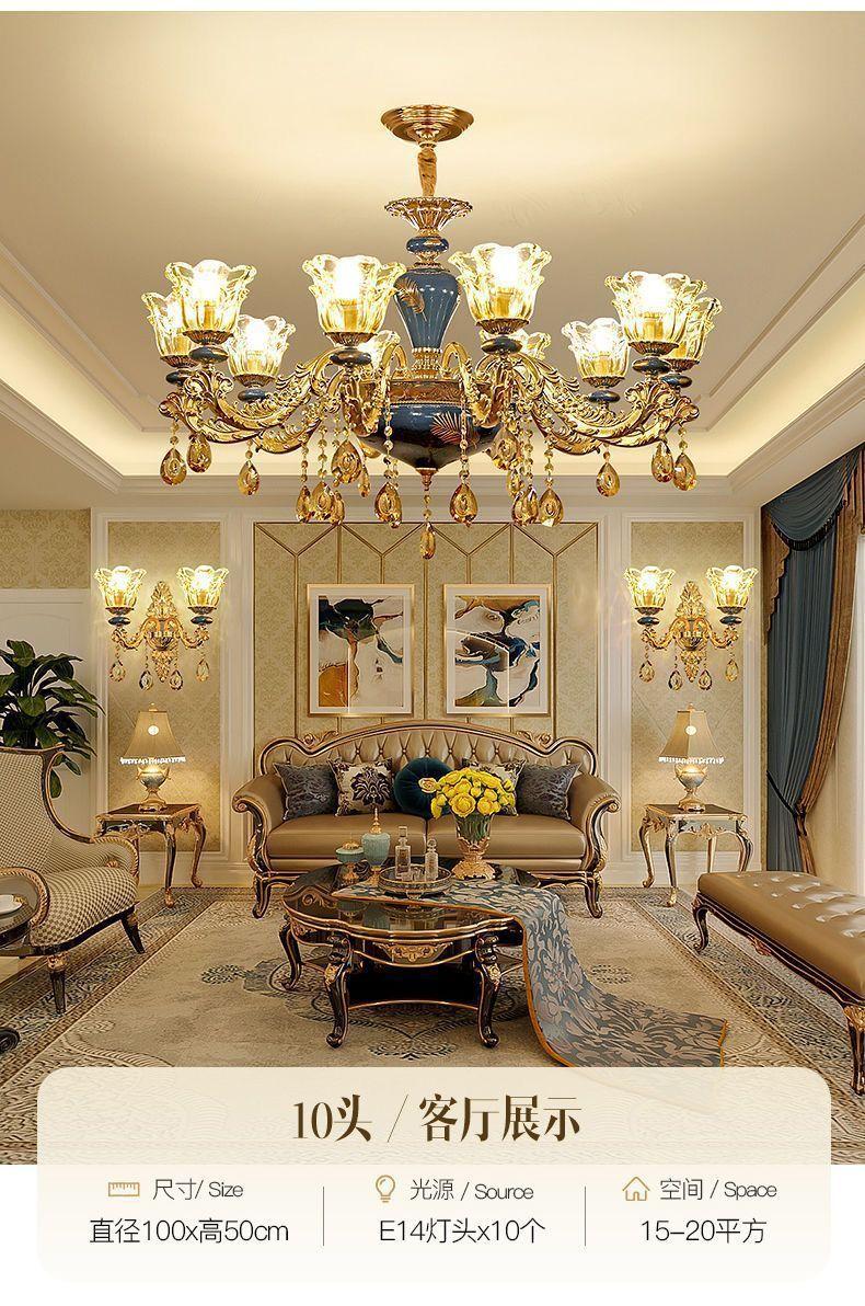 Lámpara de sala de estar, candelabro europeo 2024, nueva lámpara de cerámica de lujo para villa, lámpara principal para comedor, dormitorio, lámparas de cristal