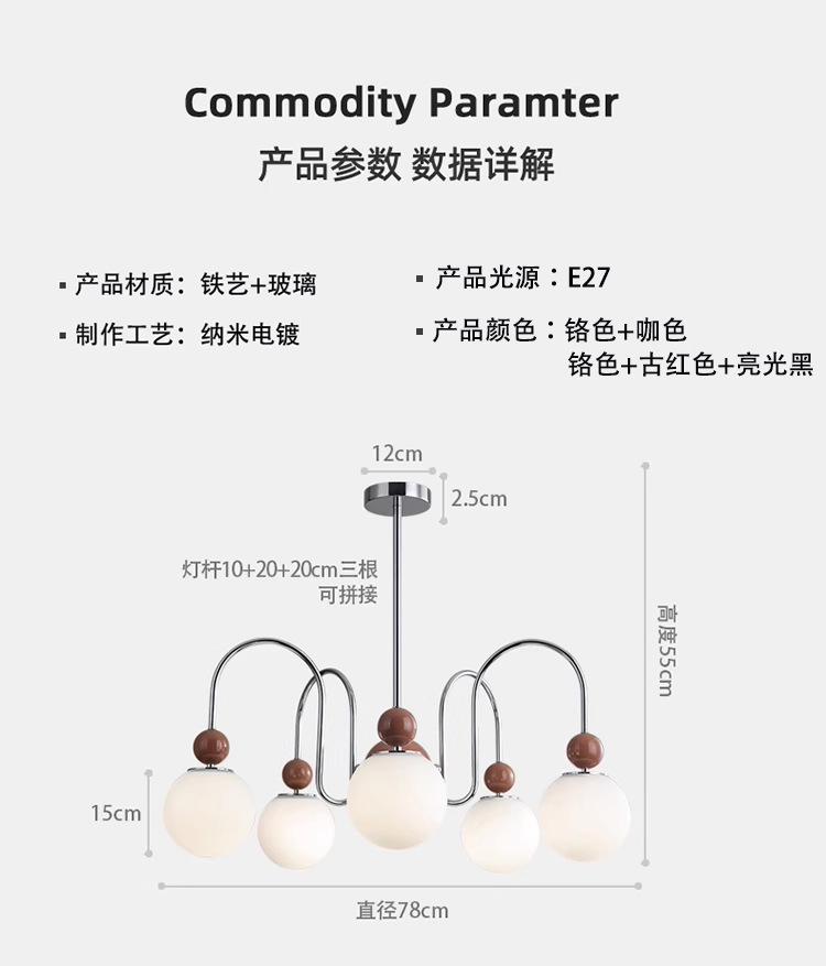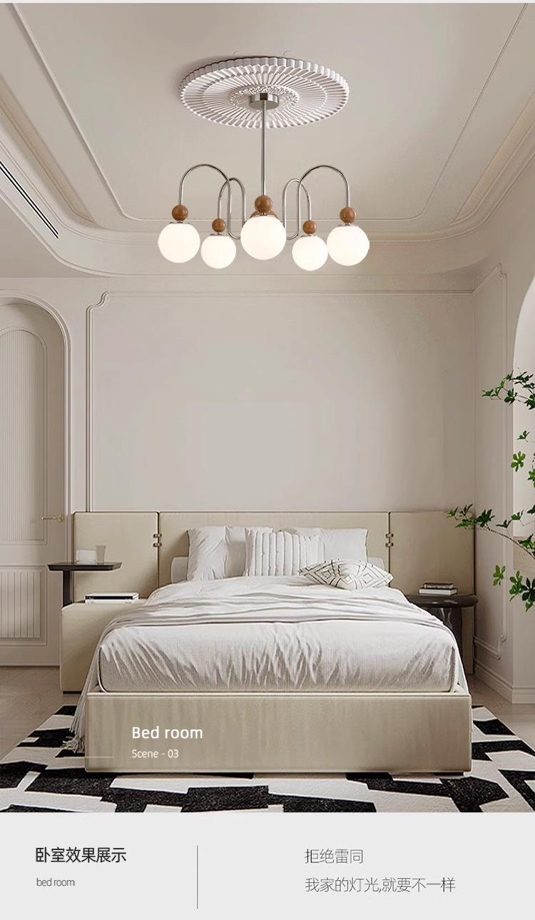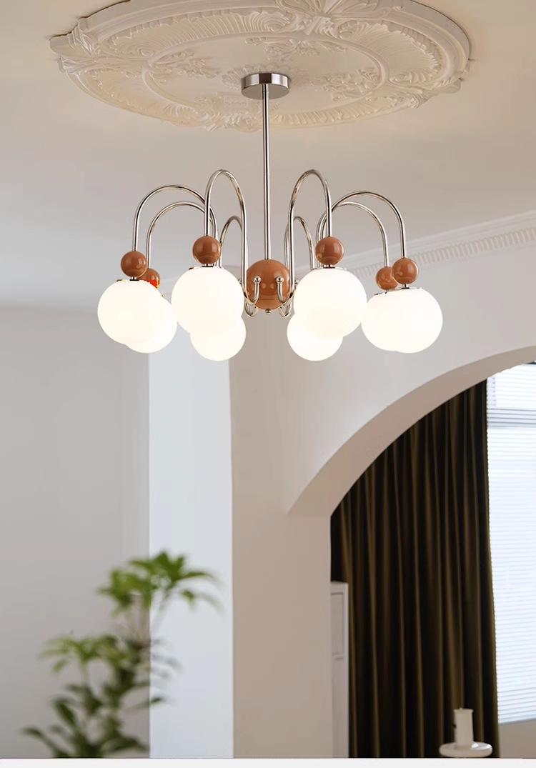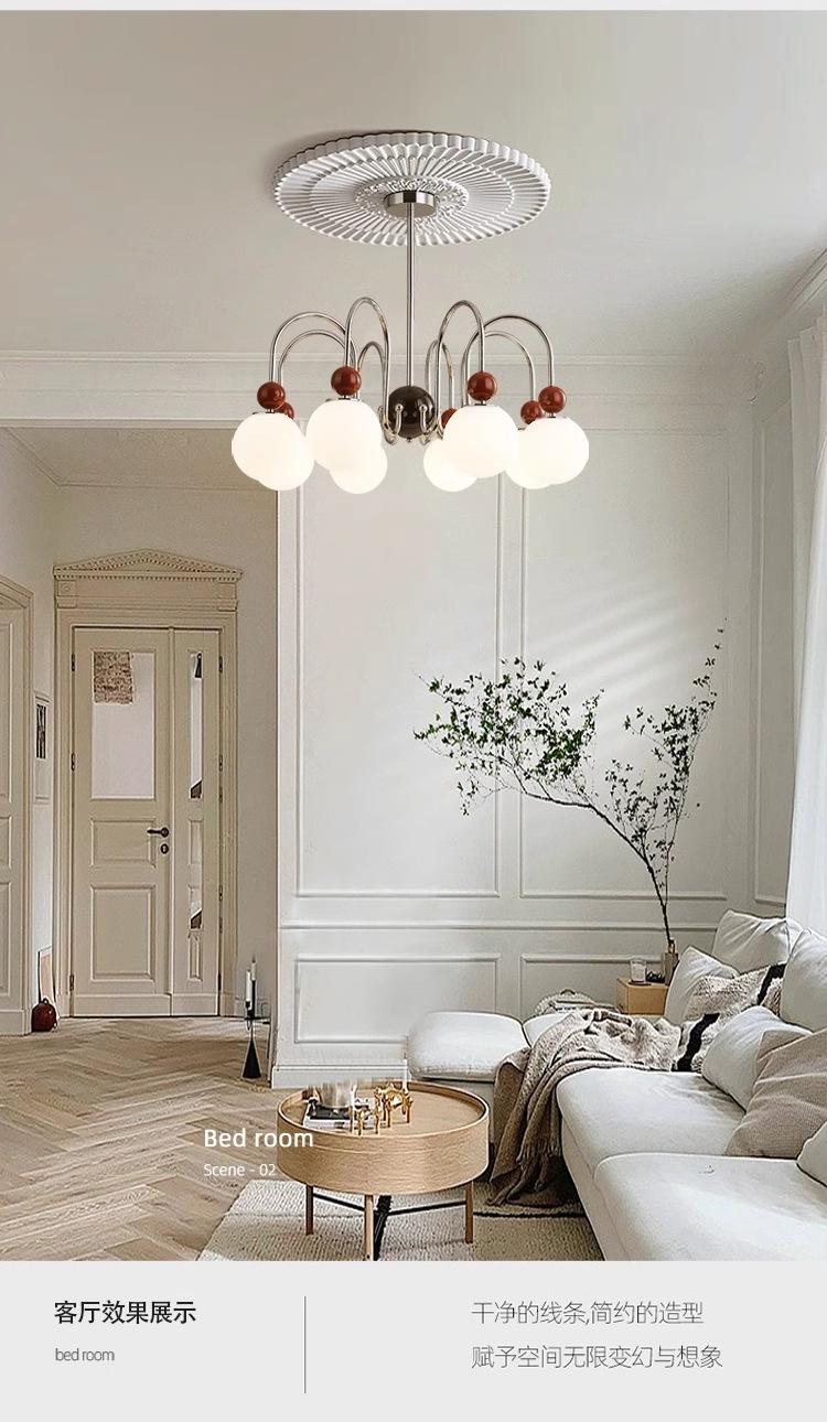 Lámpara de Araña de Sala de Estar Estilo Crema Francés Frijol Mágico Antiguo Bola Roja Perla Simple Moderno Bauhaus Dormitorio Lámparas Protección Ojos