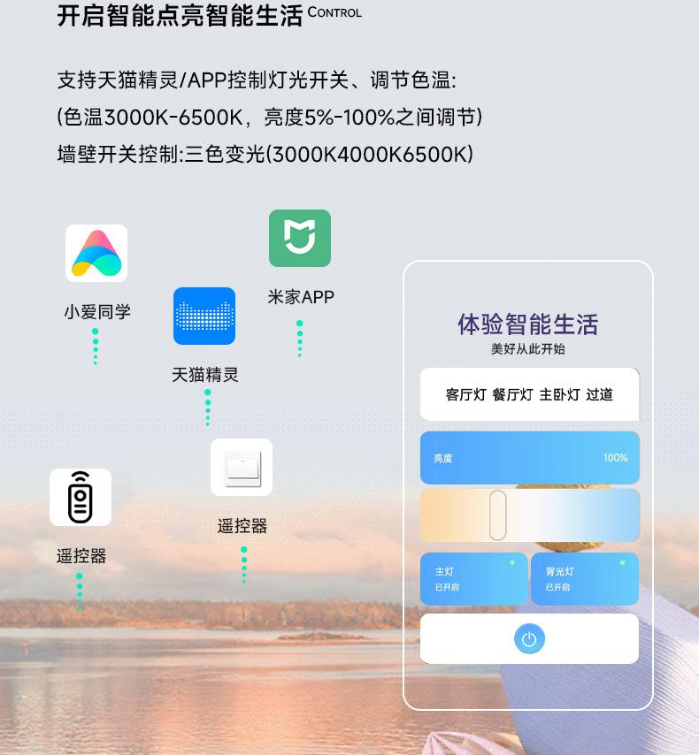 Full spectrum three-color dimming, Full spectrum tmall elf, Full spectrum offline voice control, Full spectrum...