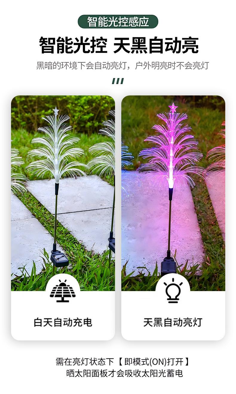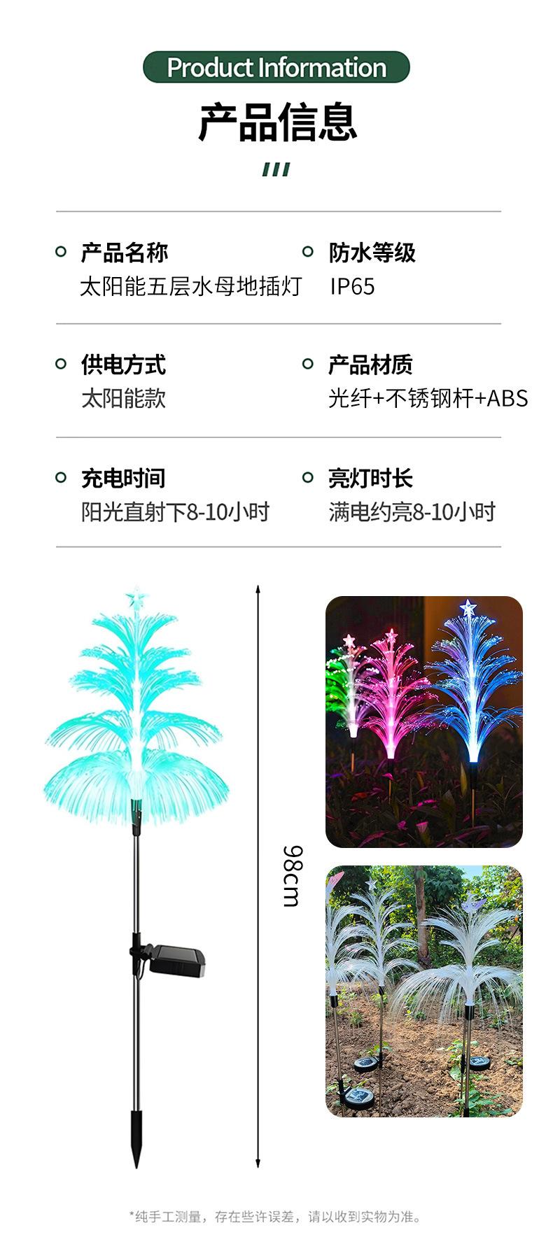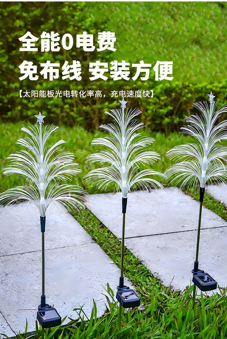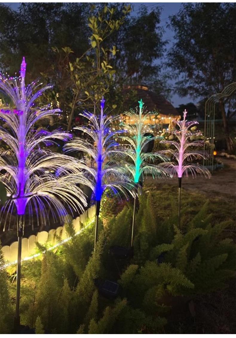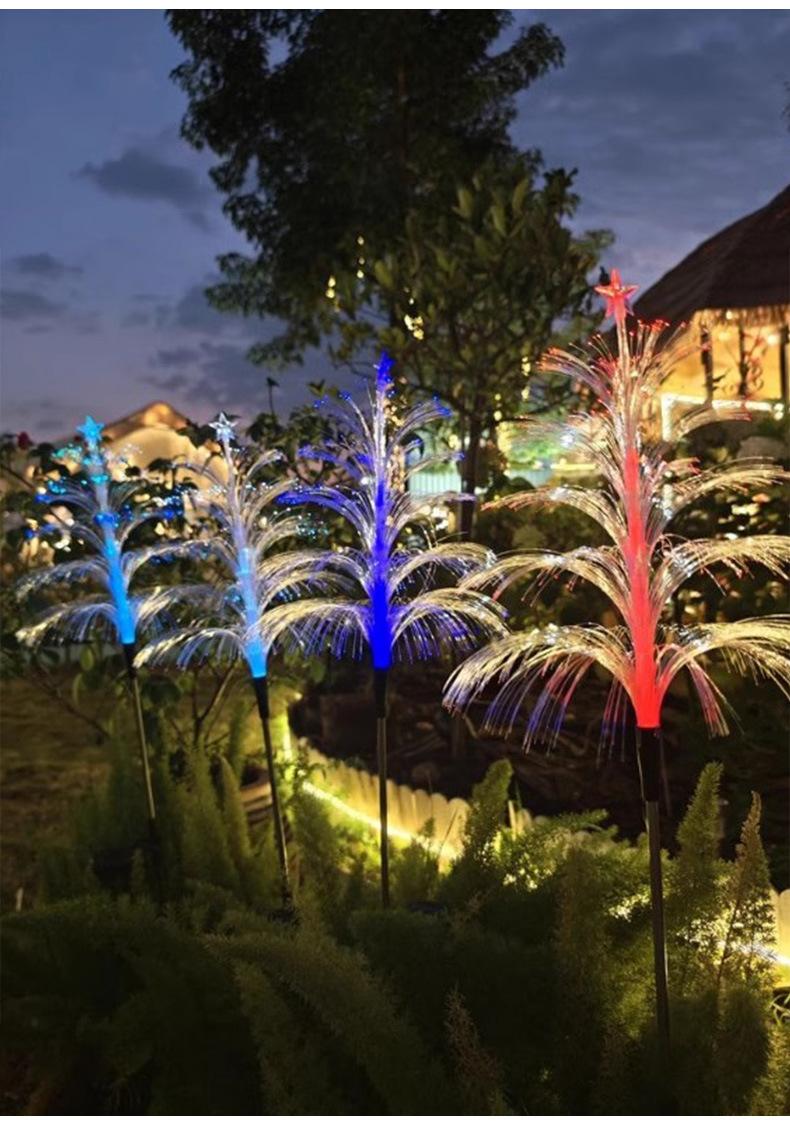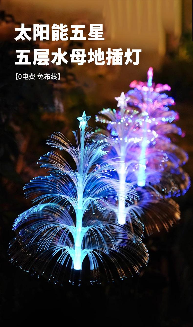 Luz Decorativa de Árbol de Navidad de Medusa de Cinco Capas de Fibra Óptica Colorida Solar Impermeable para Exterior Patio Jardín Césped Luz de Paisaje