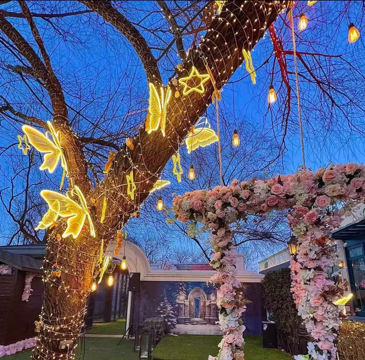 Luz Ambiental Exterior Impermeable Led Dinámica Luminosa Luz de Mariposa Decoración Escena Nocturna Luz Colgante para Árbol Patio Luz para Césped Centro Comercial