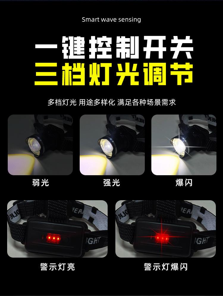 Faro Recargable Transfronterizo Iluminación Ultravivaz Montada en la Cabeza Duración de Batería Ultralarga Inducción Pesca Nocturna al Aire Libre Linterna Doméstica