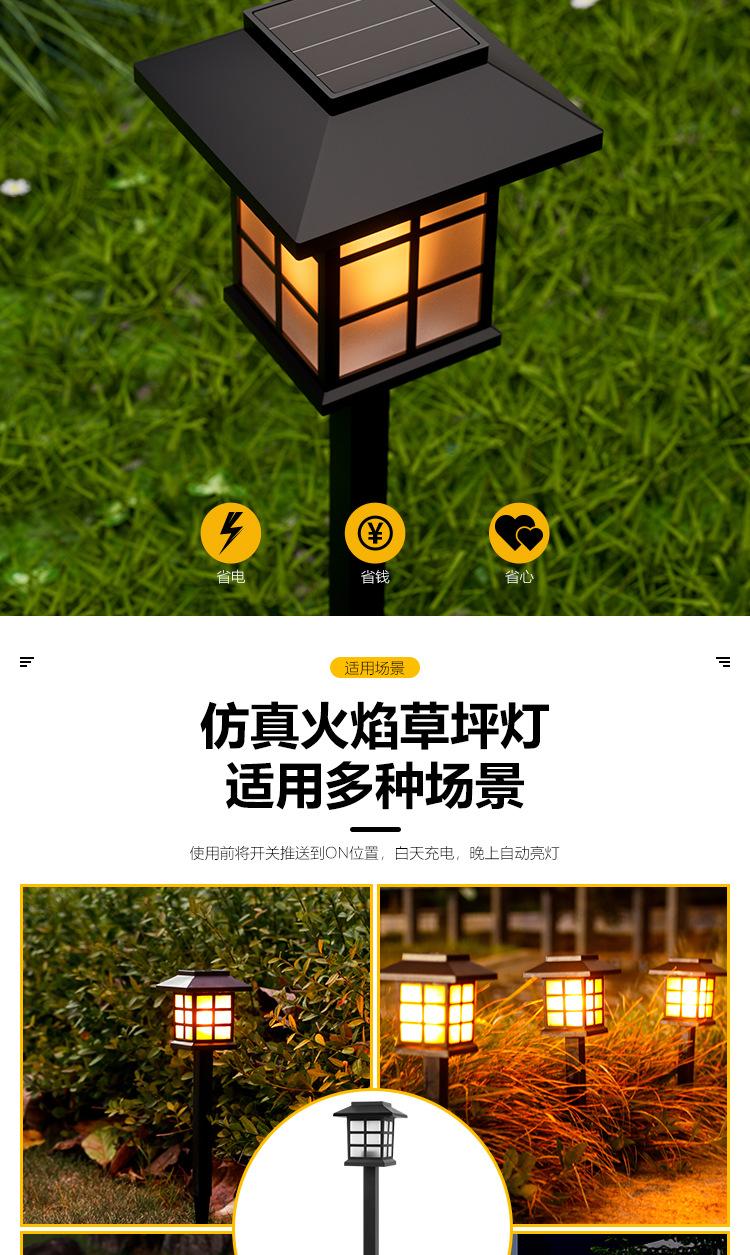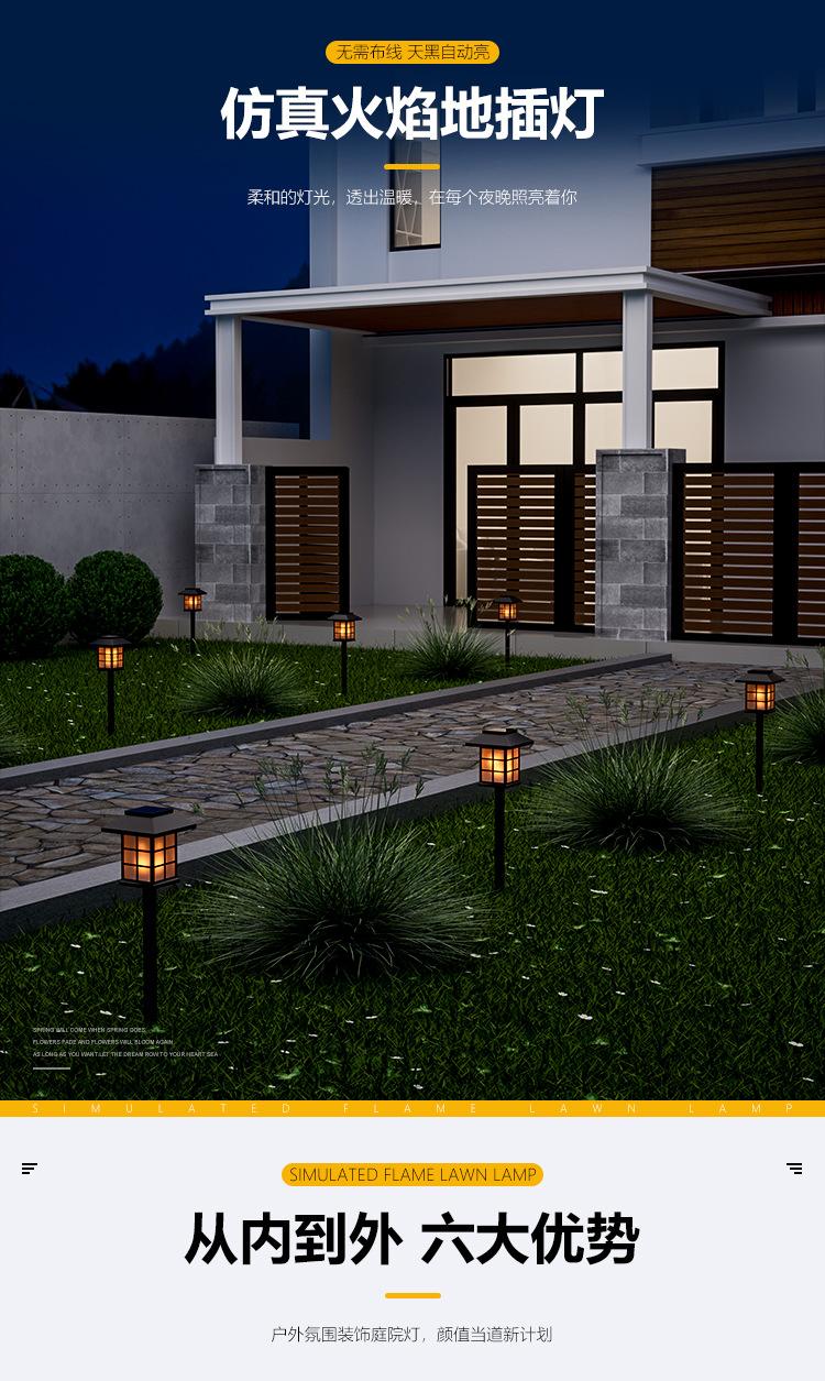 Lámpara de llama de simulación solar para exteriores, lámpara de césped decorativa para patio, paisaje, farola, jardín, villa, luz nocturna de suelo