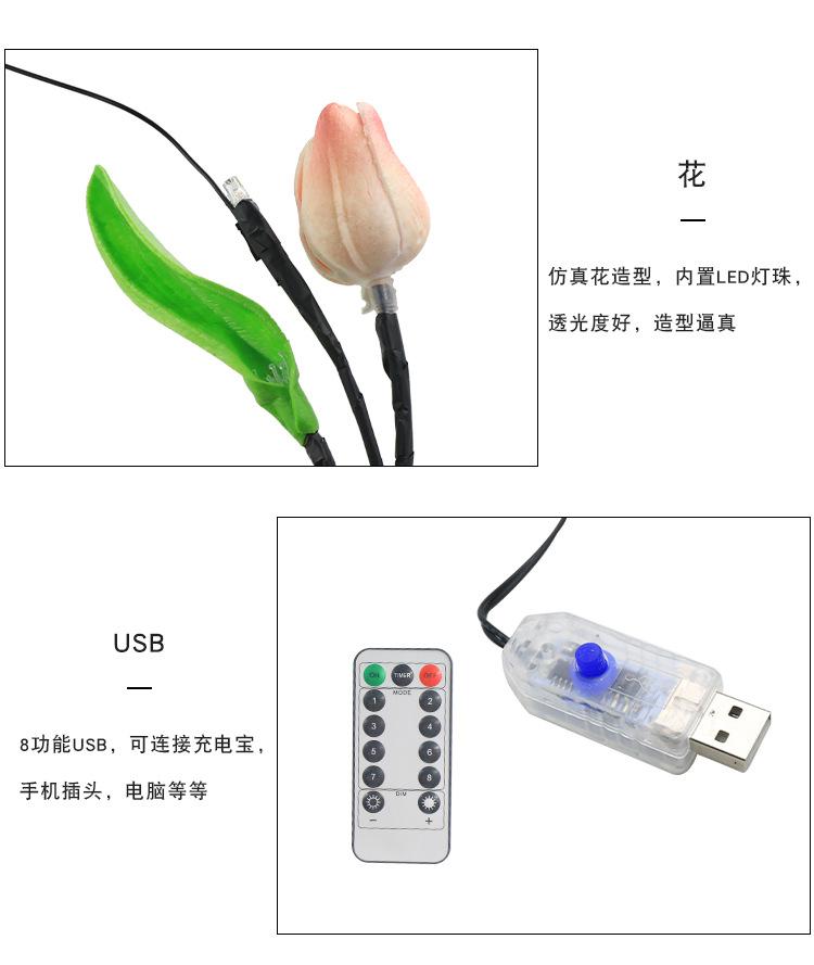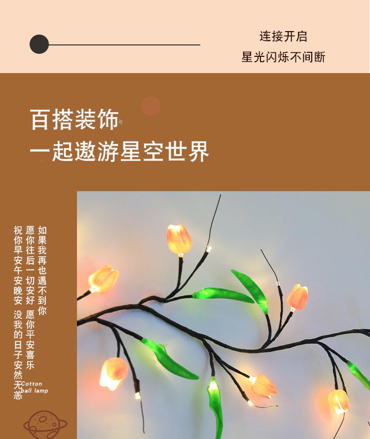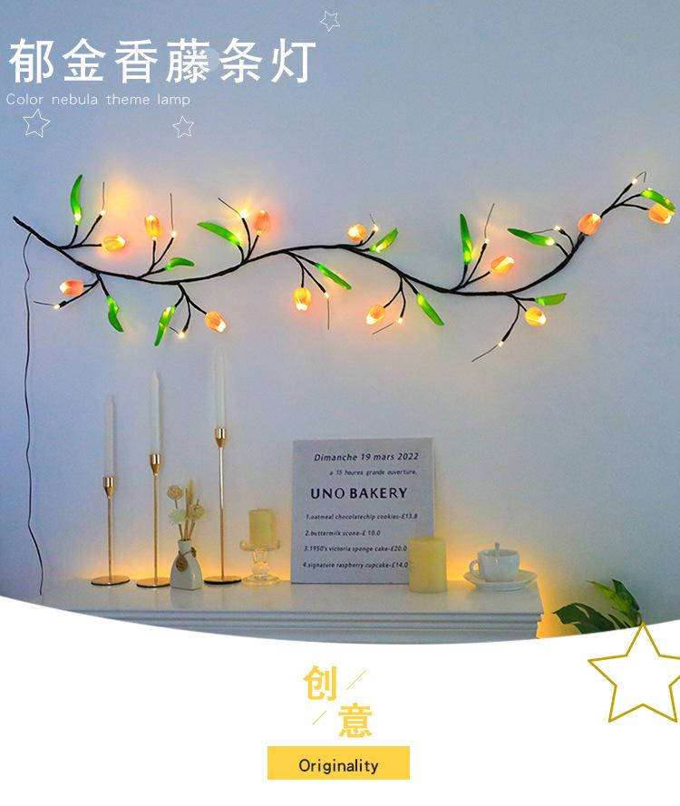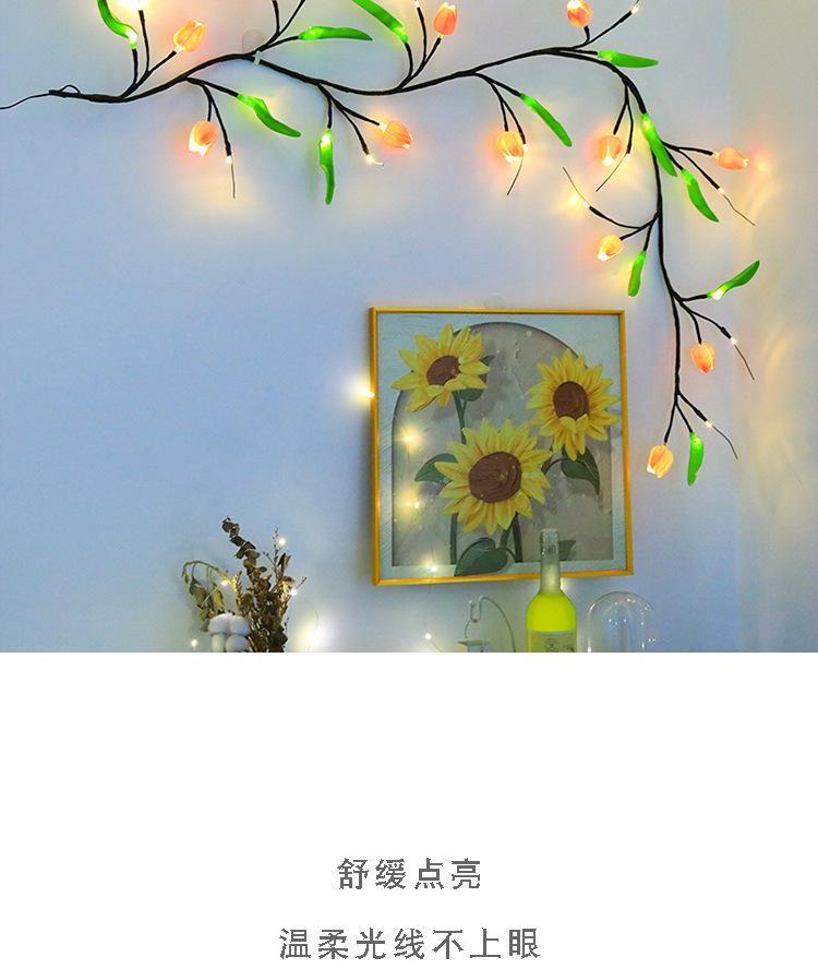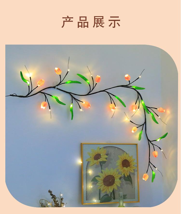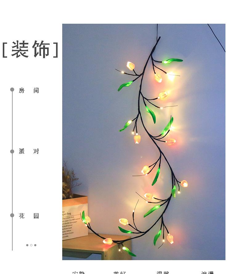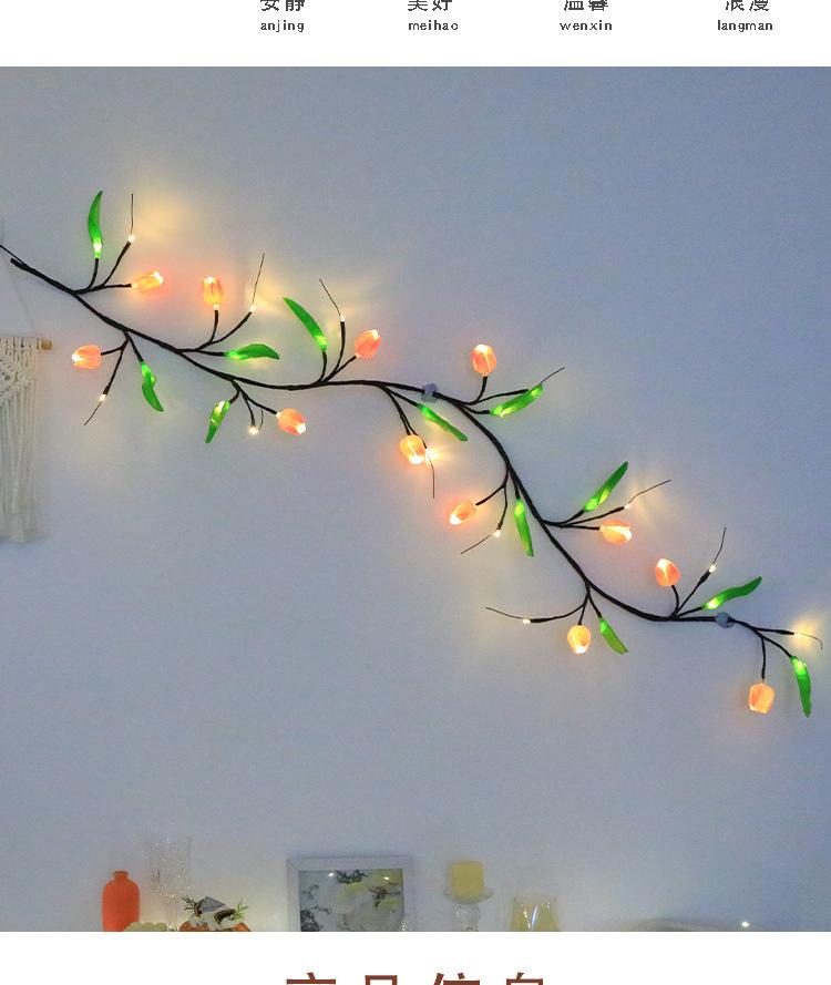 Linterna Luminosa de Regalo Transfronteriza Decoración Navideña de Ratan Árbol de Navidad Arreglo Decoración de Interior Lámpara de Rama Tulipán