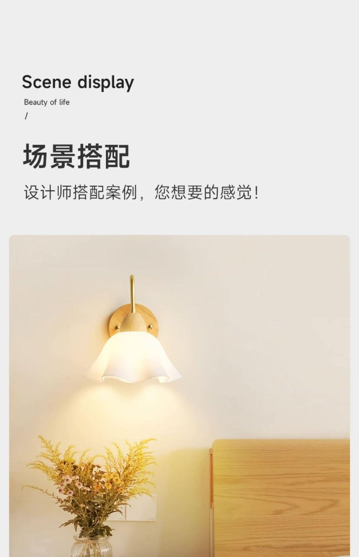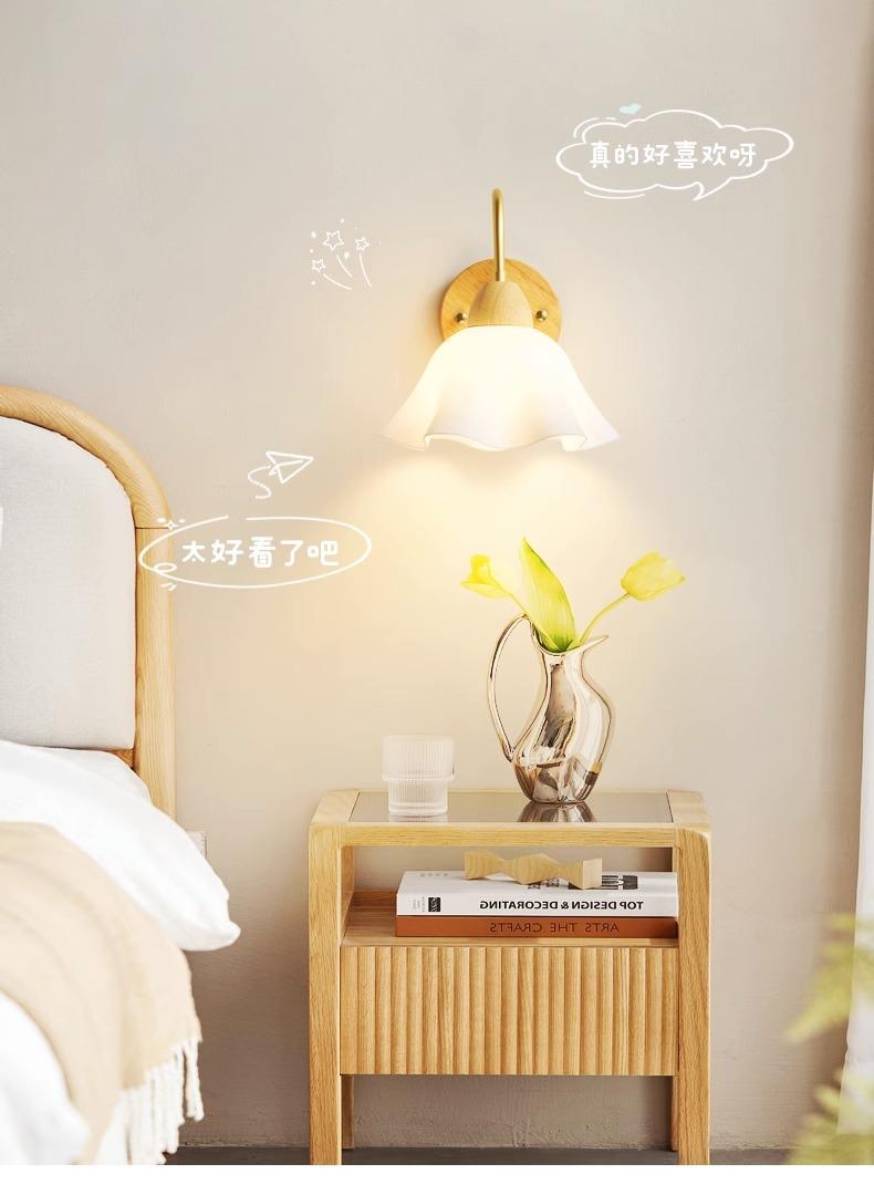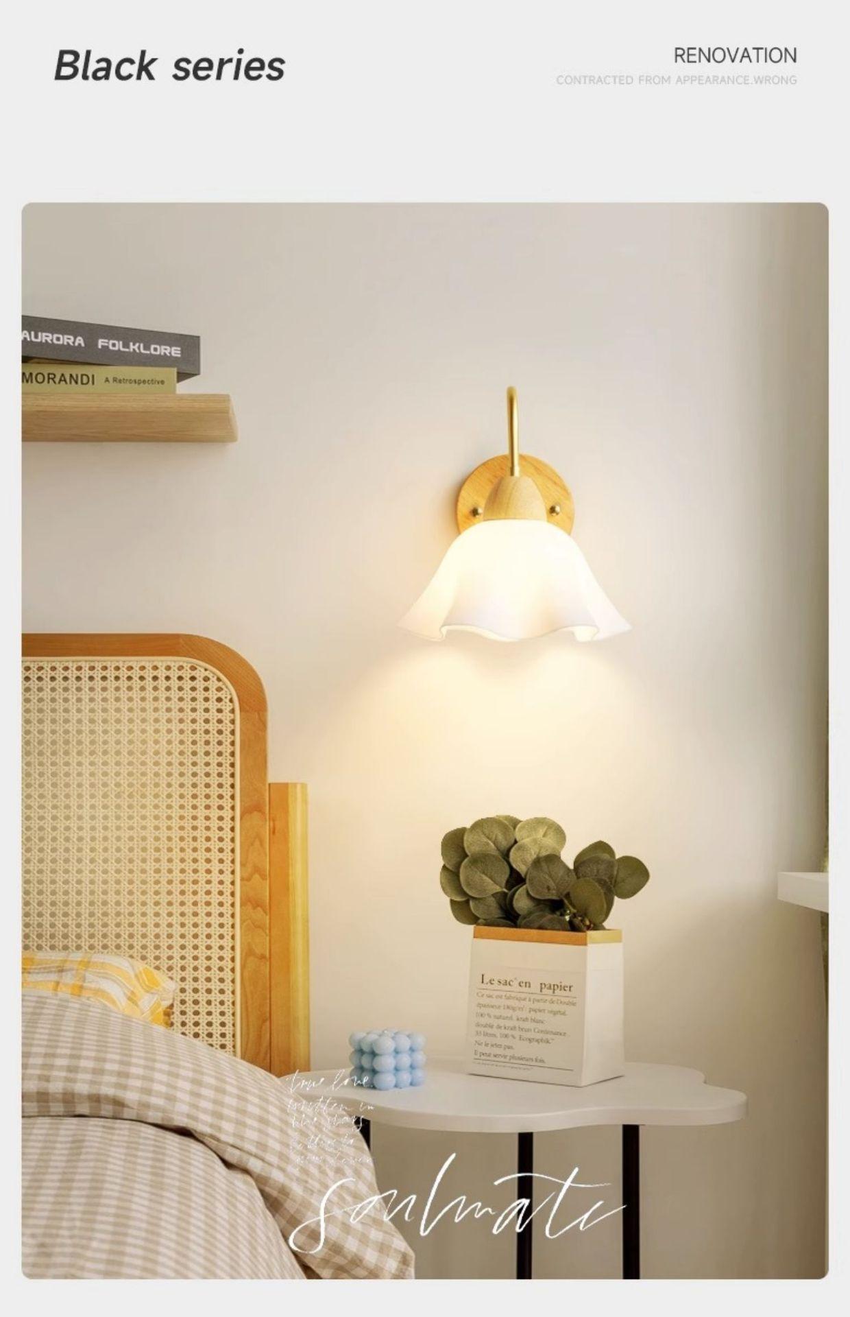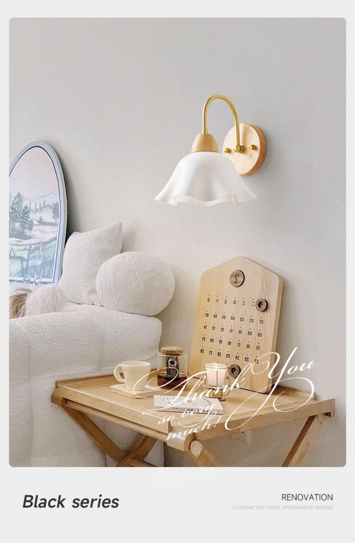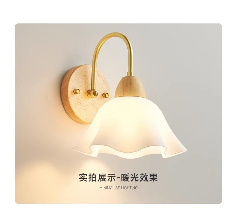 Lámpara de pared para dormitorio, estilo tronco nórdico, lámpara de pared de fondo para sala de estar, lámpara de pasillo con flores creativas, lámpara de pared de noche estilo crema