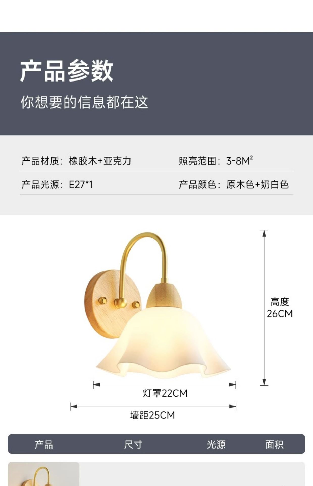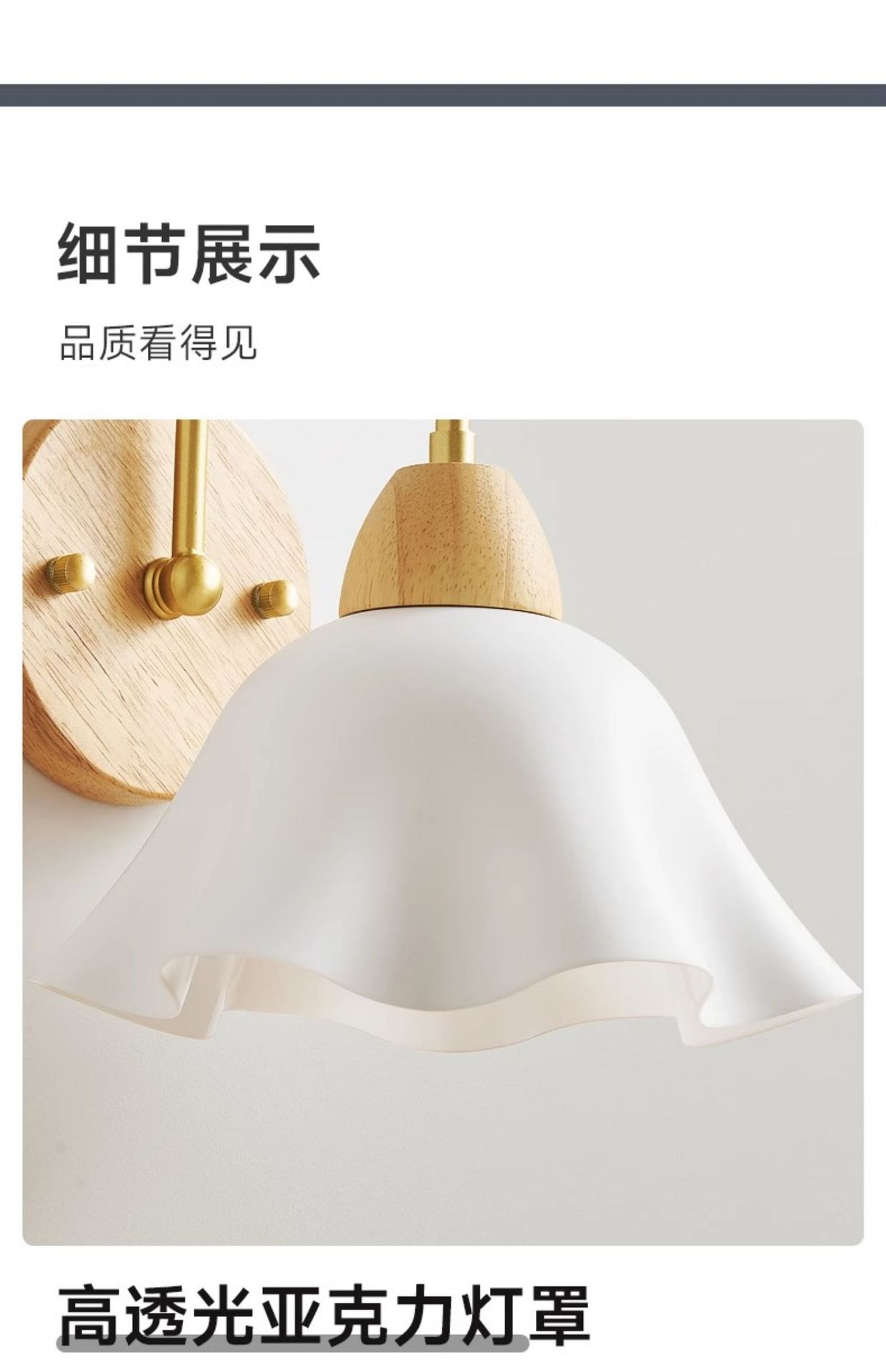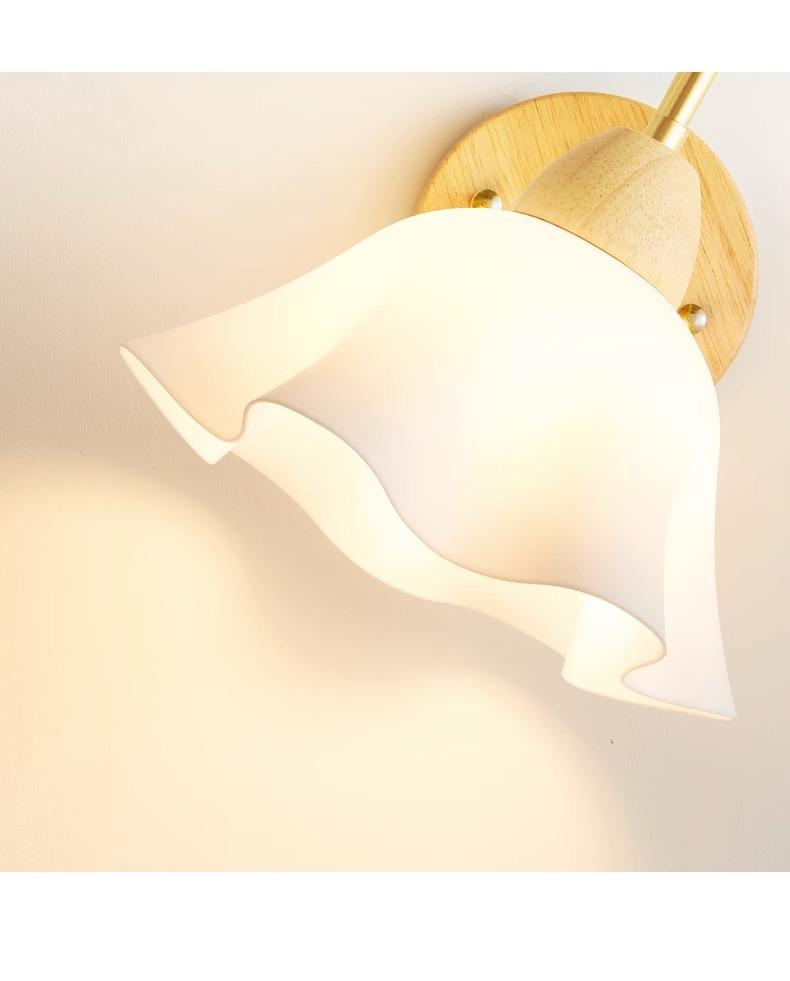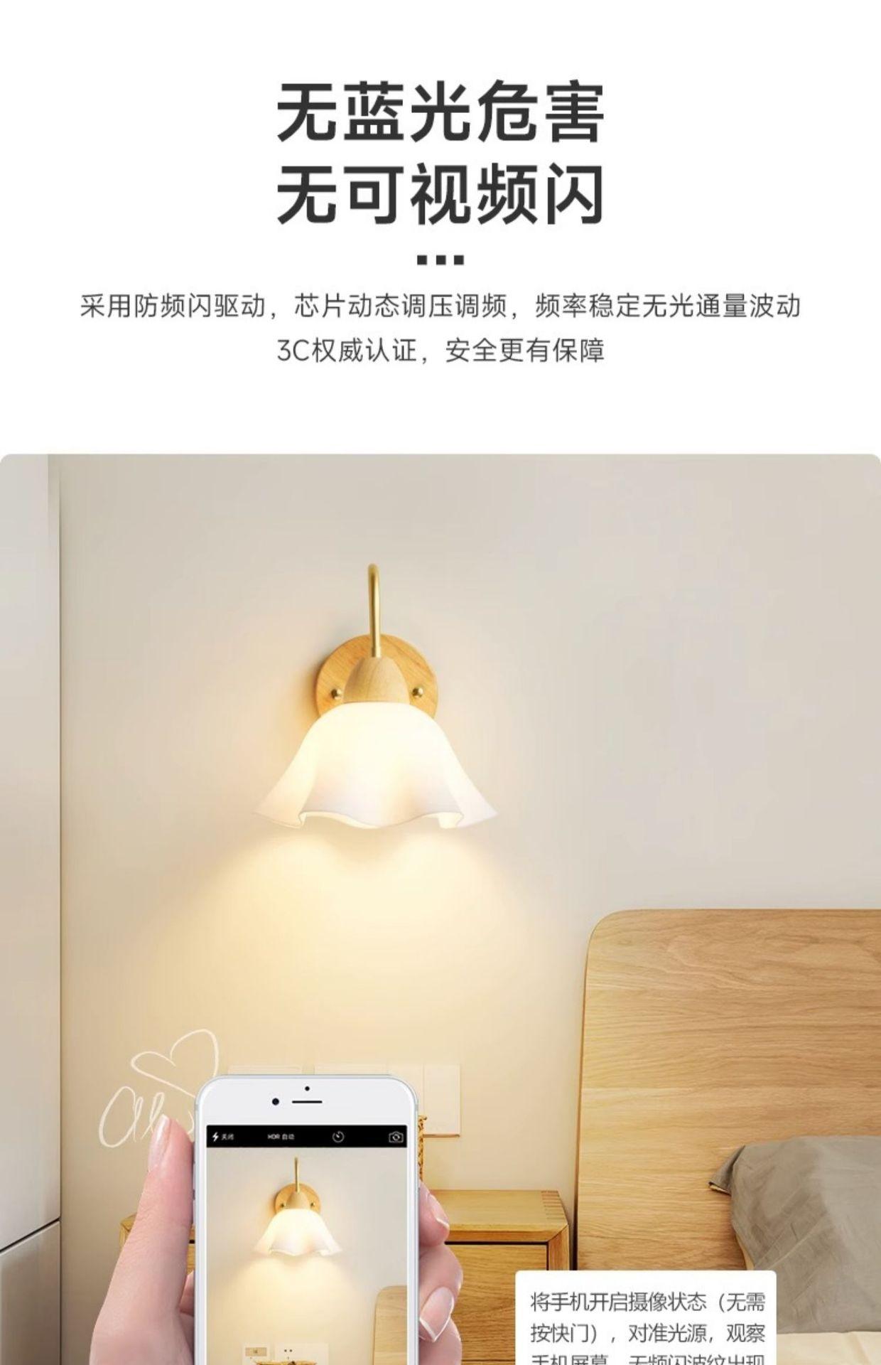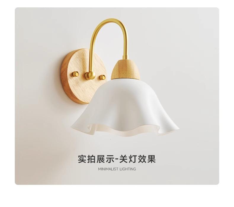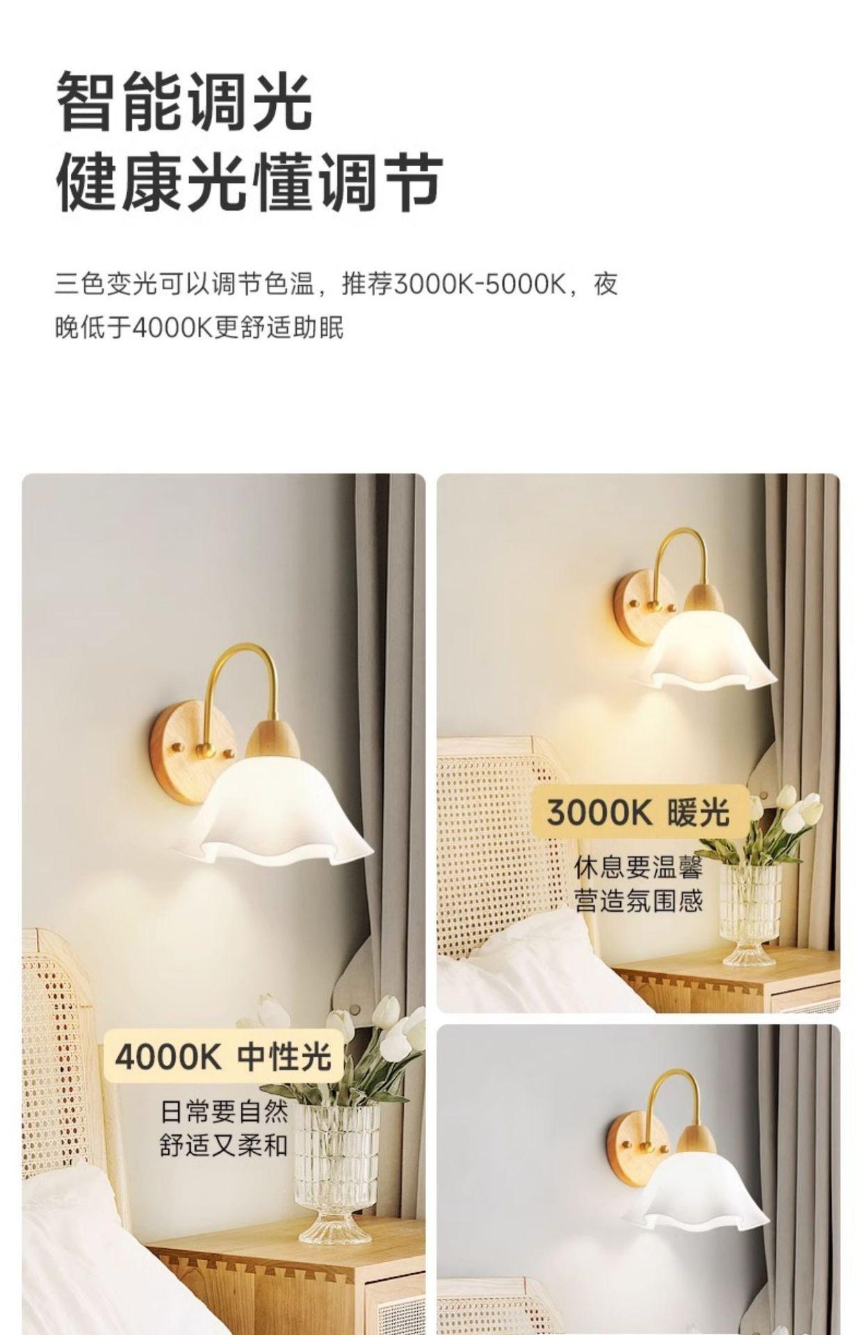 Lámpara de pared para dormitorio, estilo tronco nórdico, lámpara de pared de fondo para sala de estar, lámpara de pasillo con flores creativas, lámpara de pared de noche estilo crema