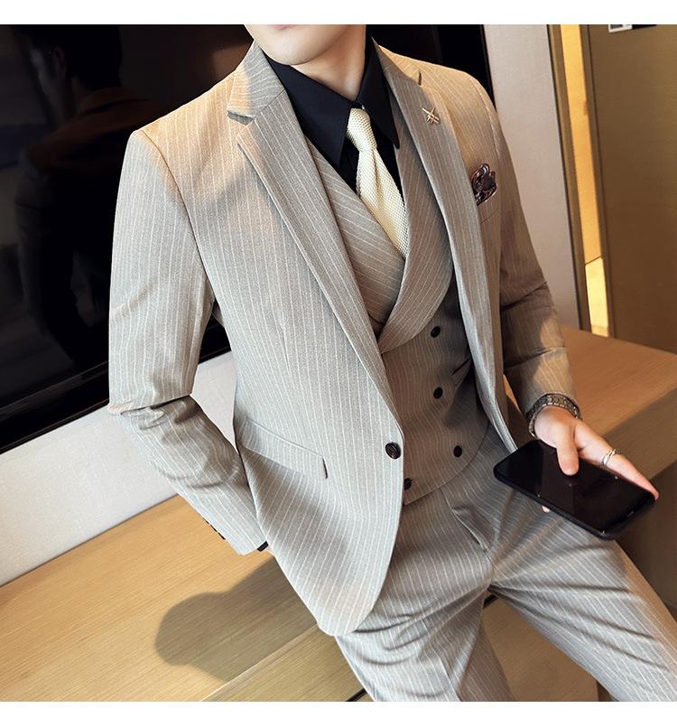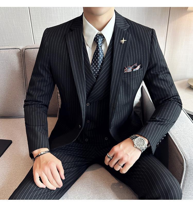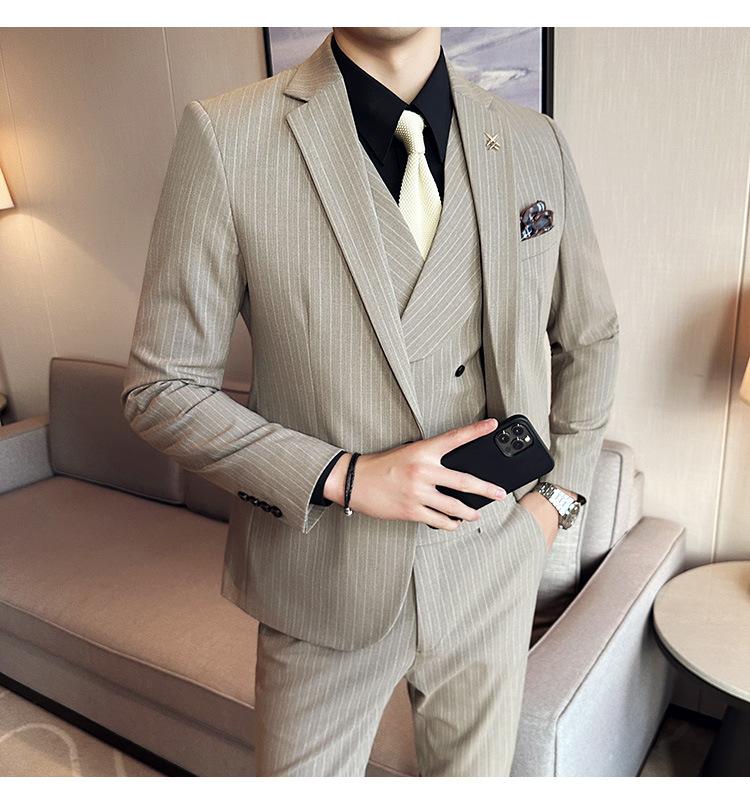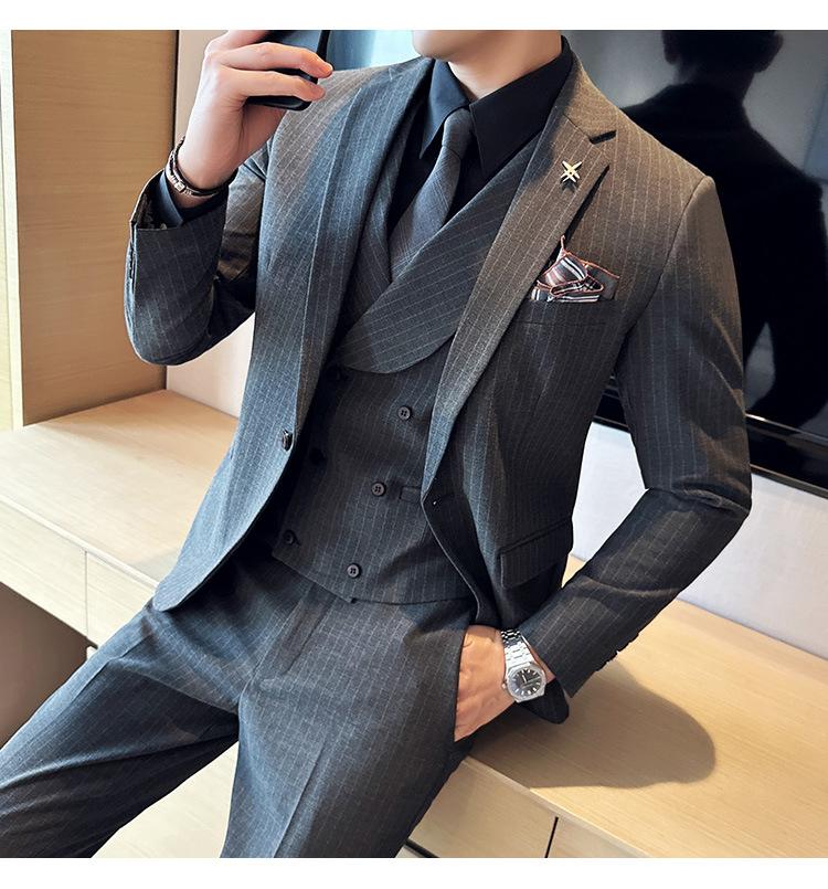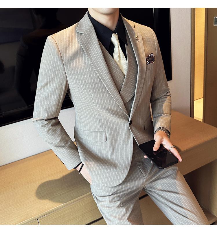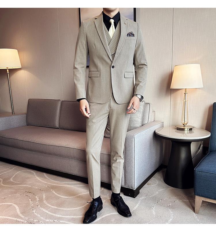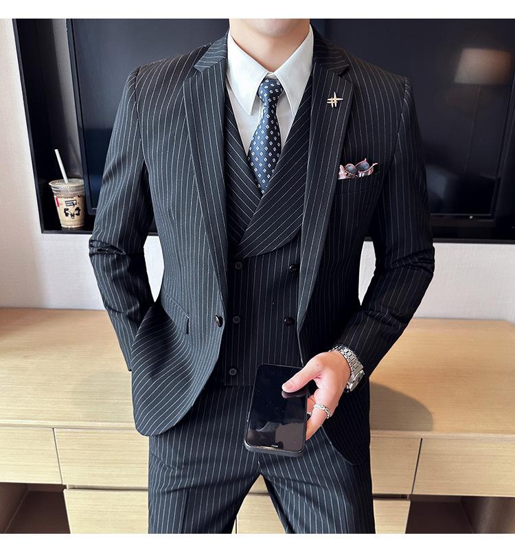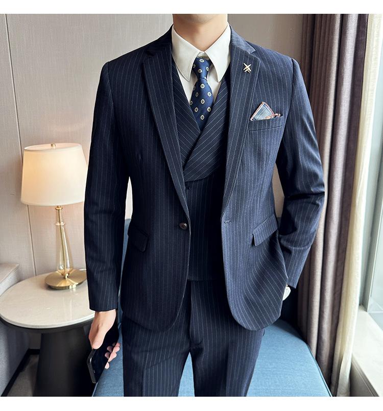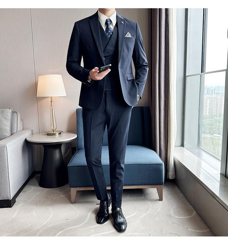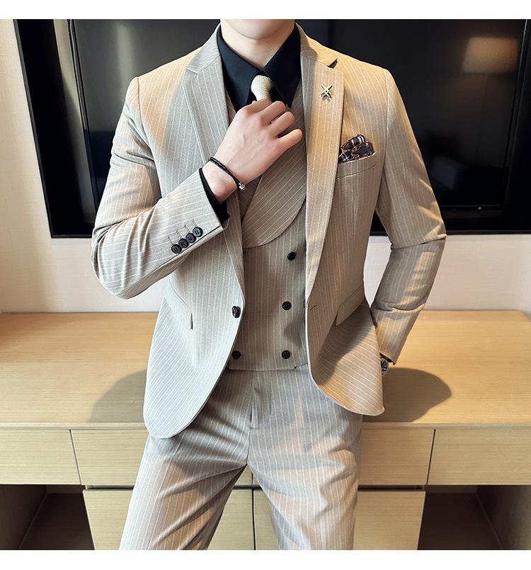 Traje de otoño 2023 para hombre, nuevo traje de tres piezas de estilo coreano para jóvenes, traje informal de negocios a rayas, traje ajustado para hombre