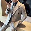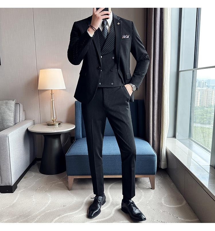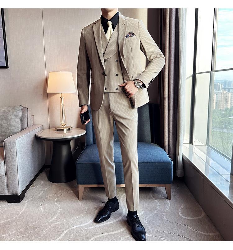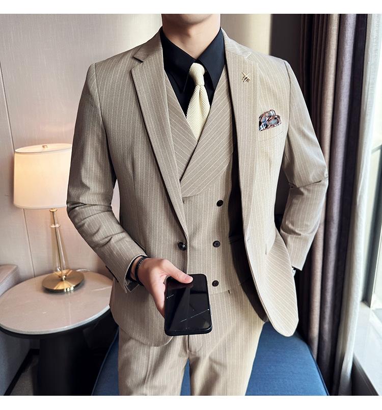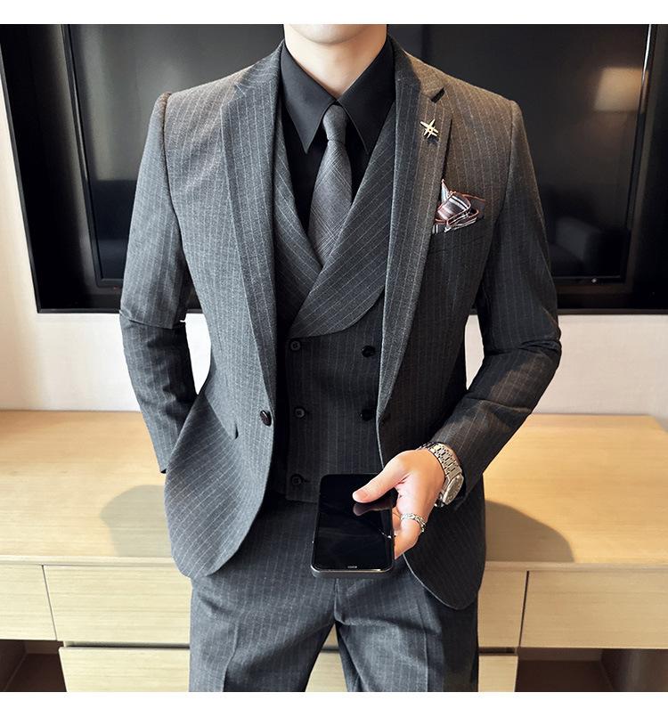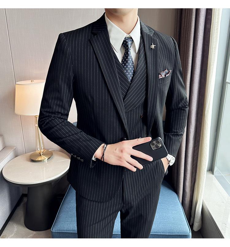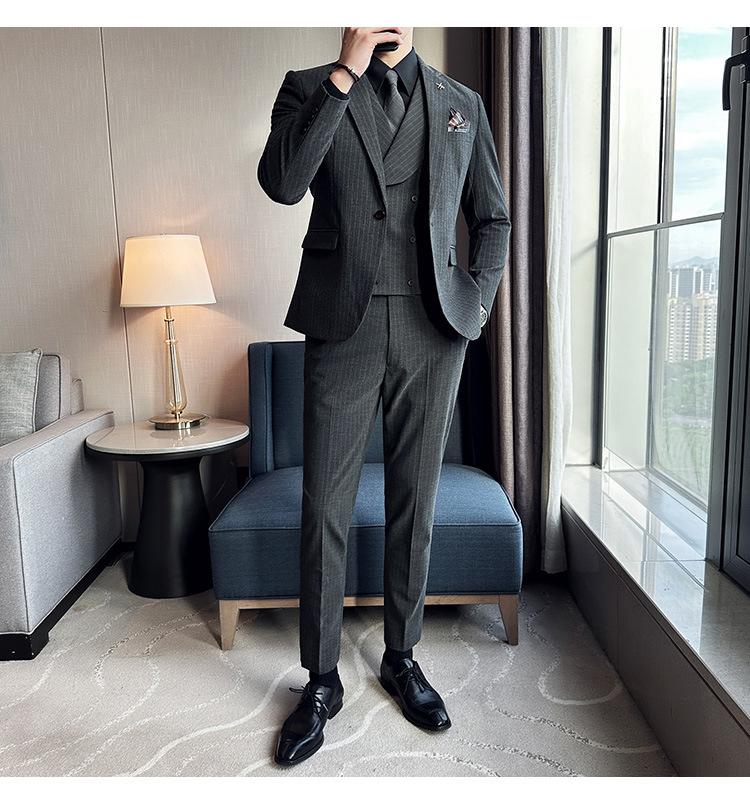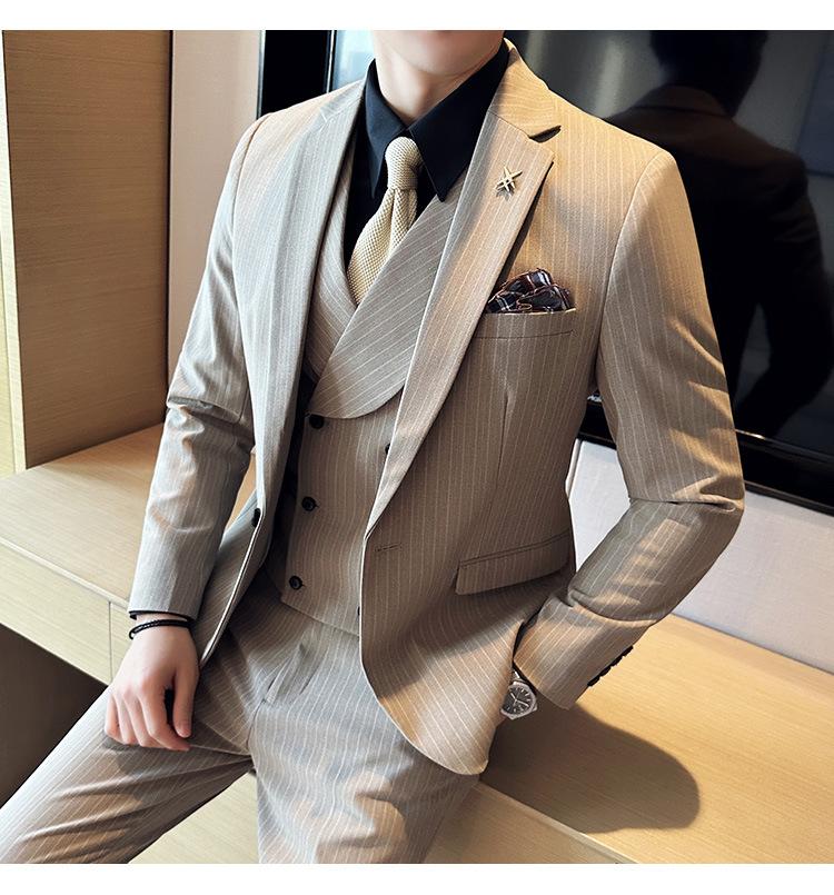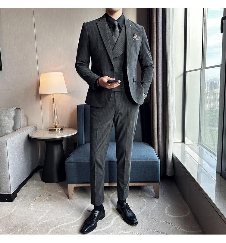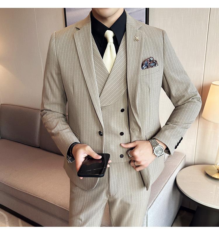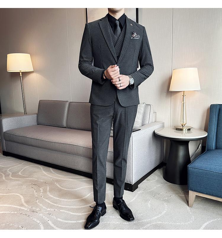 Traje de otoño 2023 para hombre, nuevo traje de tres piezas de estilo coreano para jóvenes, traje informal de negocios a rayas, traje ajustado para hombre