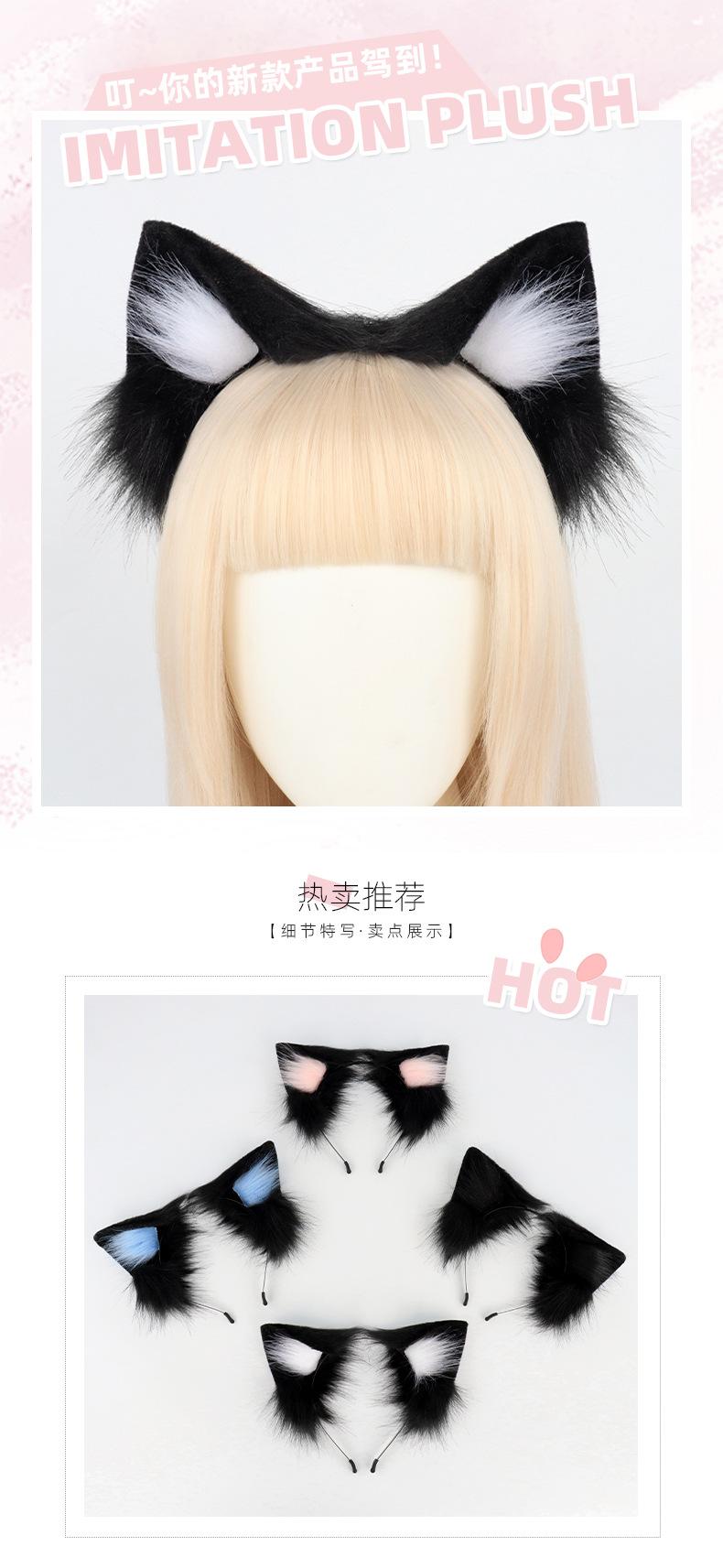 Lindo Tocado de Orejas de Gato Hecho a Mano de Felpa Orejas de Gato Diadema cosplay Piel de Zorro Orejas de Bestia Decoración Comic-Con