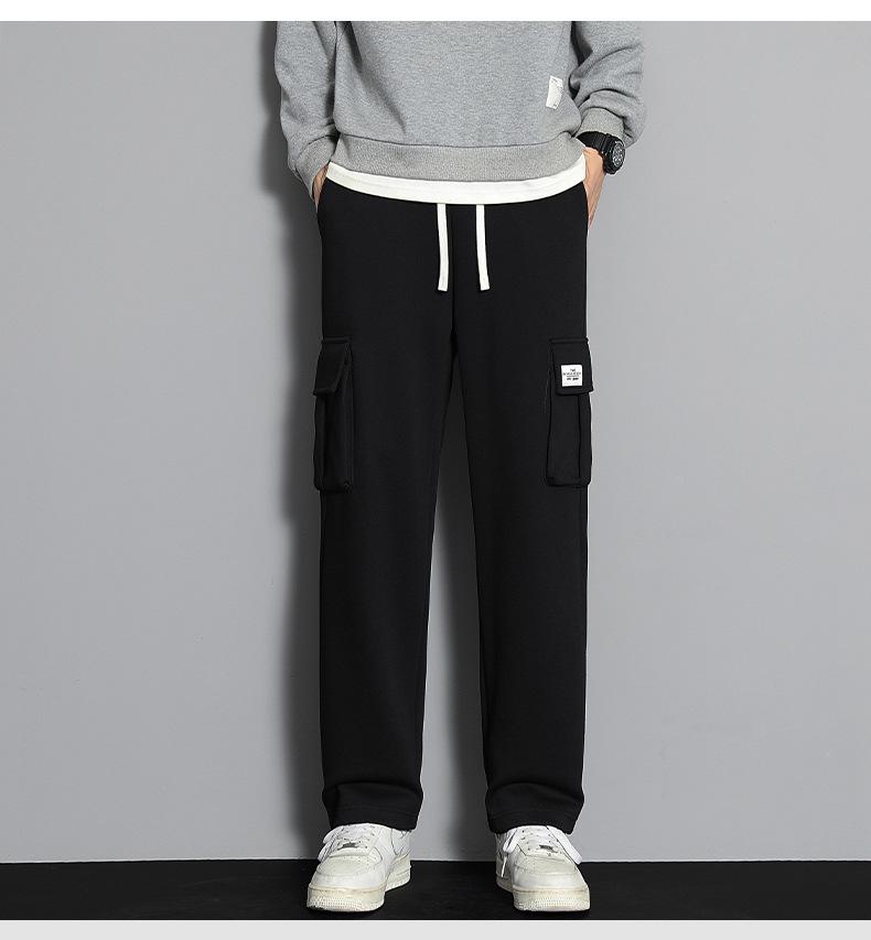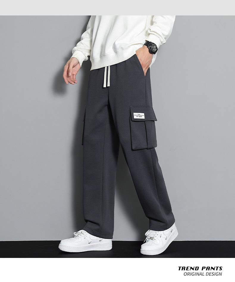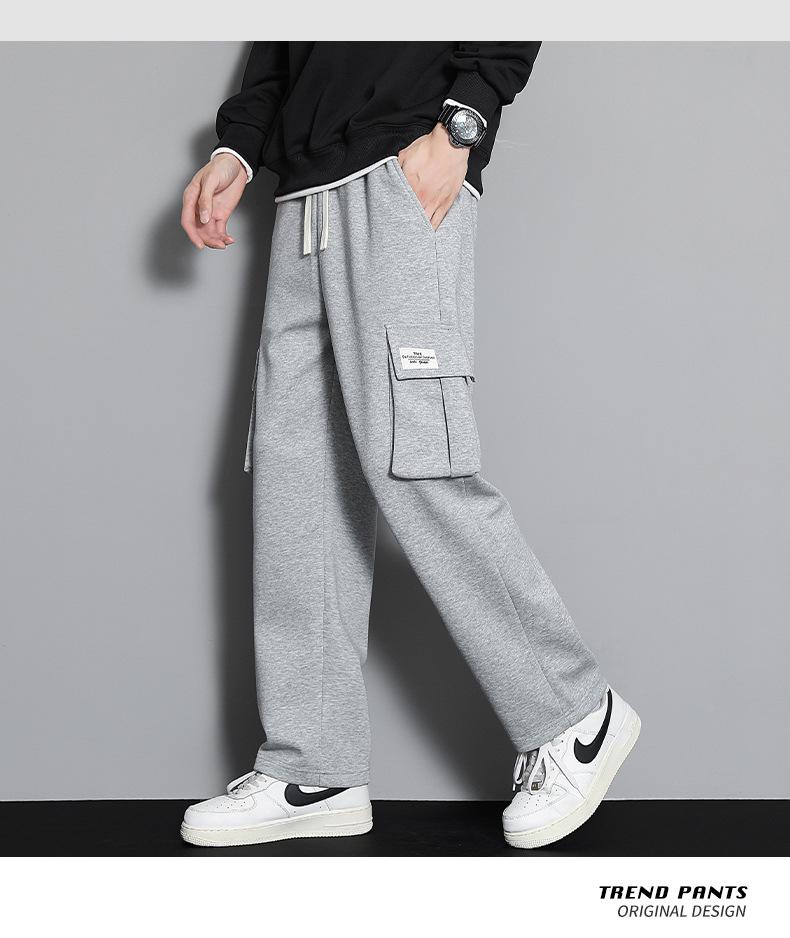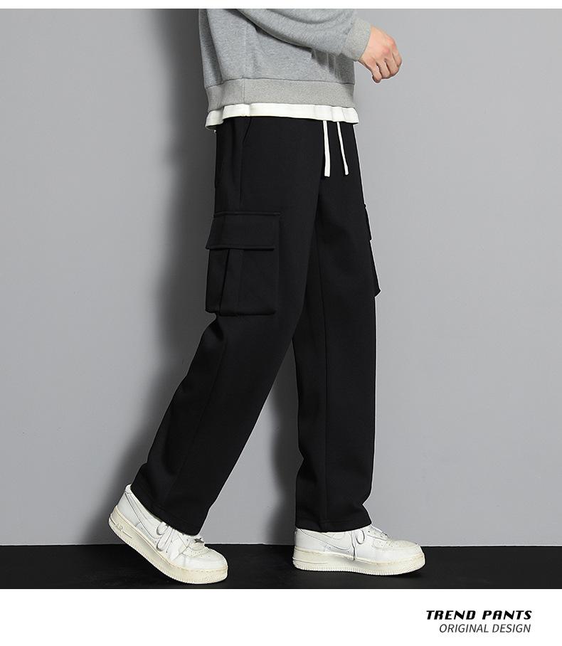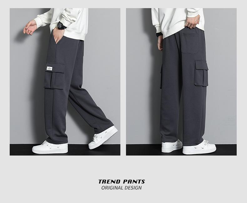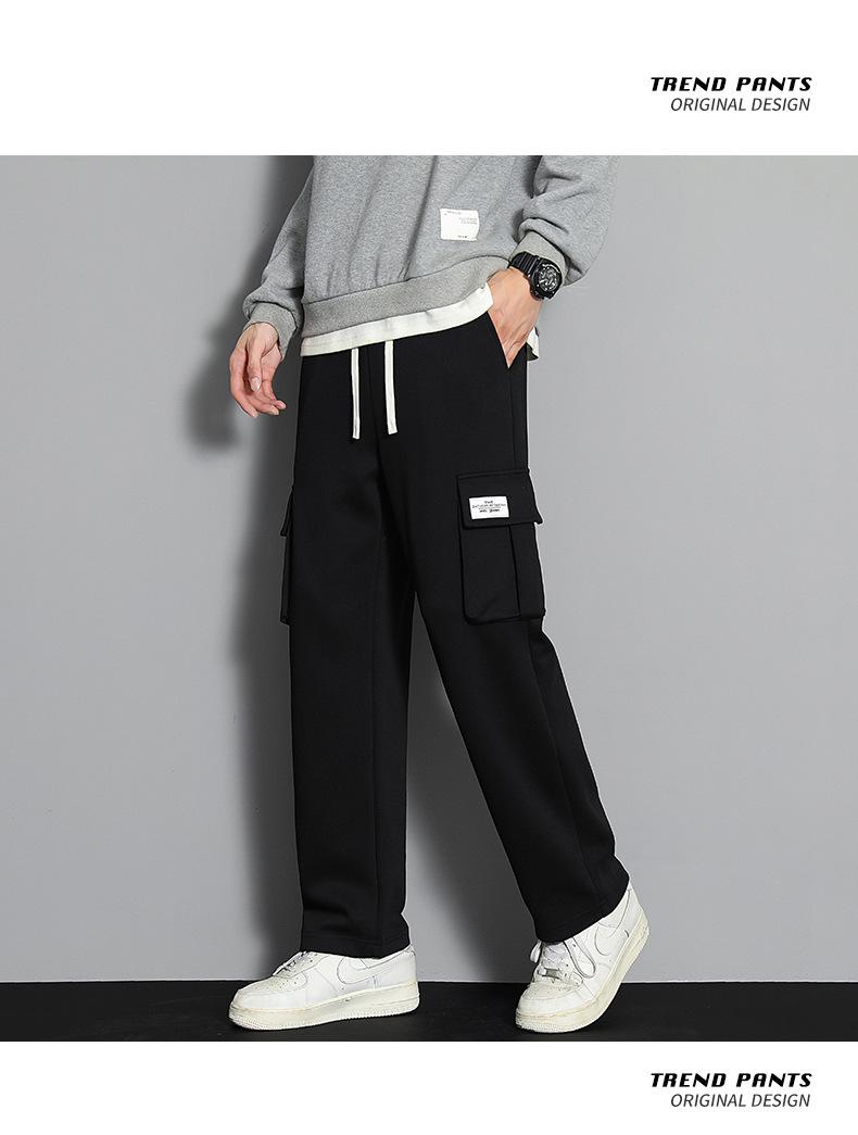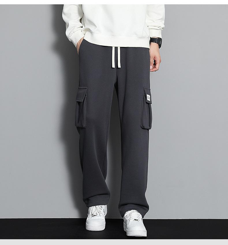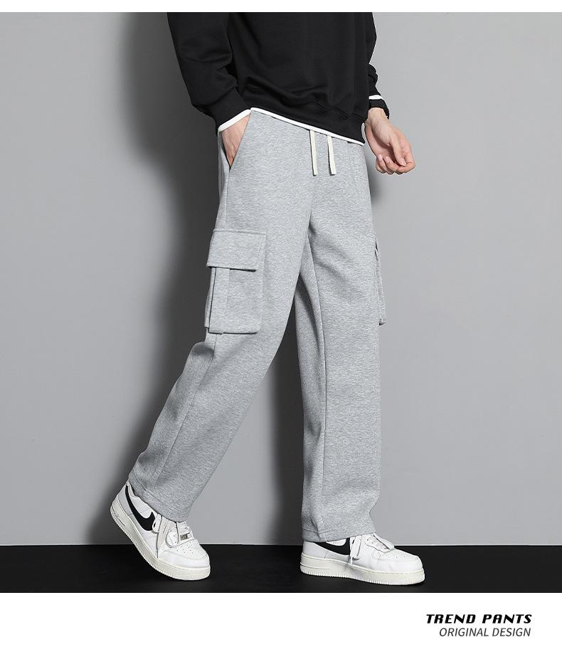 2023 pantalones deportivos rectos pantalones casuales para hombre otoño e invierno con forro polar pantalones gruesos moda coreana holgados planos deportivos pantalones de moda
