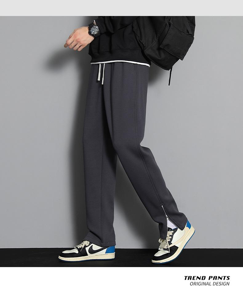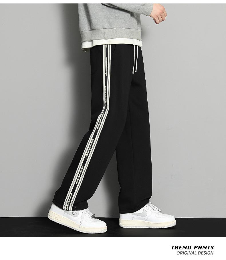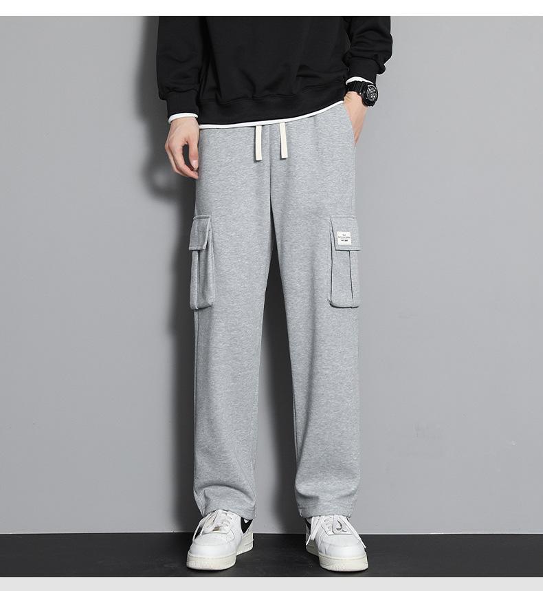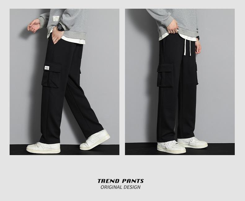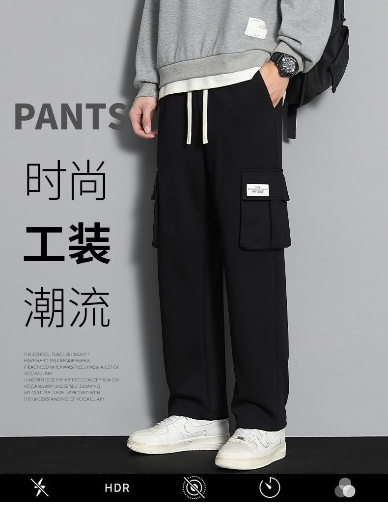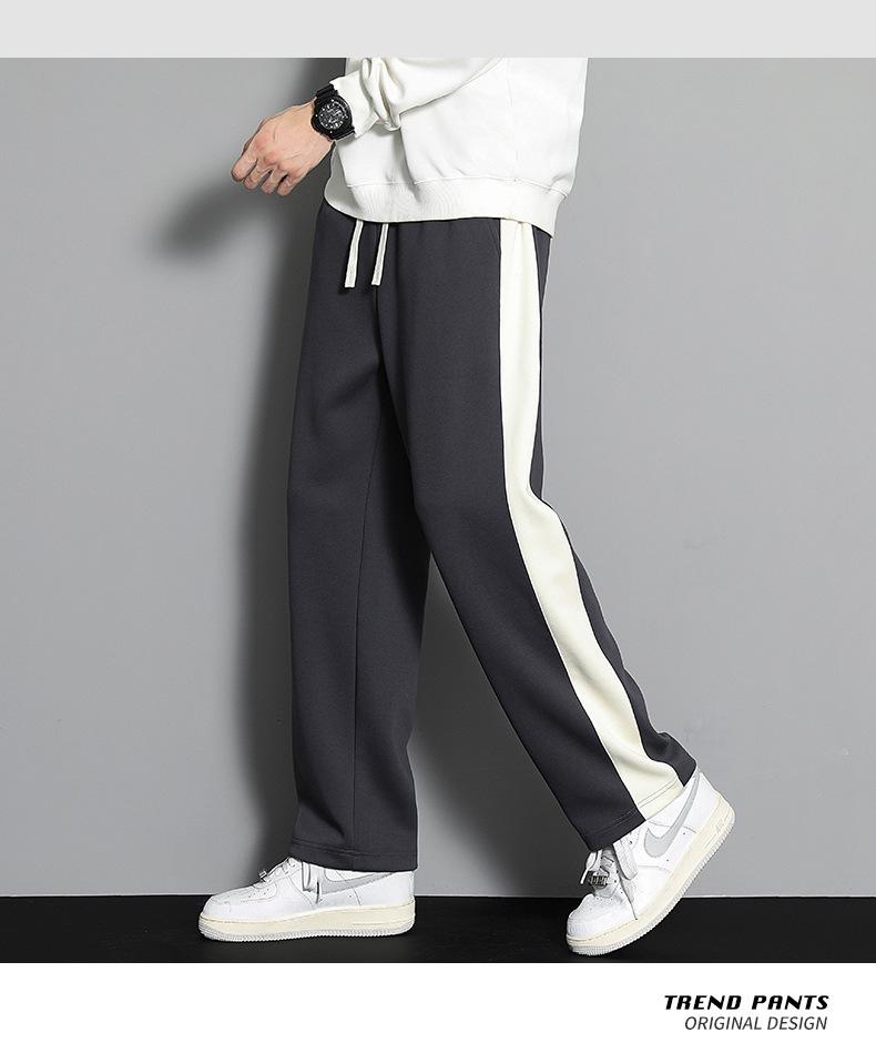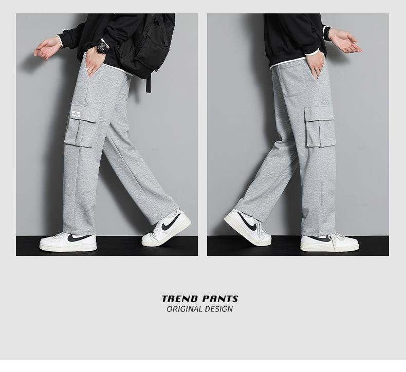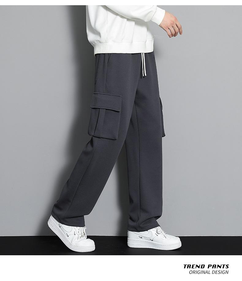 2023 pantalones deportivos rectos pantalones casuales para hombre otoño e invierno con forro polar pantalones gruesos moda coreana holgados planos deportivos pantalones de moda