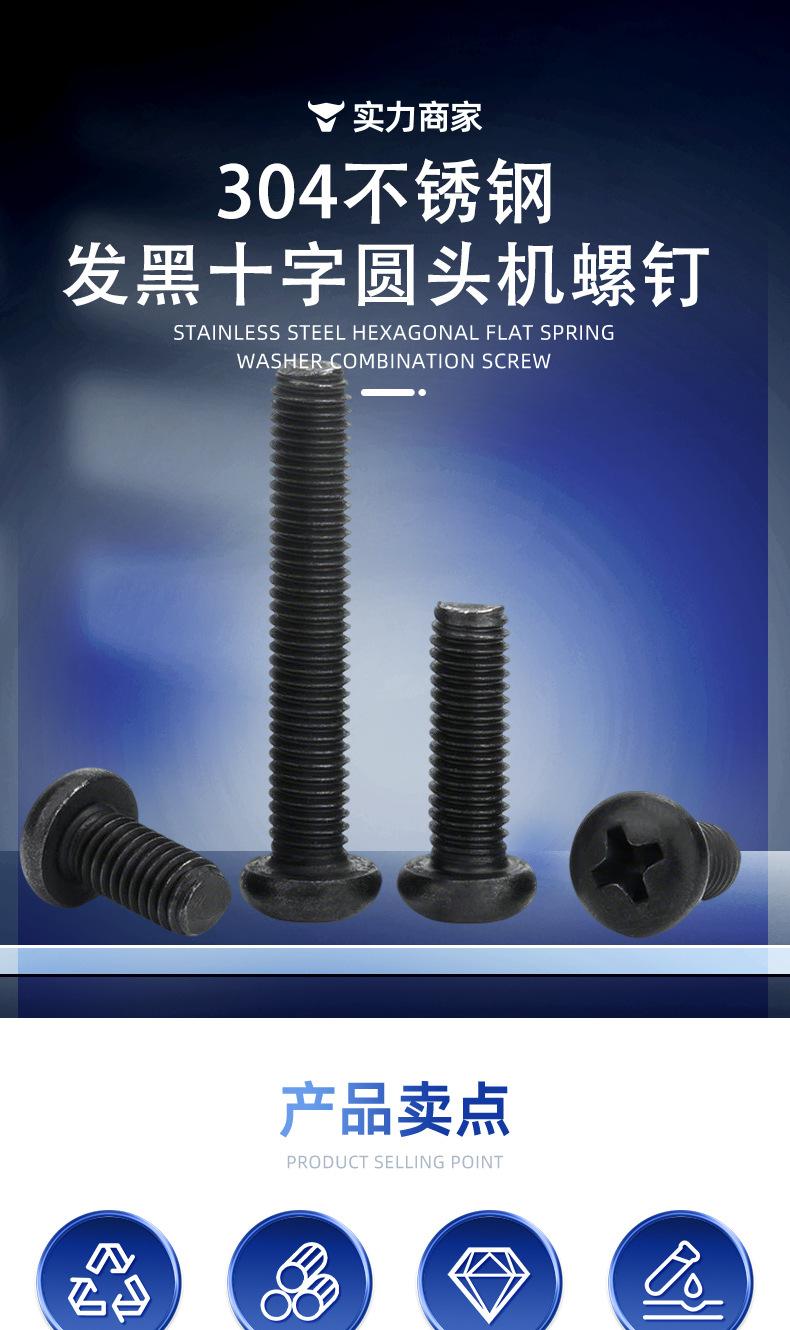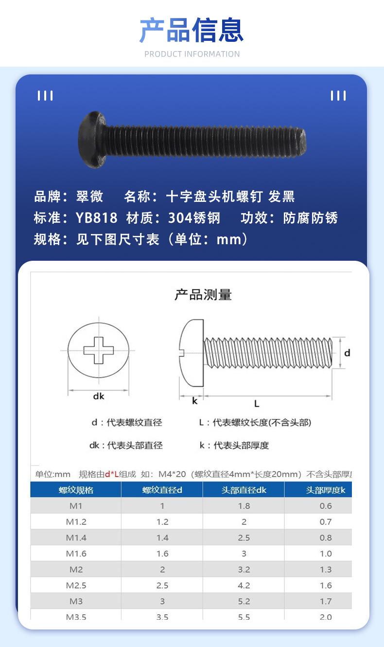 Tornillos Phillips de Cabeza Redonda de Acero Inoxidable 304 Ennegrecido YB818 Tornillos de Máquina Phillips de Cabeza Panorámica Negros M2M3-M10 Tornillos de Máquina