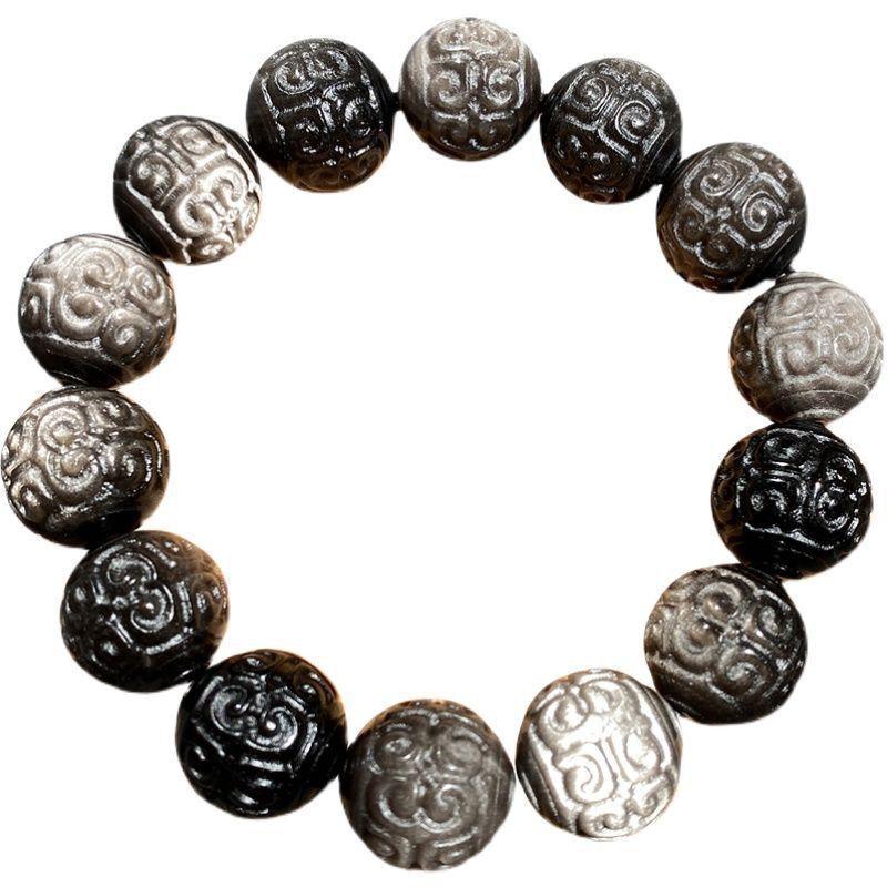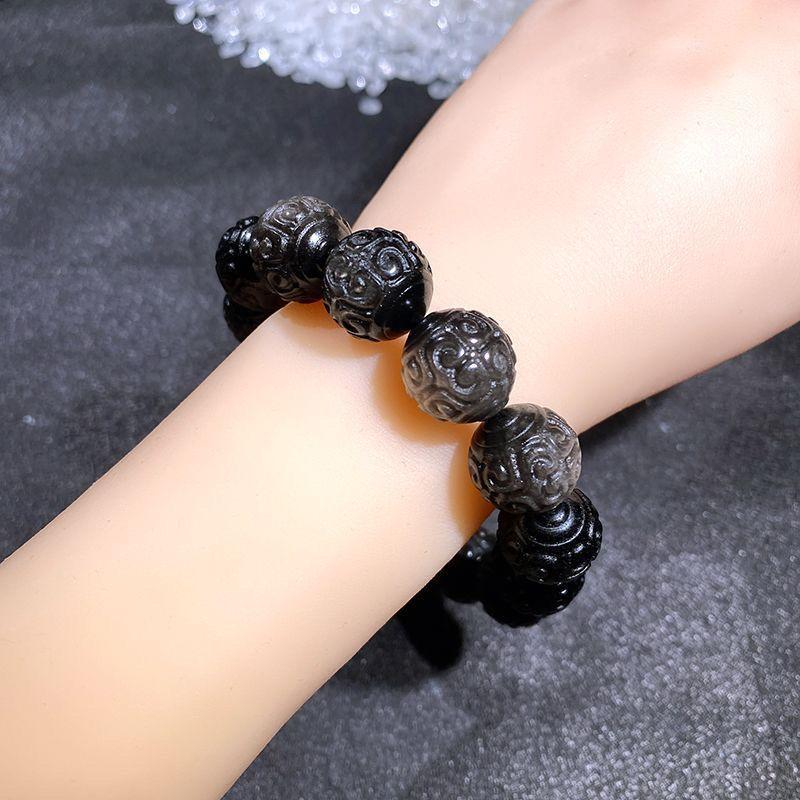 Natural silver obsidian bead bracelet full of single-turn bracelet beads diameter about 15-16mm (14 beads)
