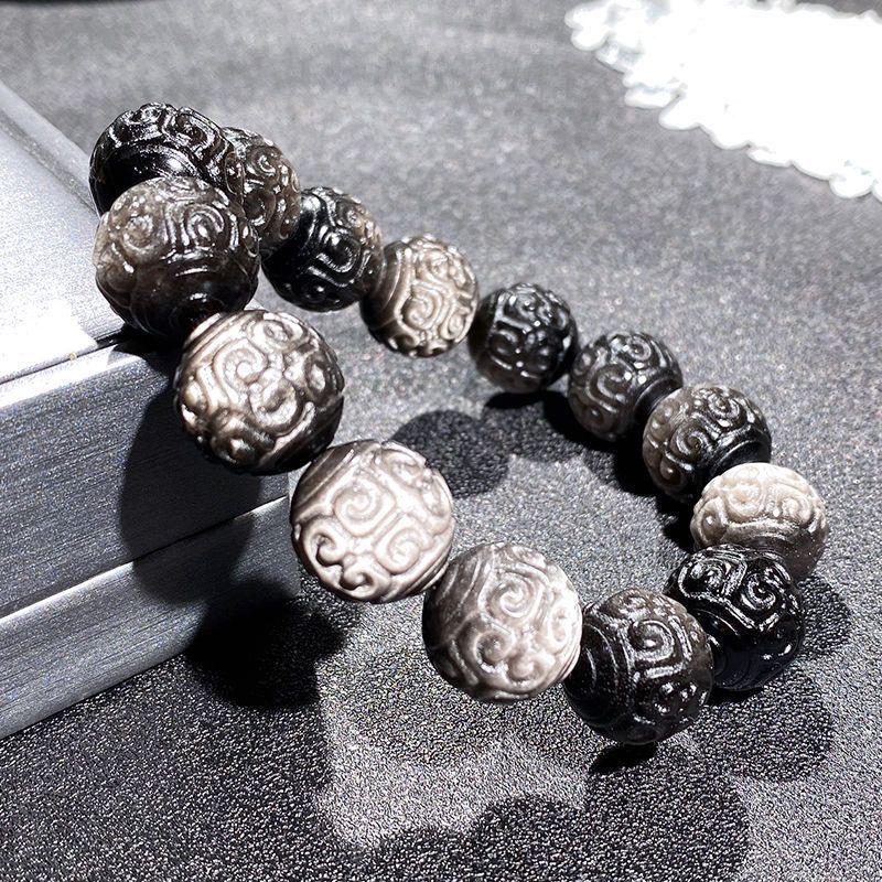 Pulsera de Cuentas de Obsidiana Plateada Natural con Remolino Pulsera de Bucle Simple con Ojo Completo Obsidiana Negra
