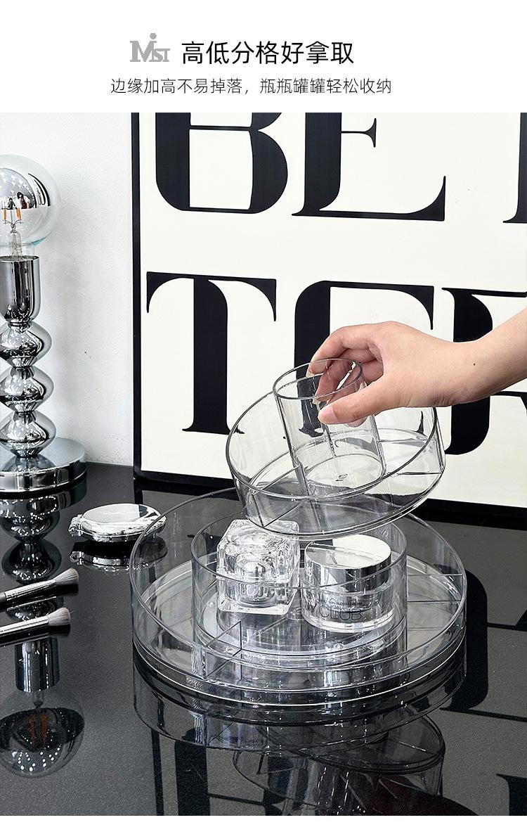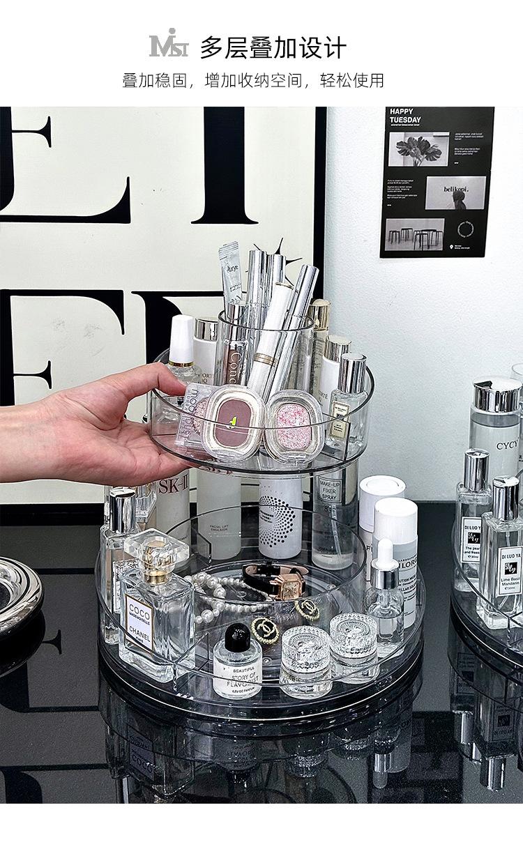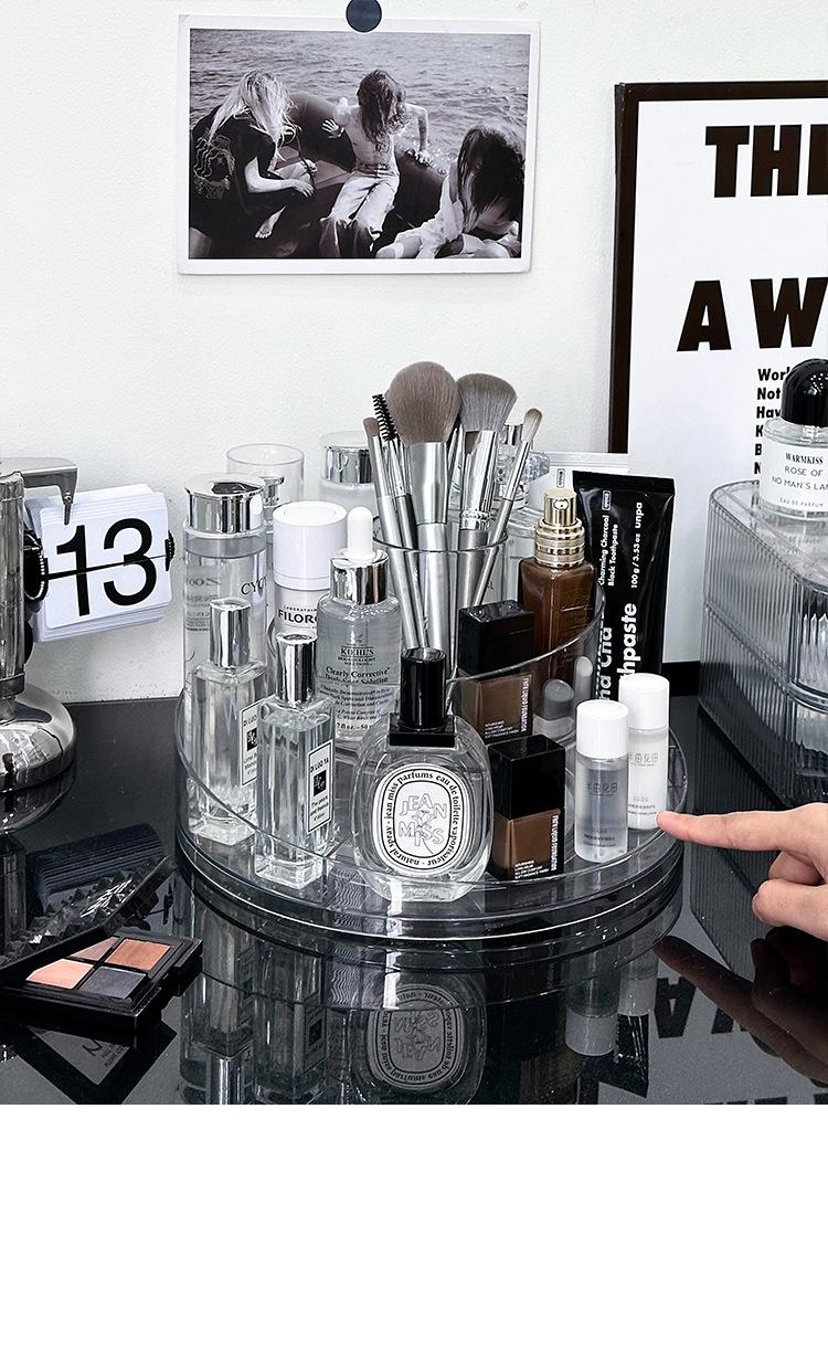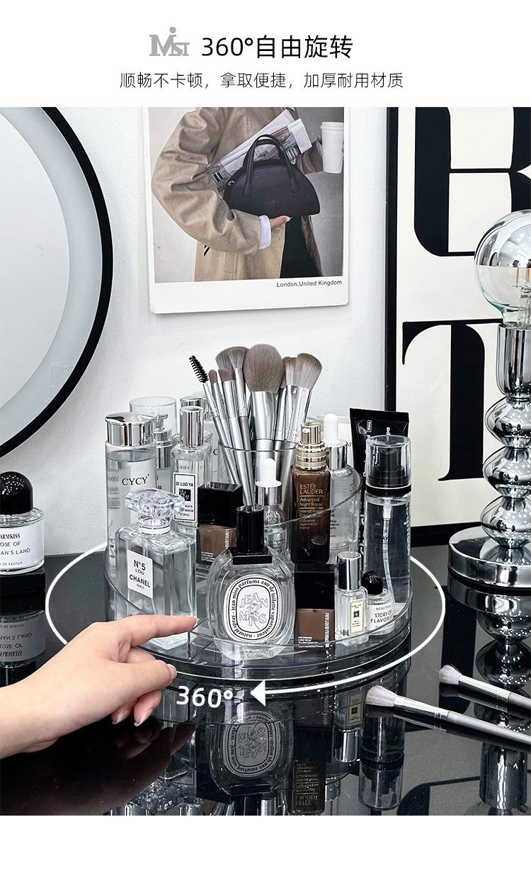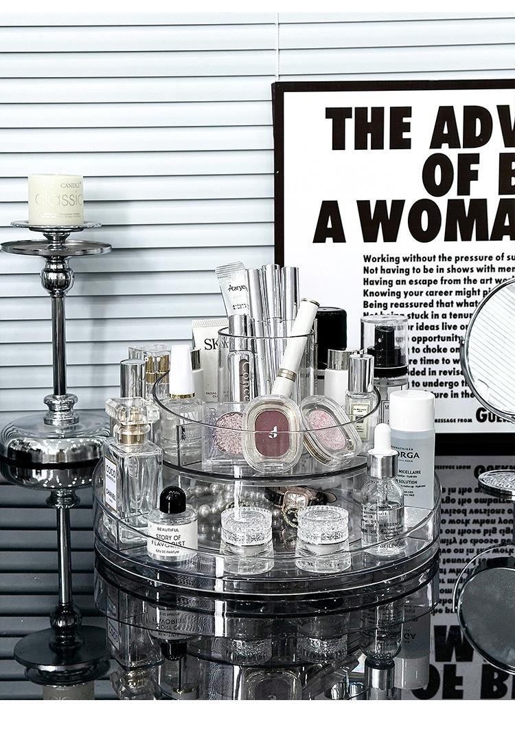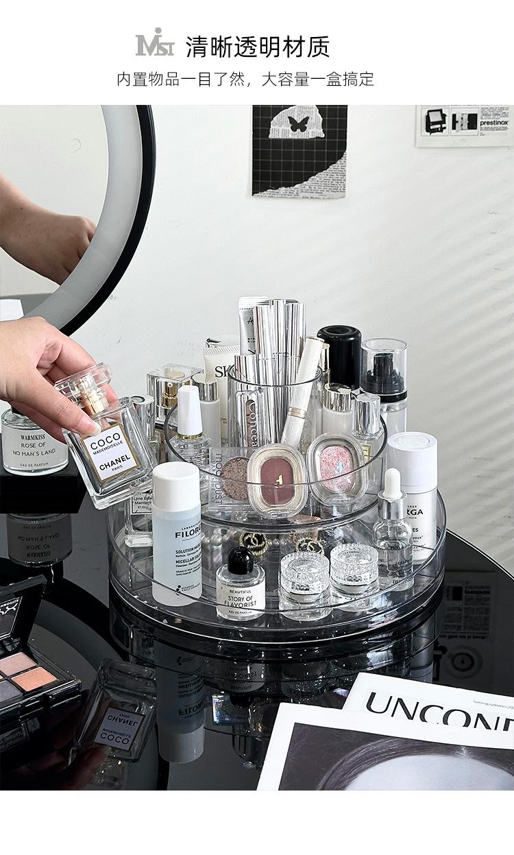 Tocador giratorio de acrílico para cosméticos, escritorio, cuidado de la piel, perfumes, caja de almacenamiento transparente