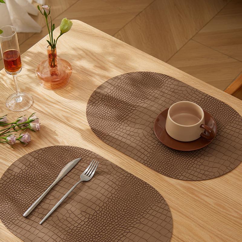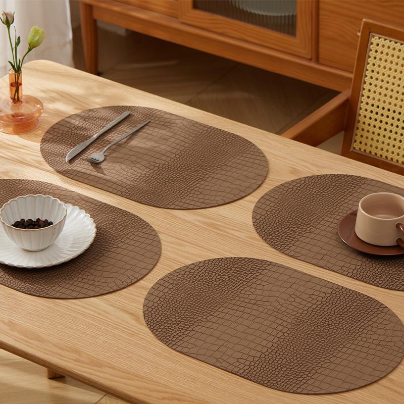 Mantel Individual de Cuero de Cocodrilo Estilo Simple de Lujo Ligero Alfombrilla Anti-Aceite y Anti-Manchas Alfombrilla para Mesa Alfombrilla Aislante de Calor Alfombrilla Caliente Alfombrilla para Tazón de Comida