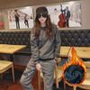 Conjunto afelpado y grueso para mujer 2025 nuevo otoño e invierno moda coreana top holgado deportivo pantalones harem conjunto de dos piezas moderno