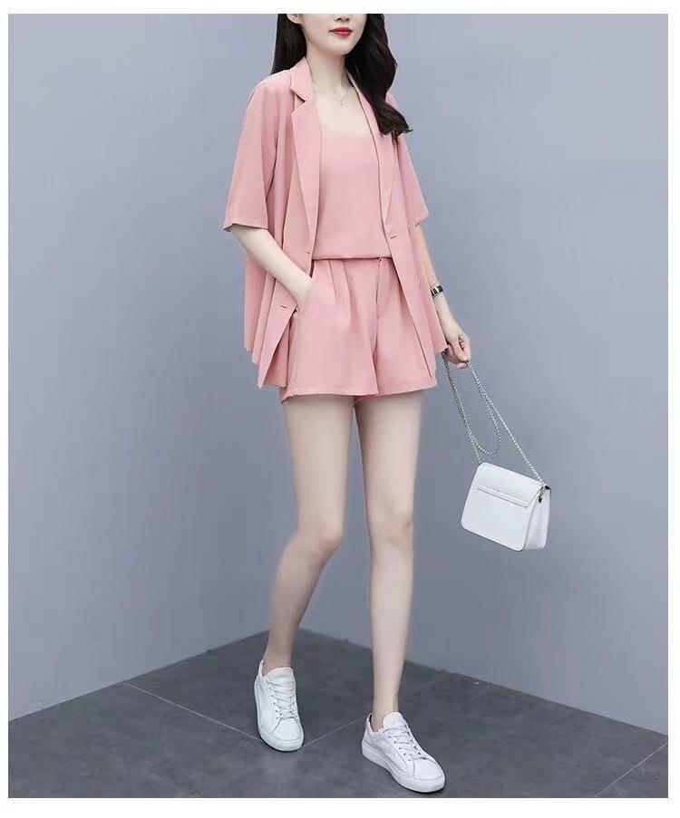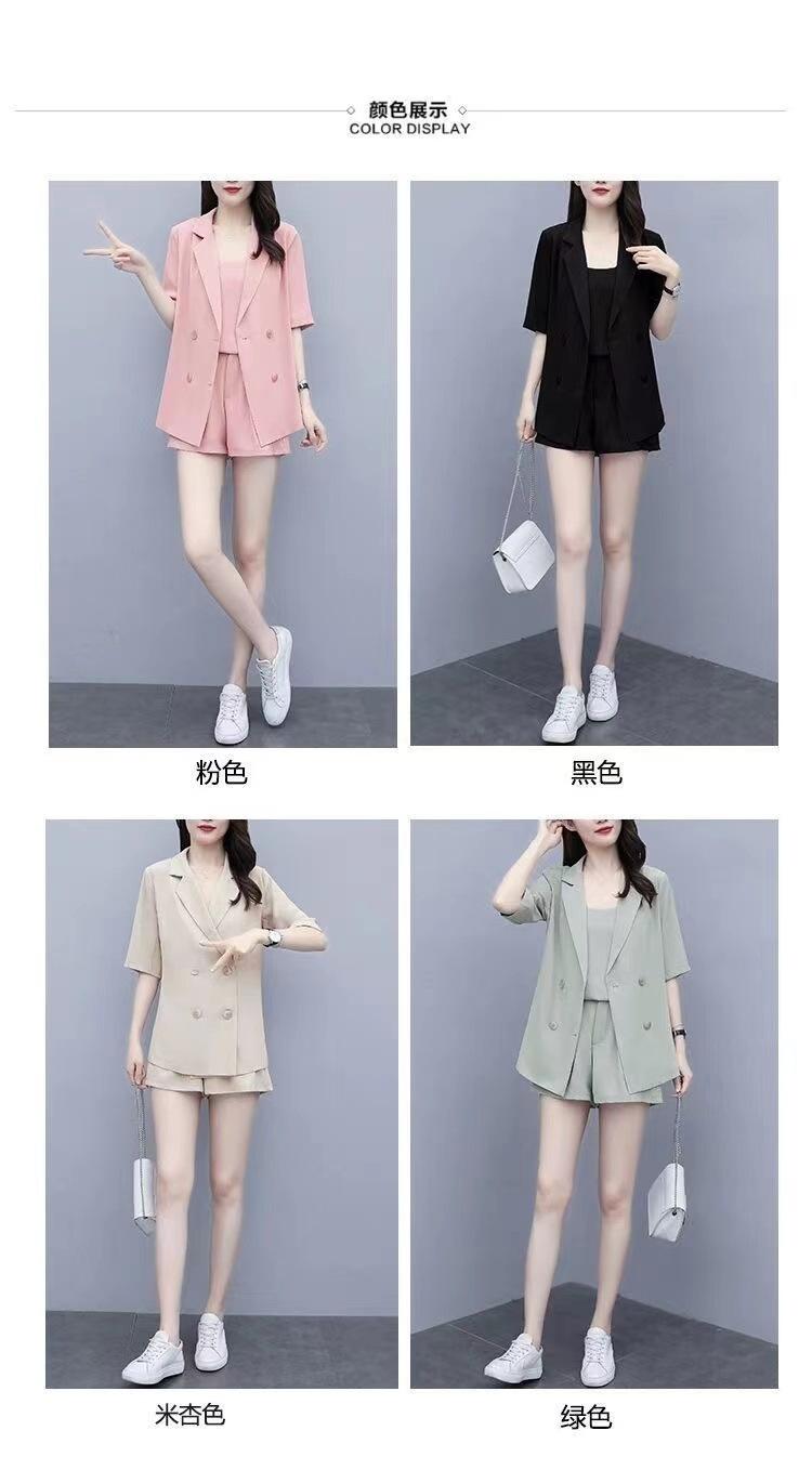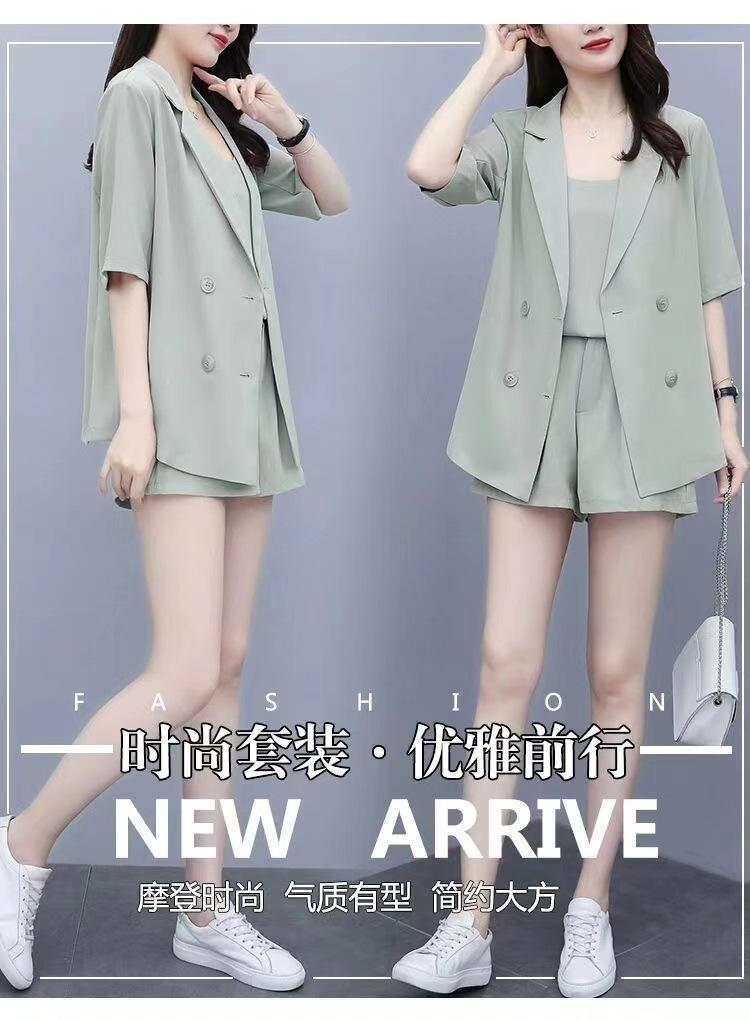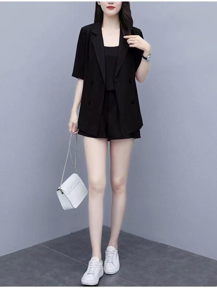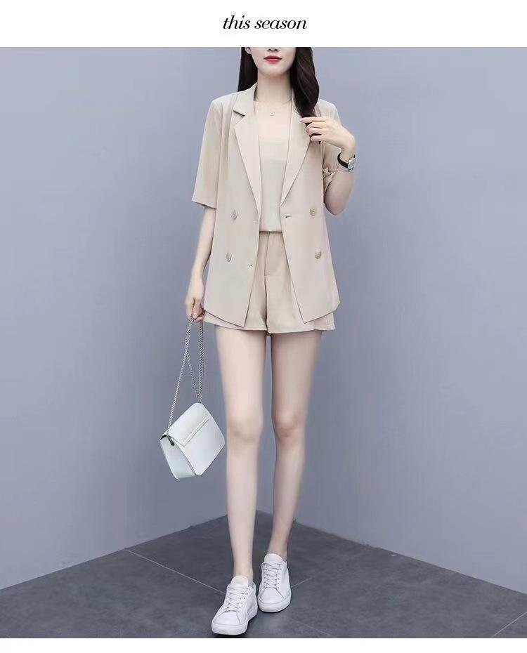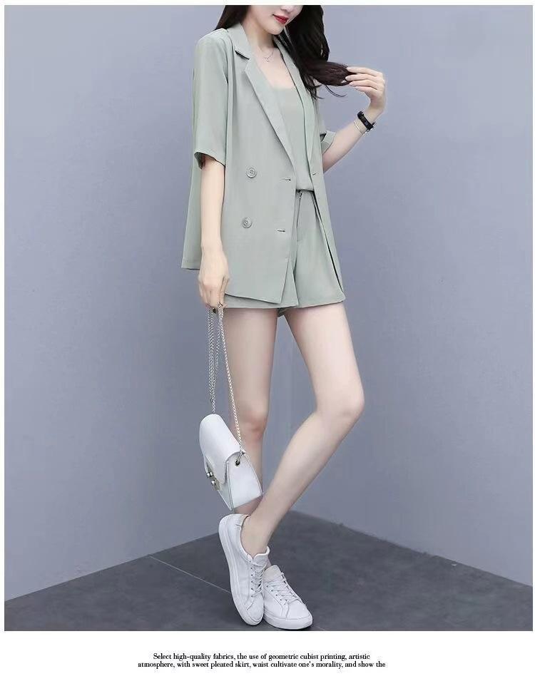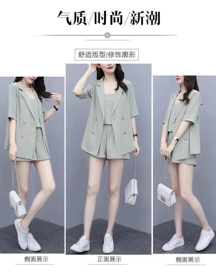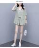 Talla grande Mujer 2024 Nuevo Traje de Moda de Verano para chica gordita Elegante Traje de Shorts Cubre Vientre Conjunto de Tres Piezas
