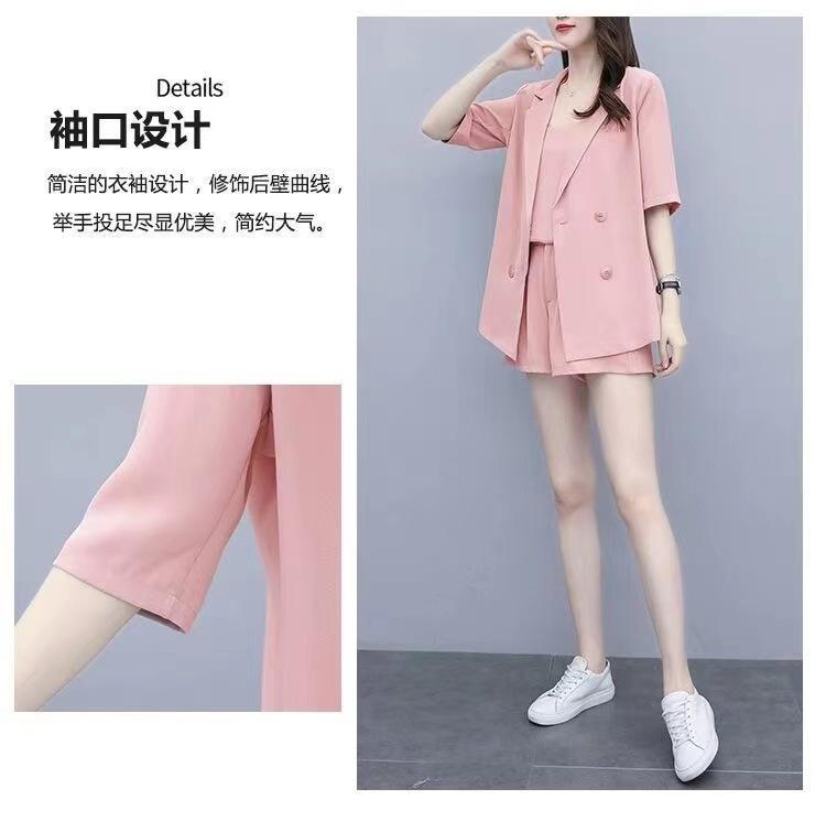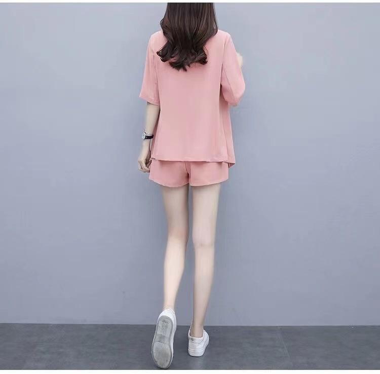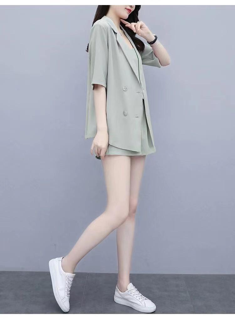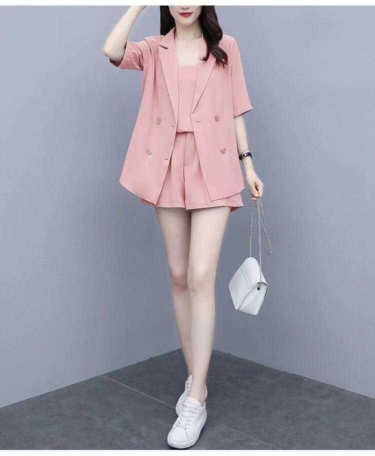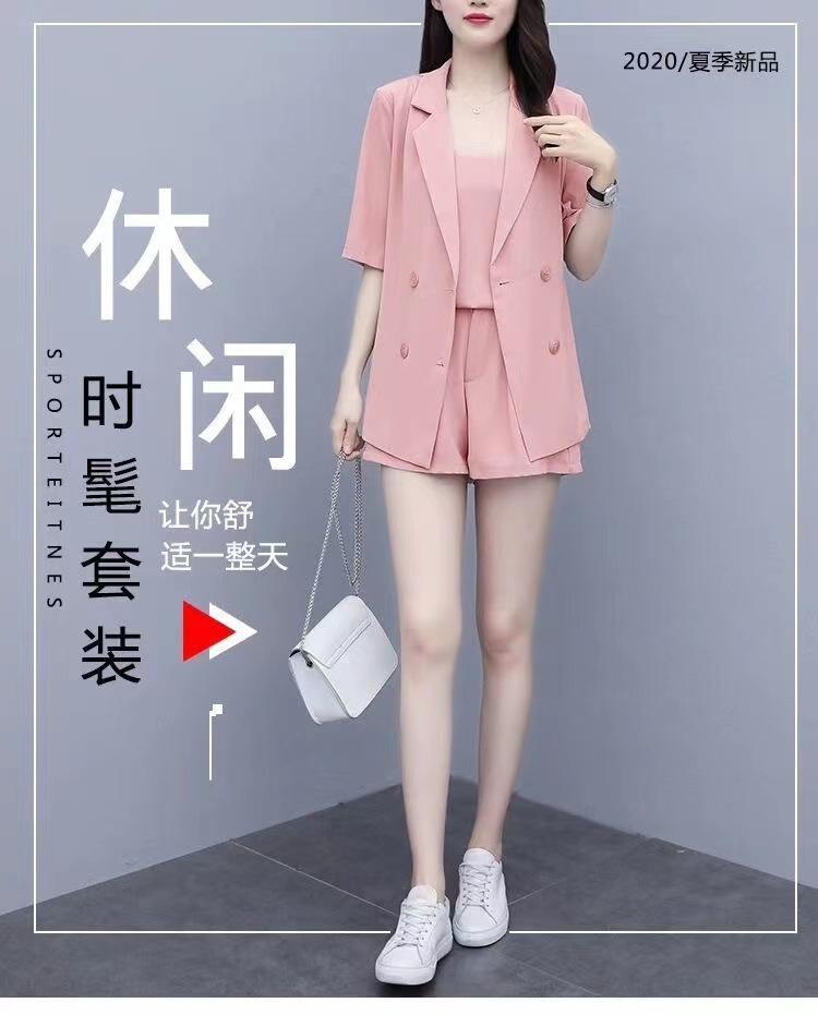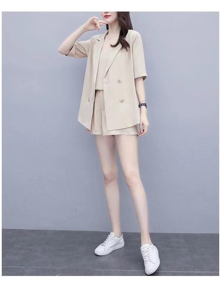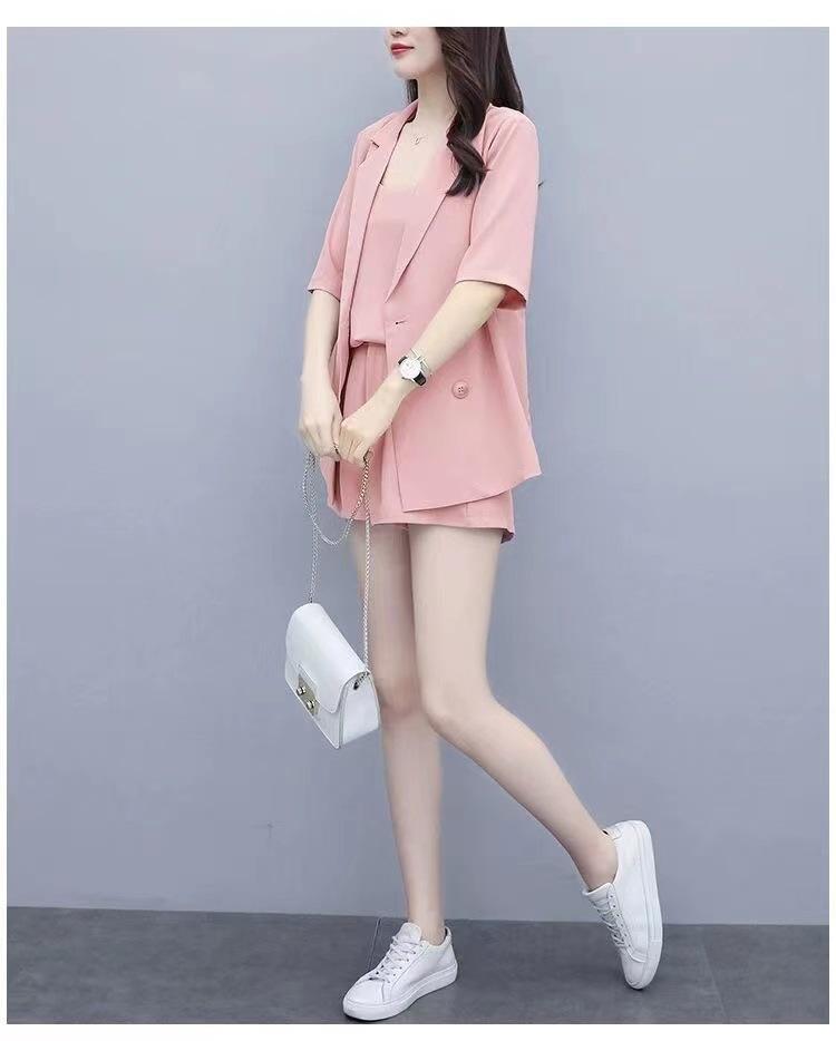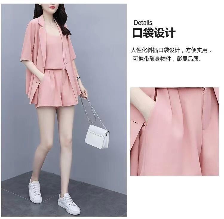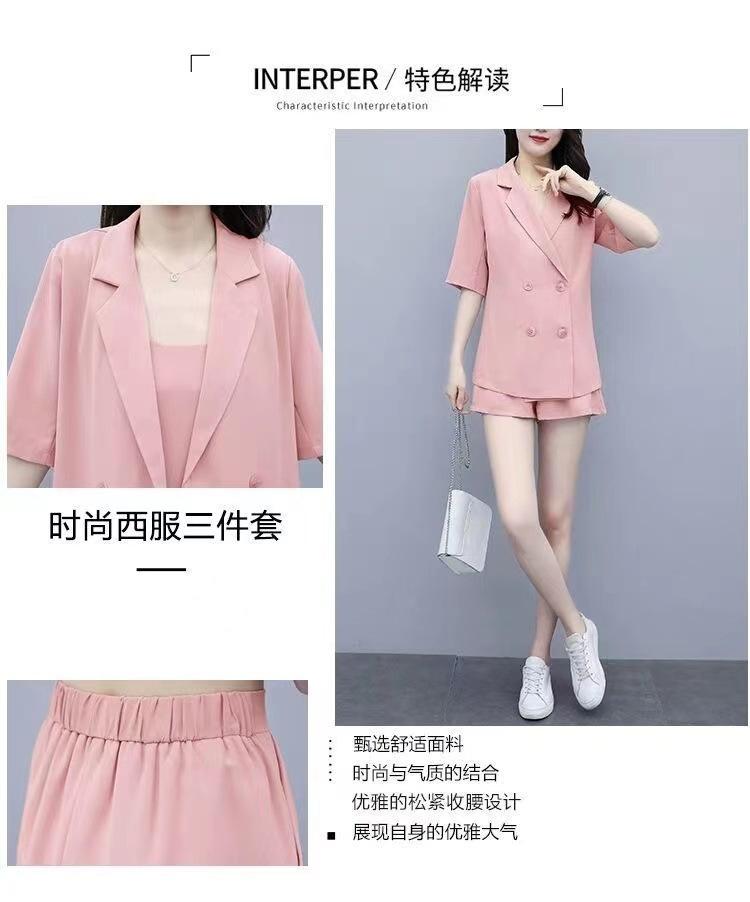 Talla grande Mujer 2024 Nuevo Traje de Moda de Verano para chica gordita Elegante Traje de Shorts Cubre Vientre Conjunto de Tres Piezas