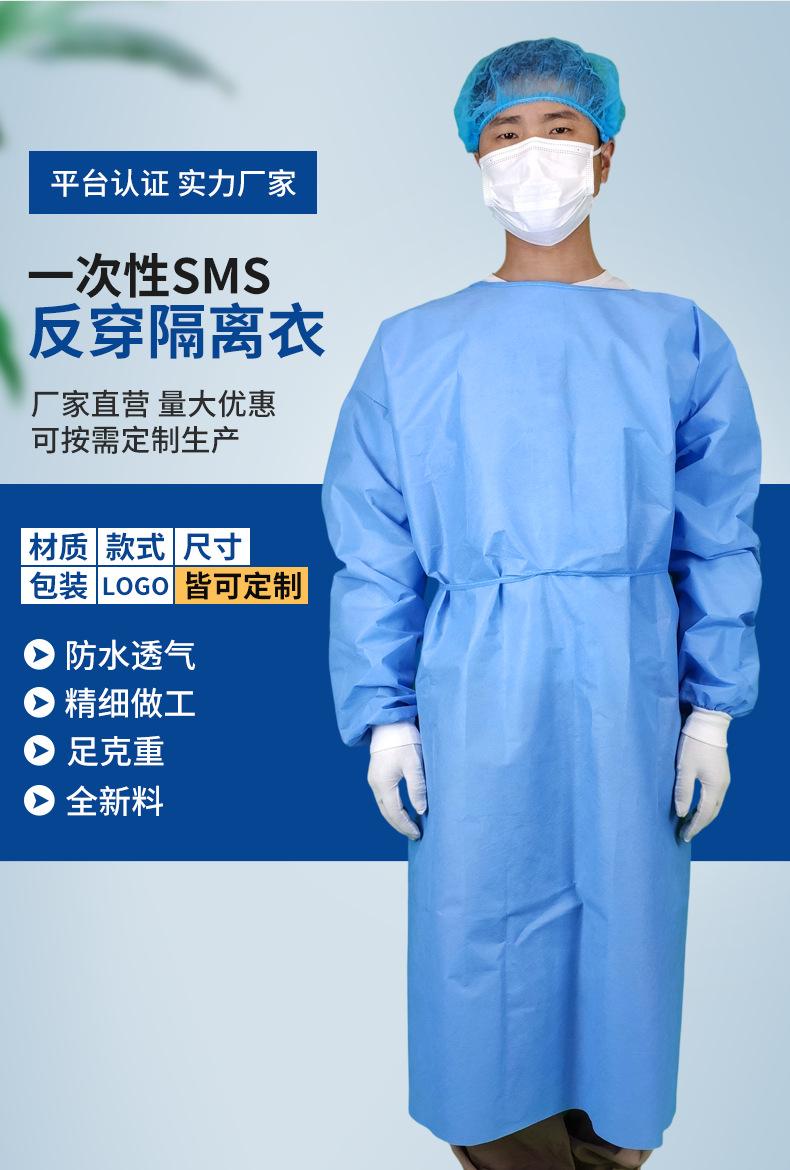 Bata de Aislamiento Desechable No Tejida SMS Impermeable a Prueba de Polvo Ropa Traje Protector Largo Engrosado Traje Protector Desechable