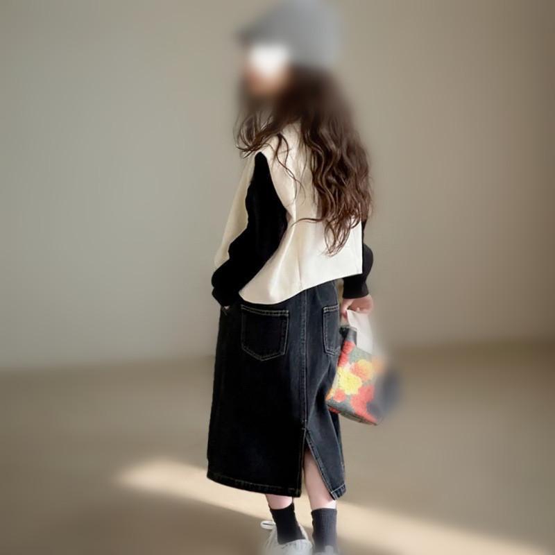 Ropa para Niños al Mayoreo Conjunto para Niñas Otoño 2025 Nuevo Estilo Top de Dos Piezas Falso para Niños Más Falda Midi de Mezclilla Conjunto de Dos Piezas
