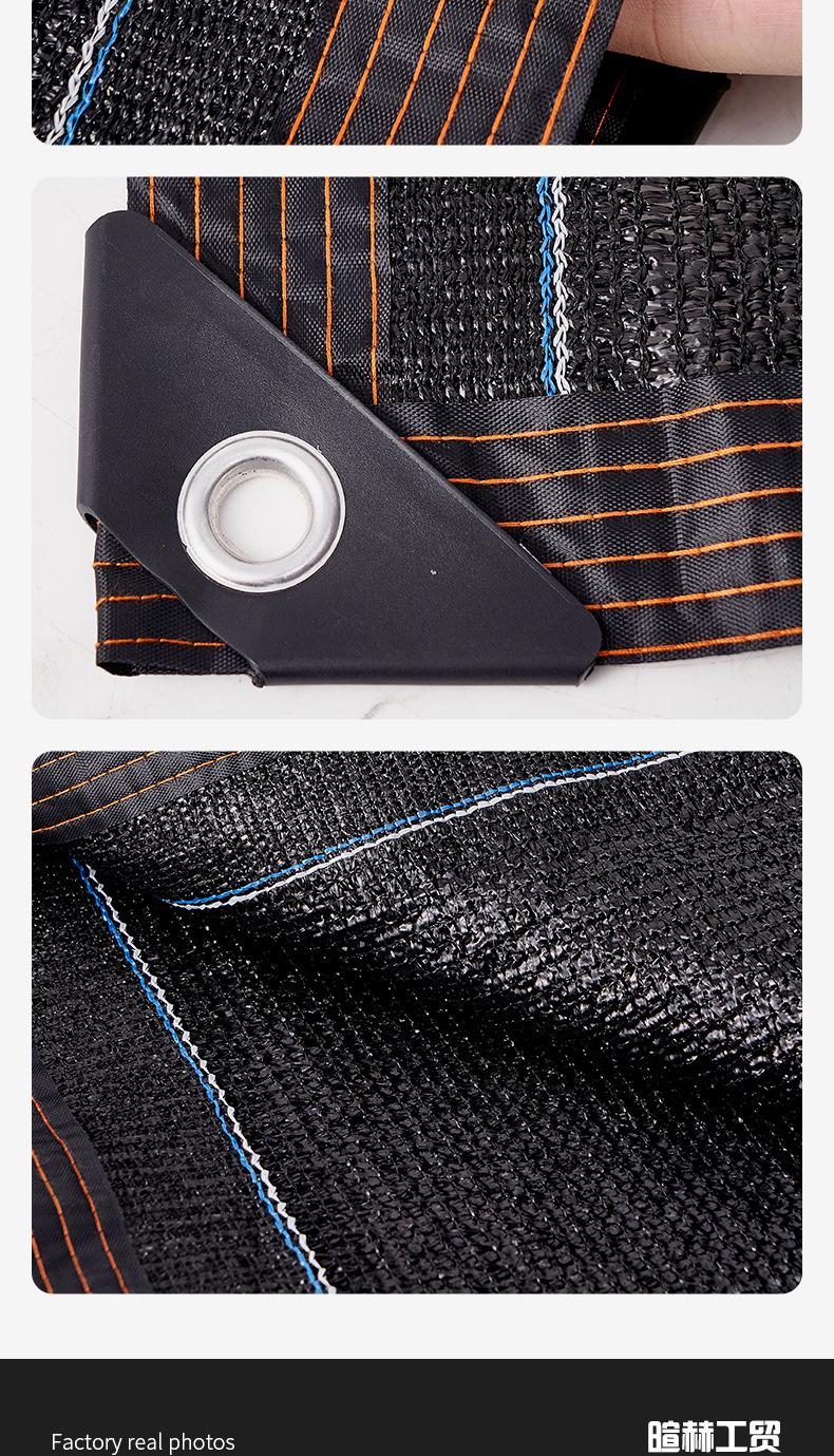 Malla de sombra negra encriptada y engrosada para uso en balcón, patio, cochera, con ribeteado y perforación, red de protección solar, red de sombreado