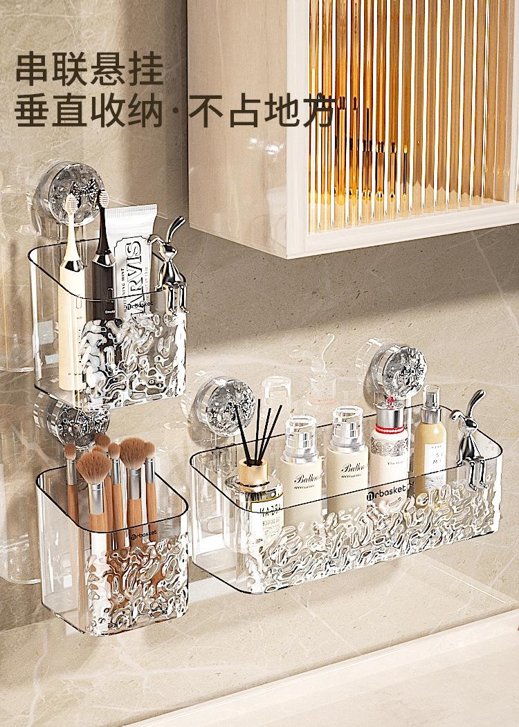 Estante de almacenamiento con ventosa para inodoro, estante para baño, sin perforaciones, para inodoro, lavabo, cesta colgante para colgar en la pared, estante de almacenamiento de pared