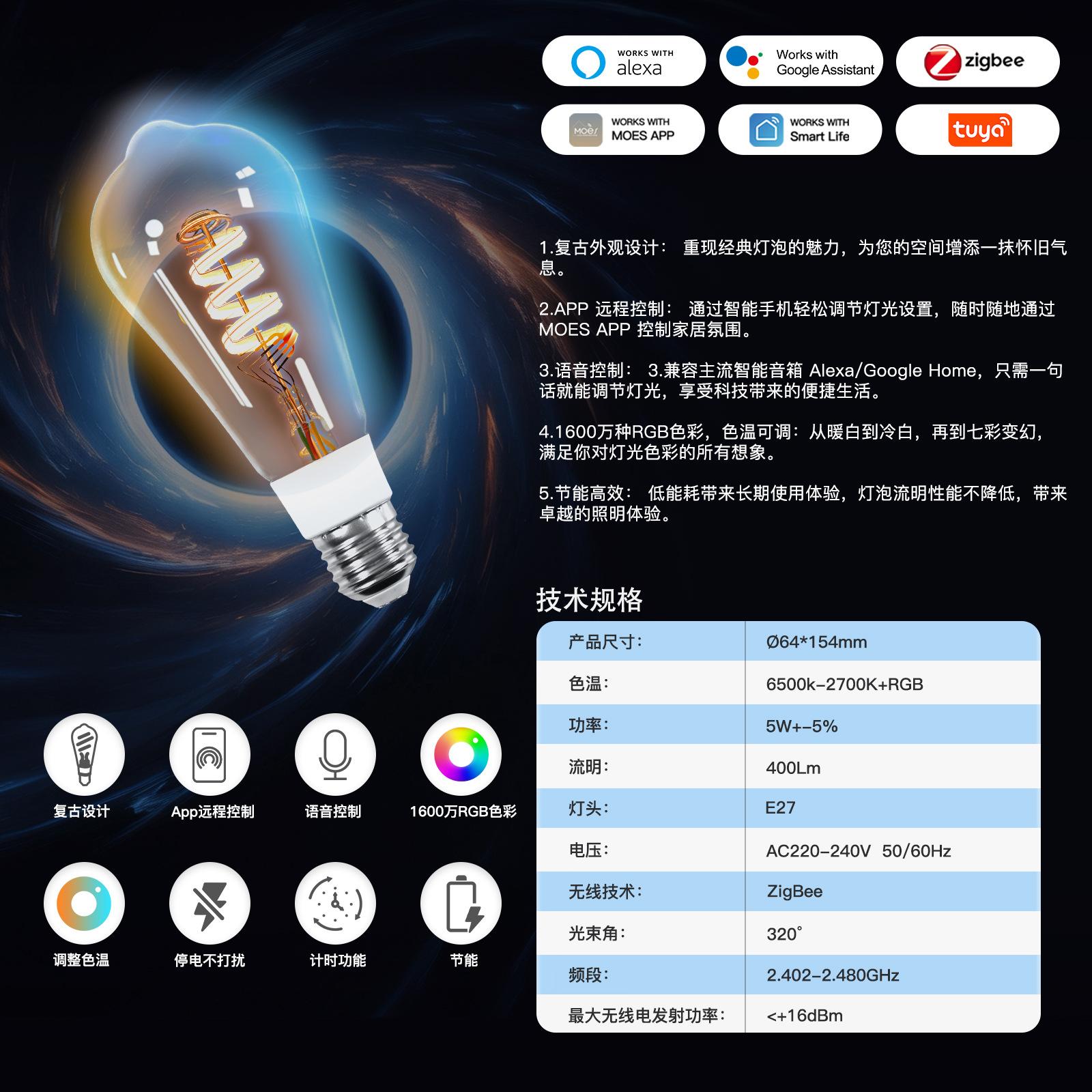 (Does not support listing on AliExpress Fully Managed) ZIGBEE 5W Smart Tungsten Filament Lamp